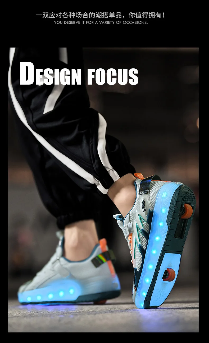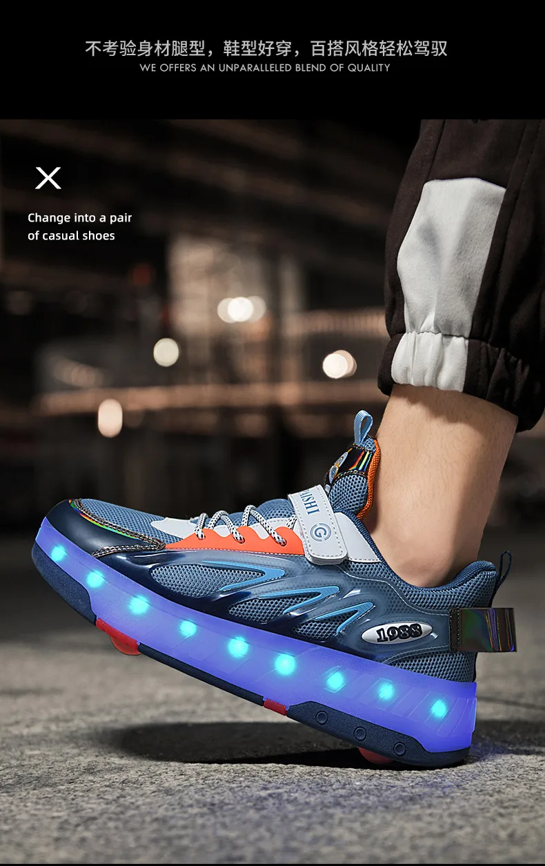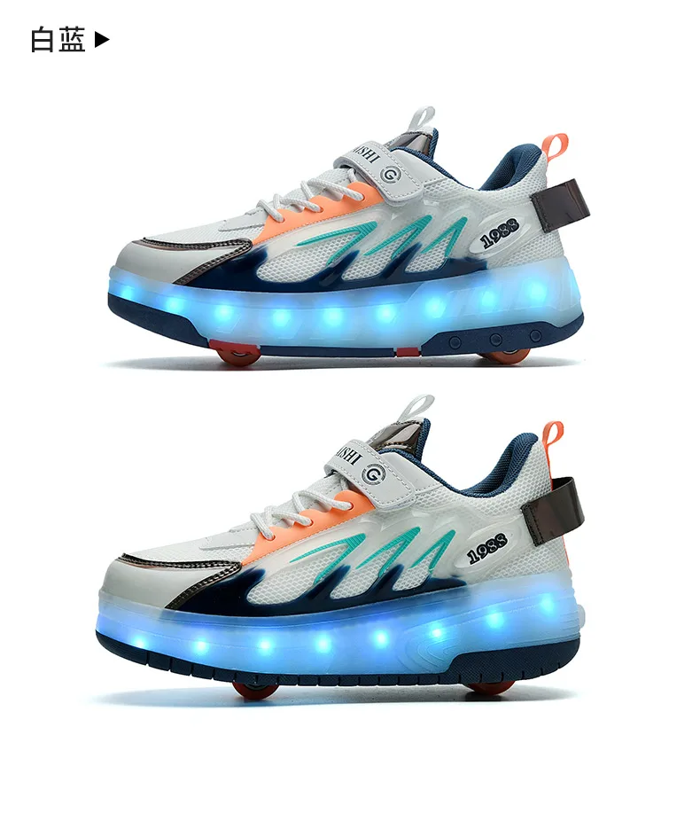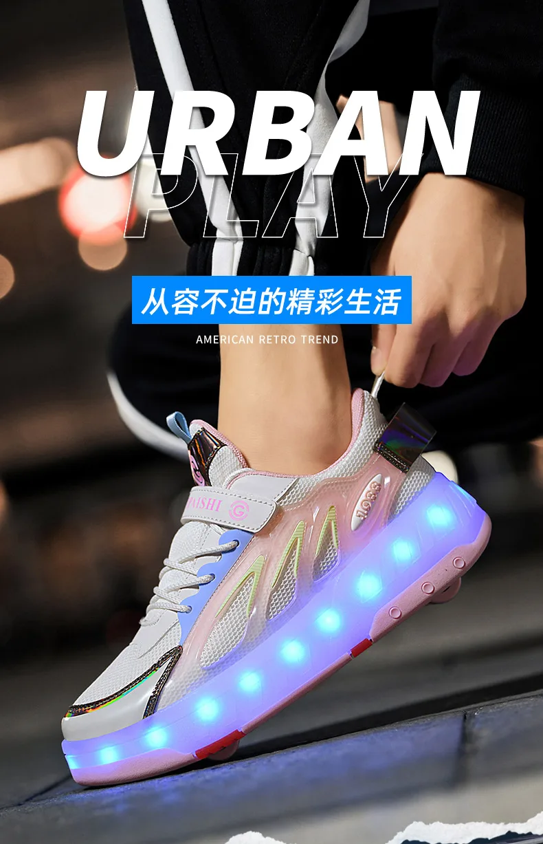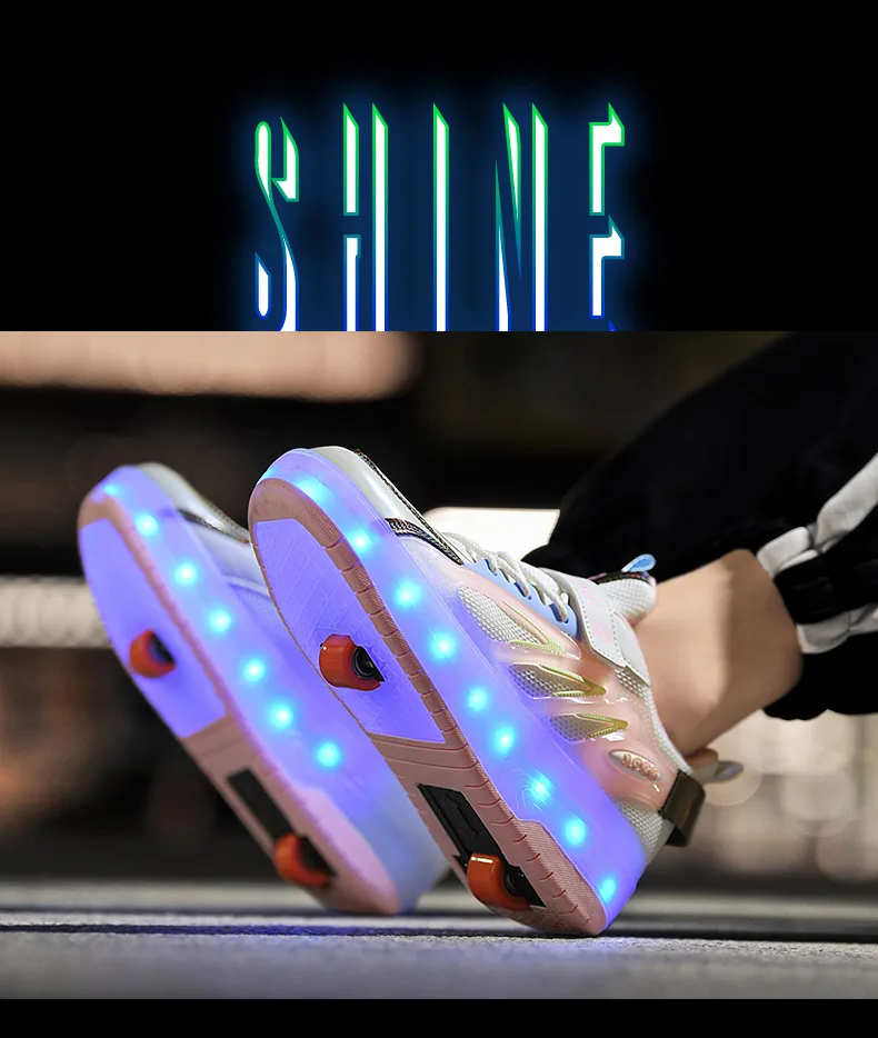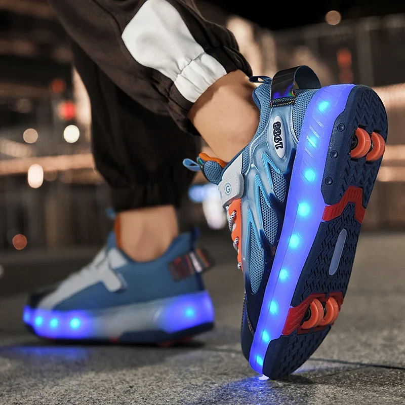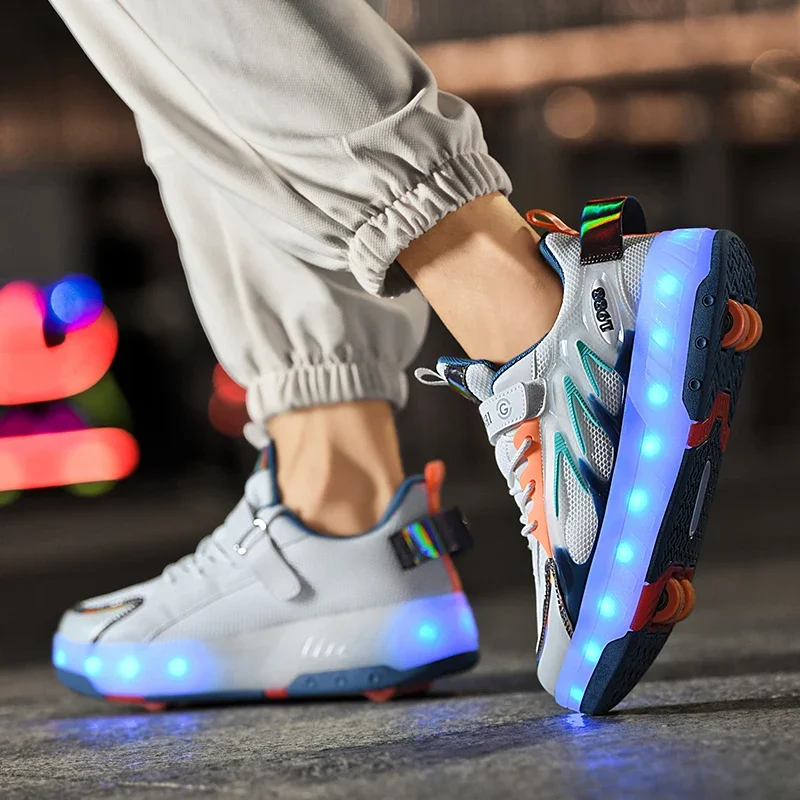 LED Lights Kids Roller Skate Shoes Parkour Running With 4 Wheels Boys Girls Detachable Adults Casual Deformation Skating Shoes