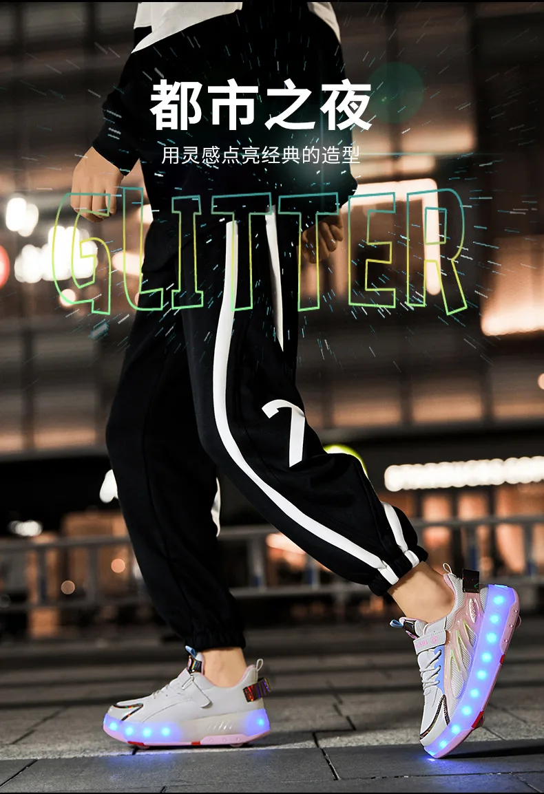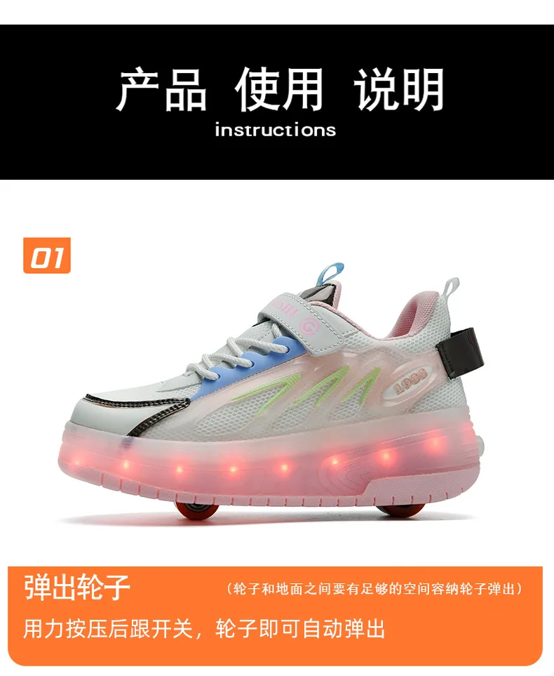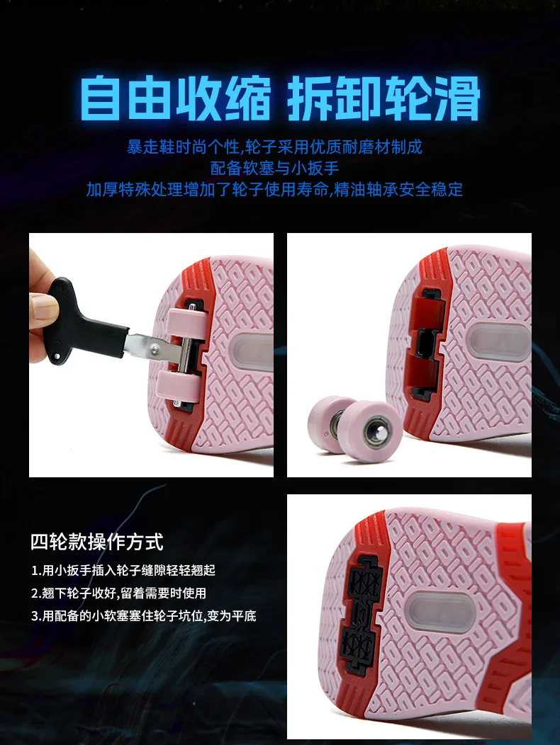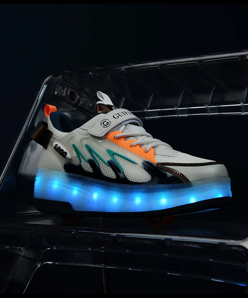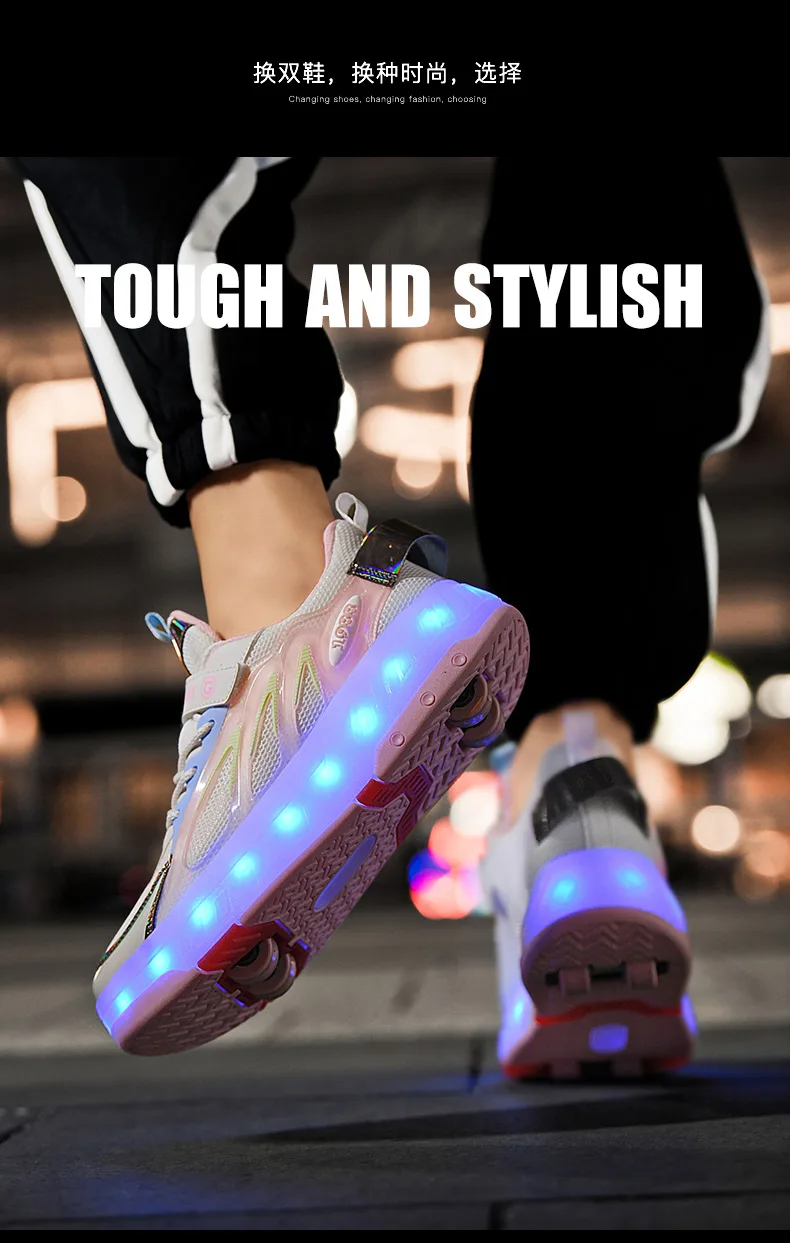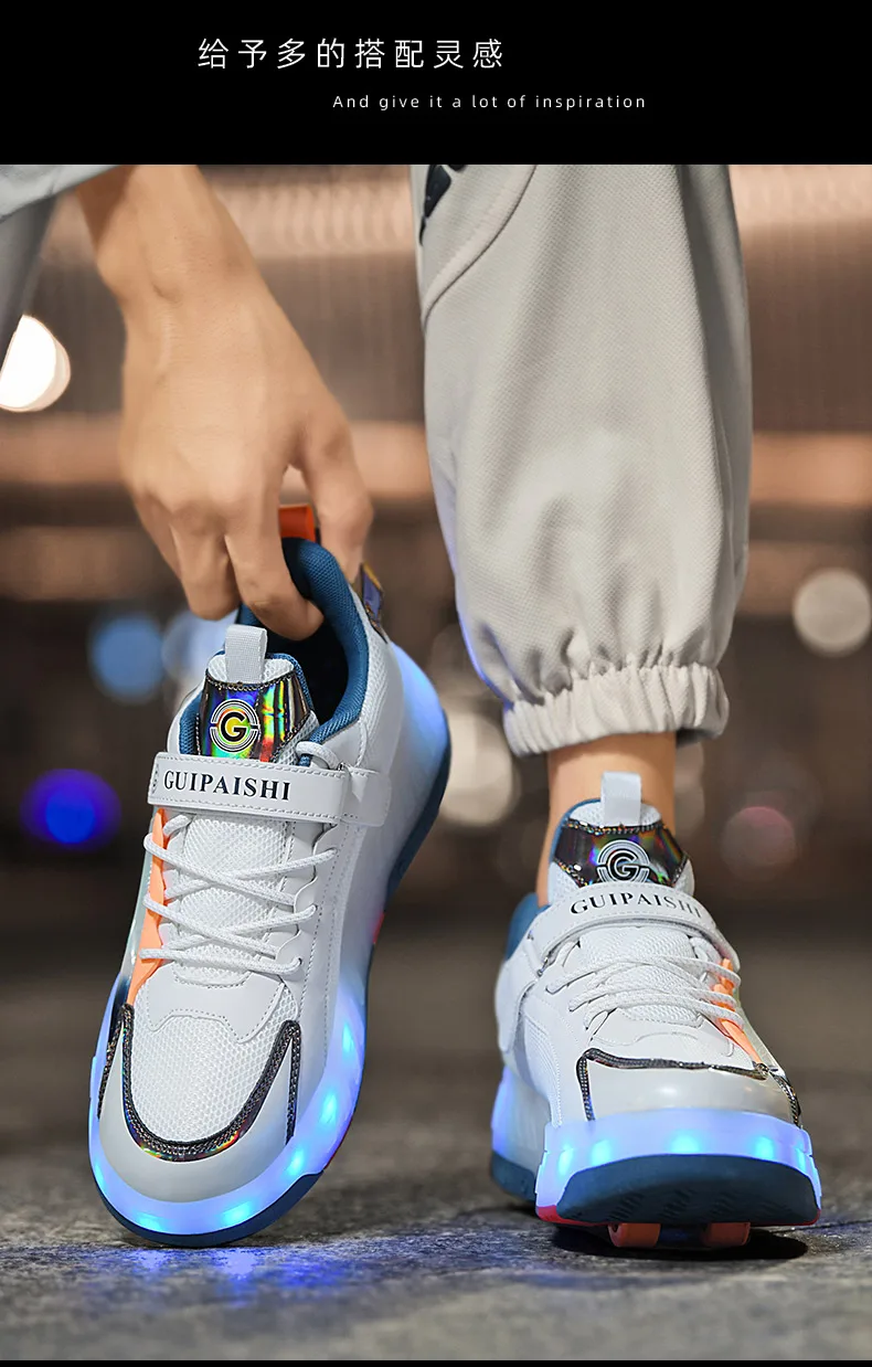 LED Lights Kids Roller Skate Shoes Parkour Running With 4 Wheels Boys Girls Detachable Adults Casual Deformation Skating Shoes