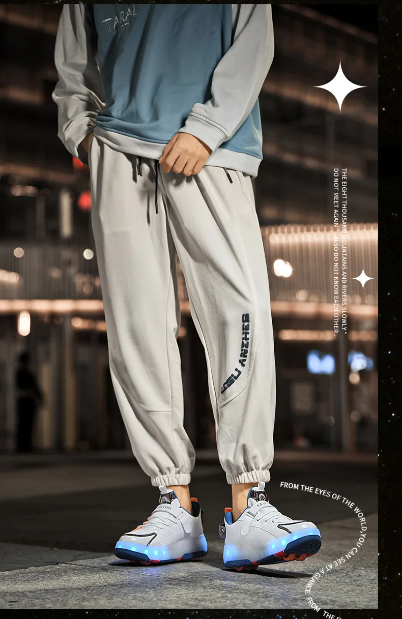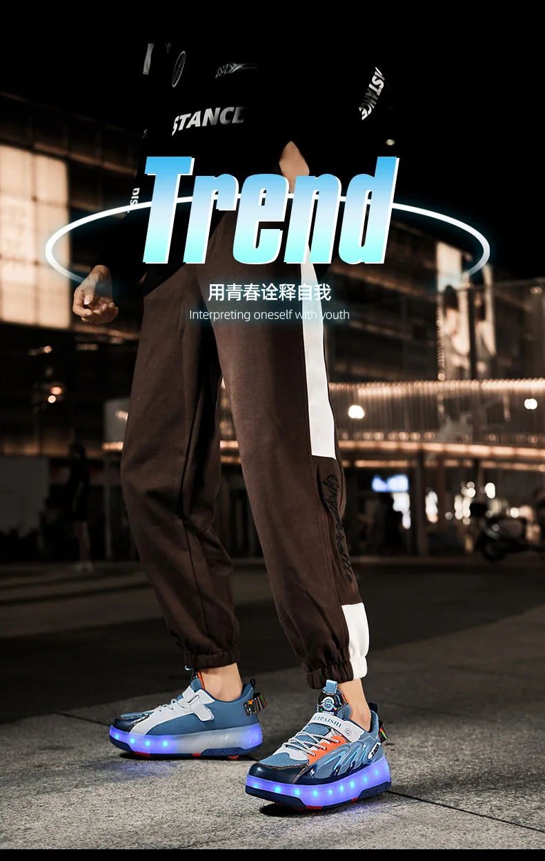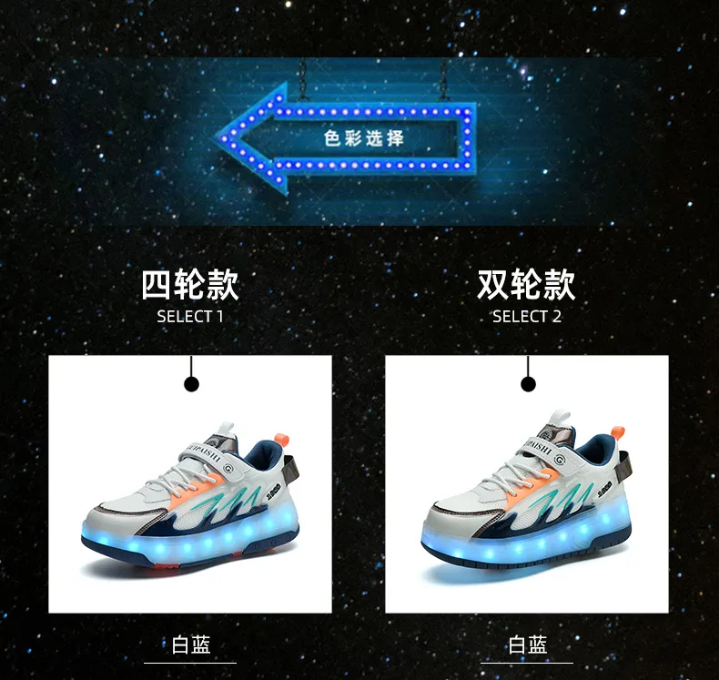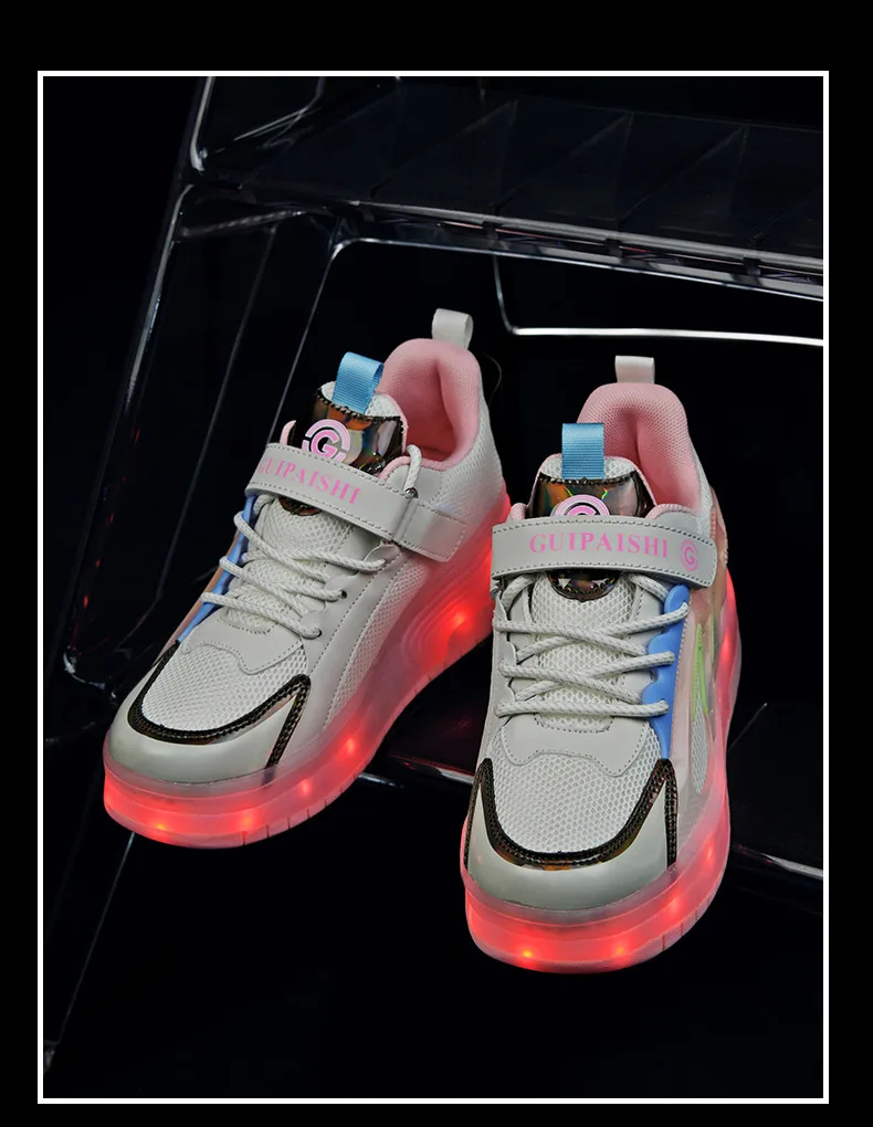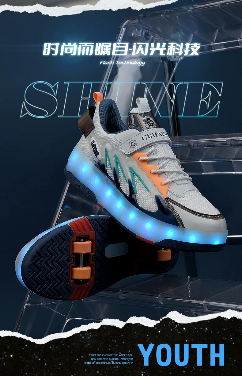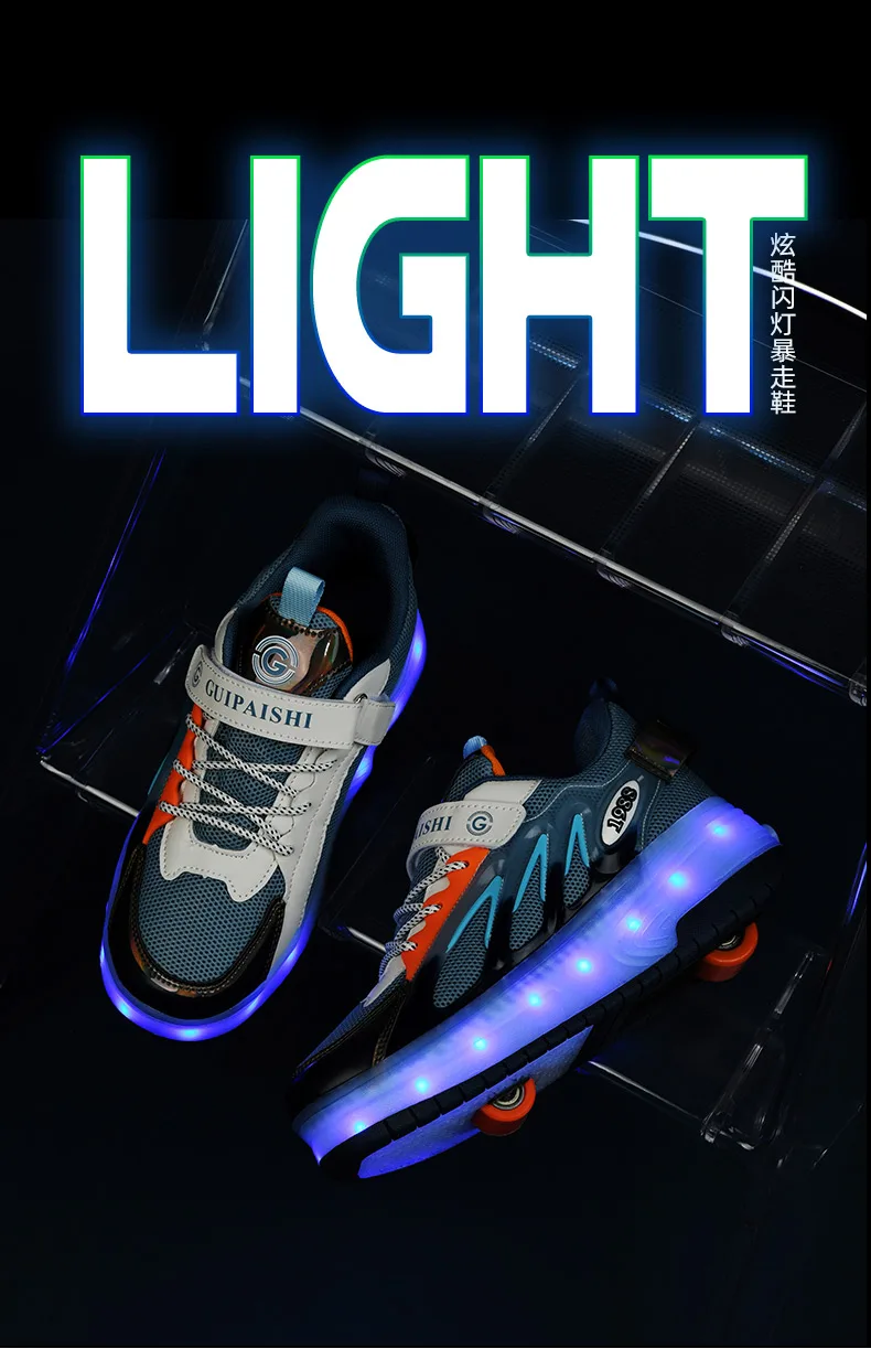 LED Lights Kids Roller Skate Shoes Parkour Running With 4 Wheels Boys Girls Detachable Adults Casual Deformation Skating Shoes