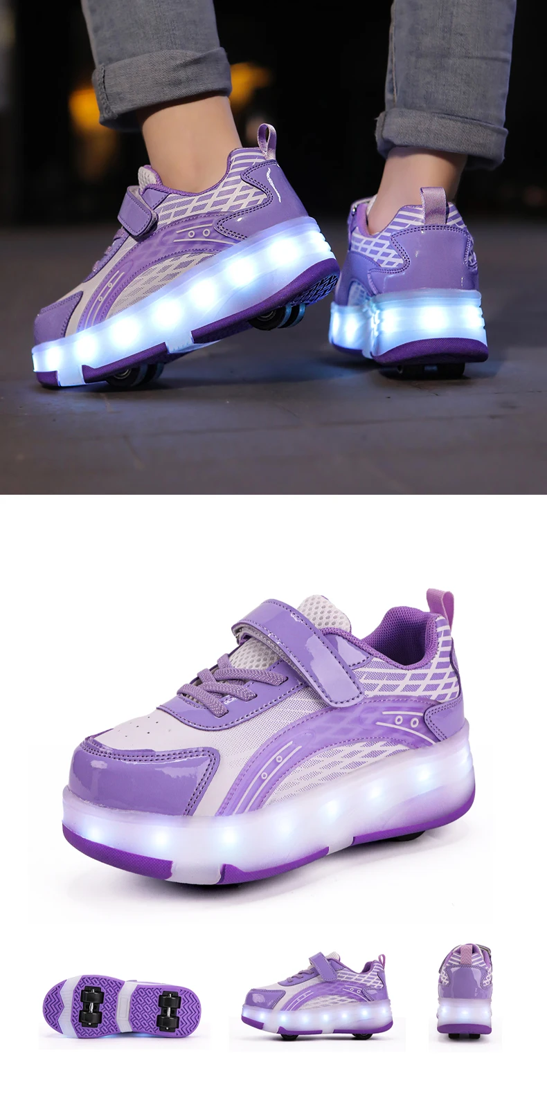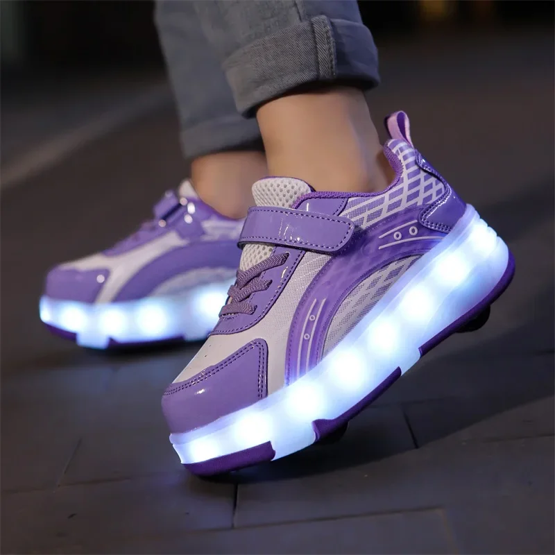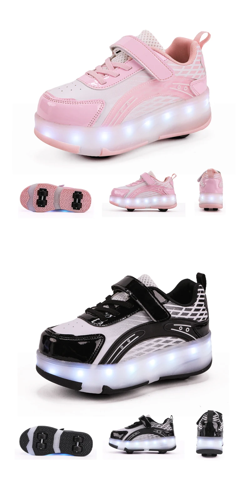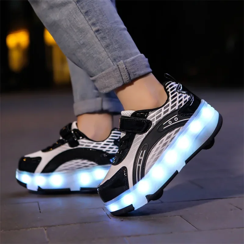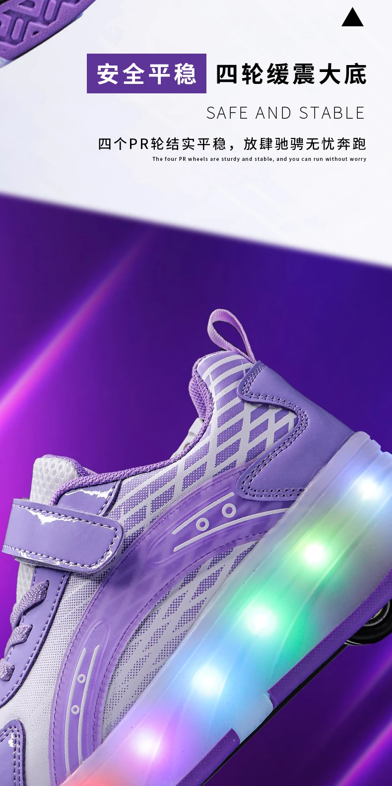 LED Lights Kids Roller Skate Shoes Parkour Sport Boys Girls Detachable Running With 4 Wheels Deformation Casual Skating Shoes