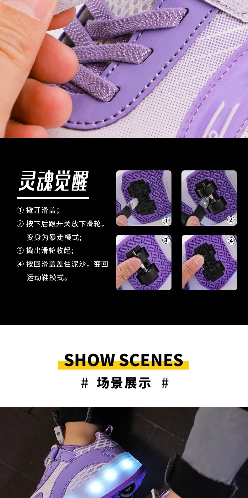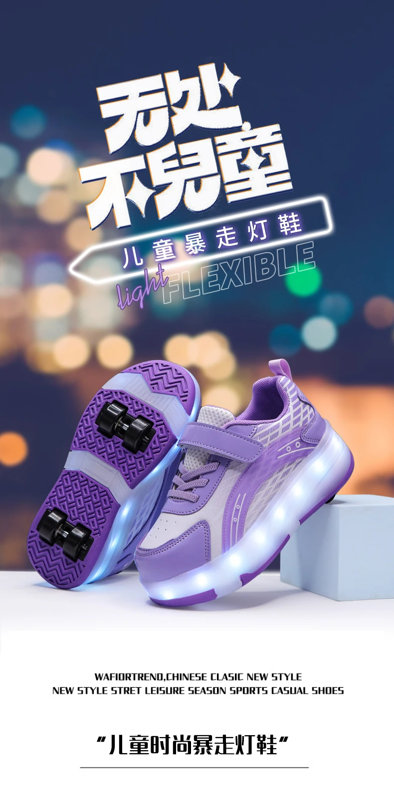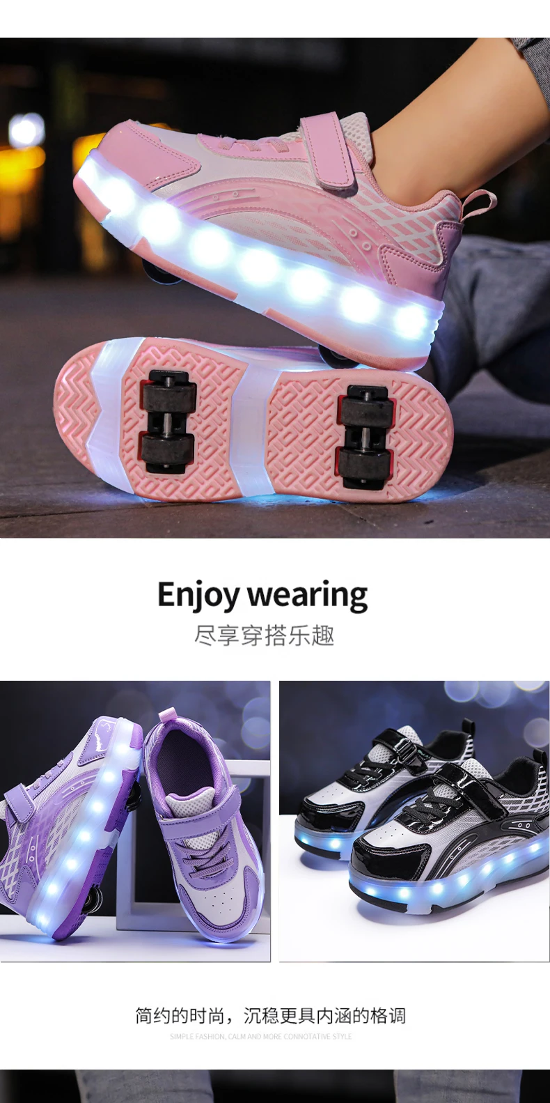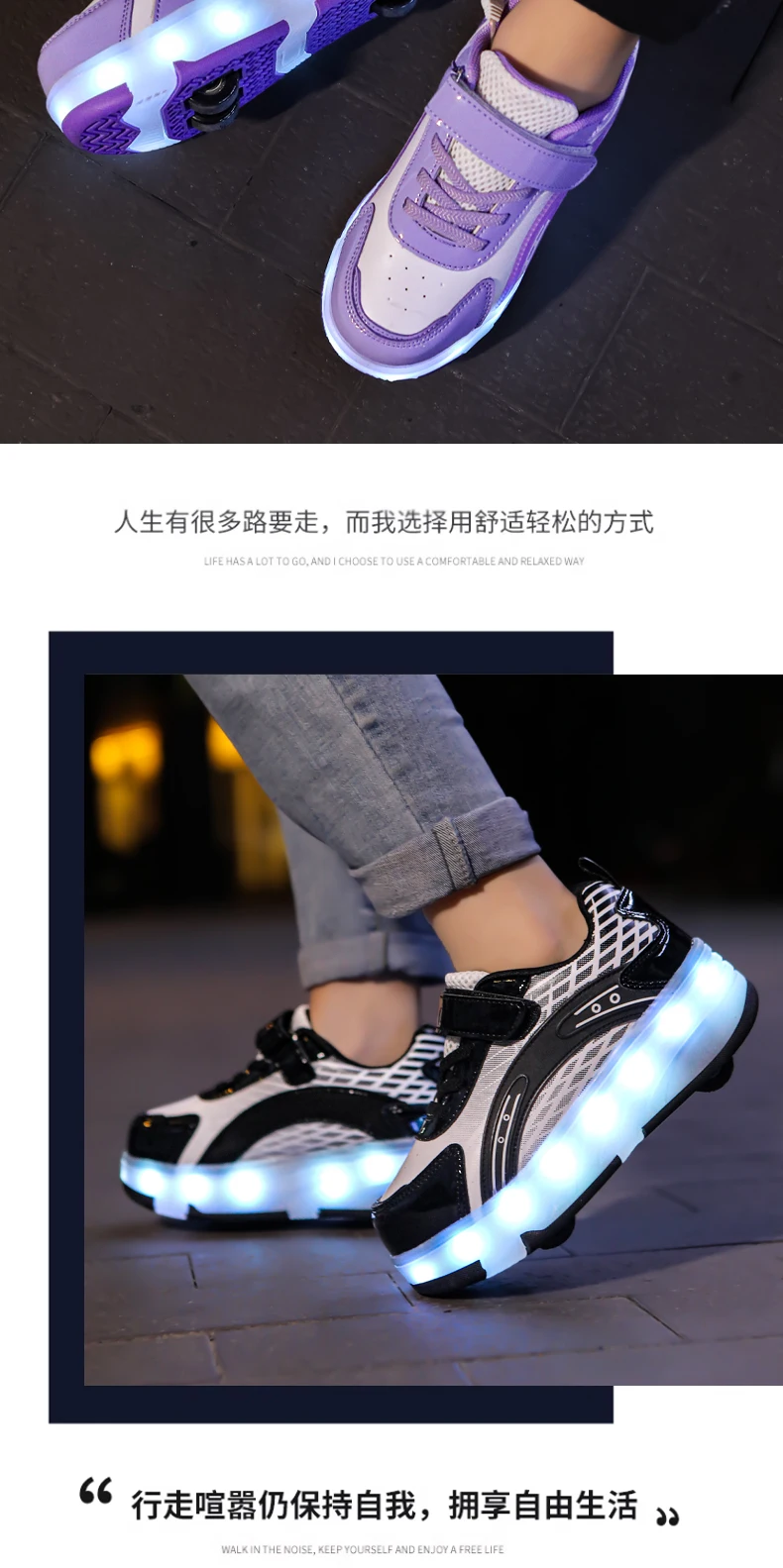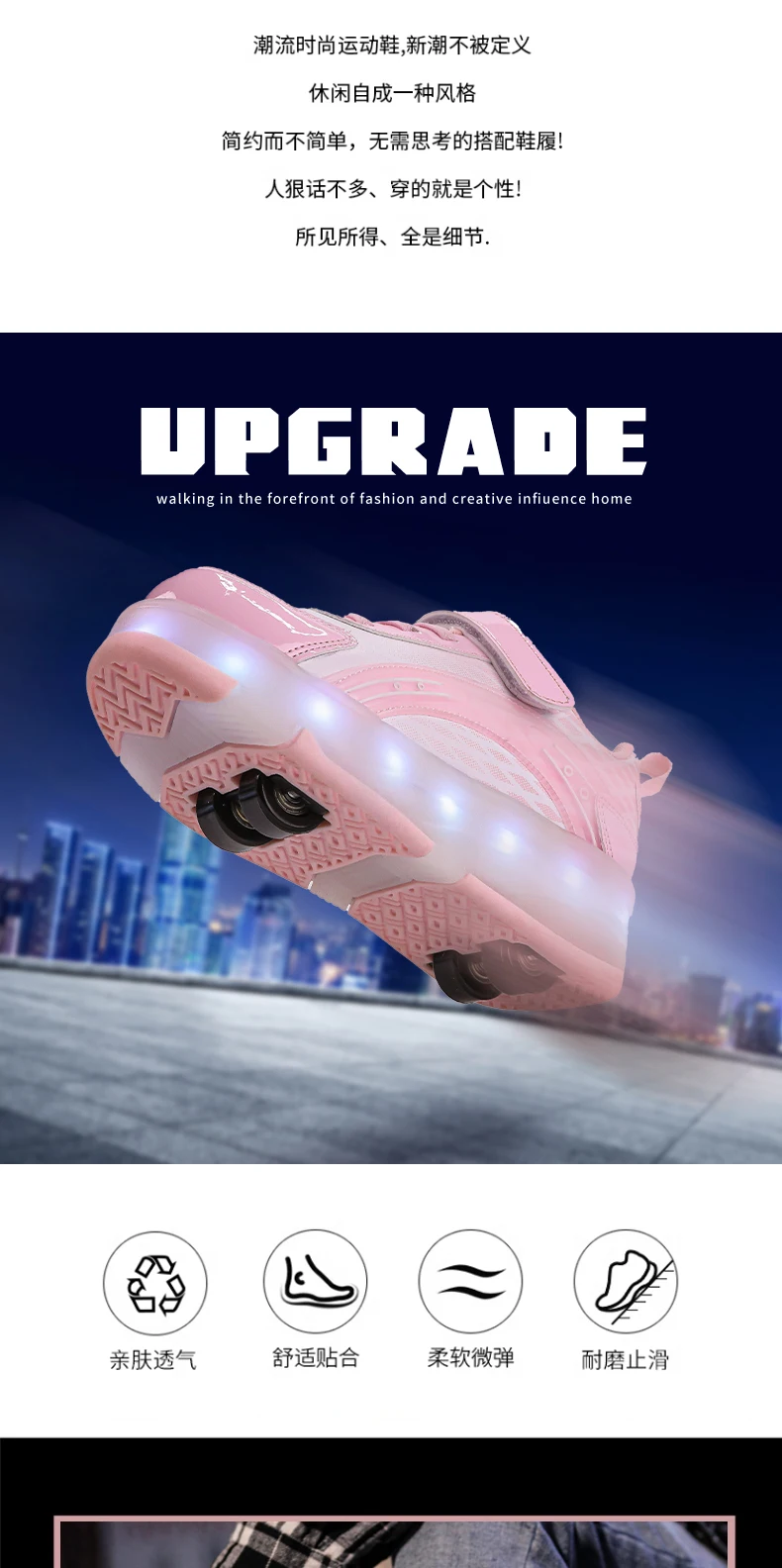 LED Lights Kids Roller Skate Shoes Parkour Sport Boys Girls Detachable Running With 4 Wheels Deformation Casual Skating Shoes