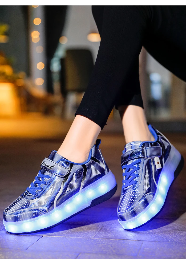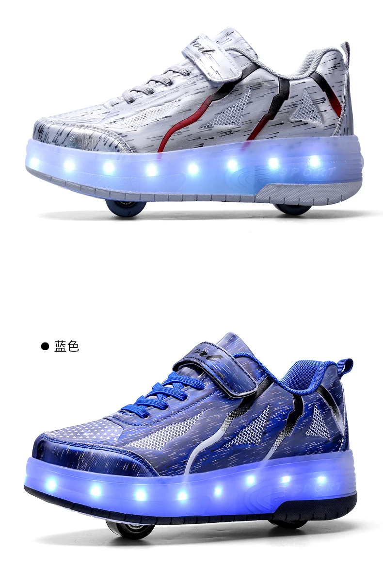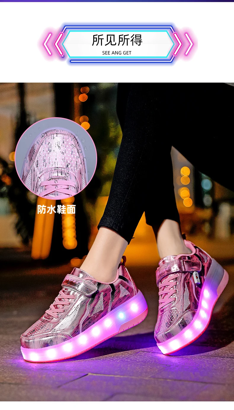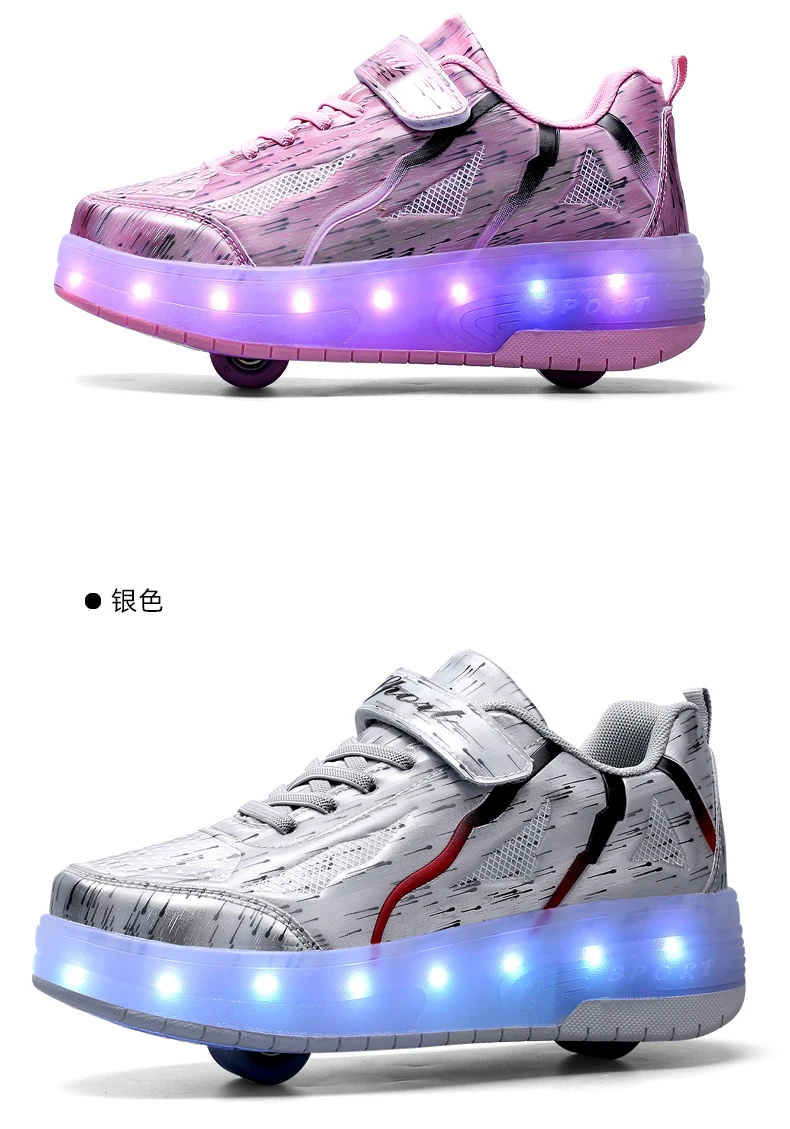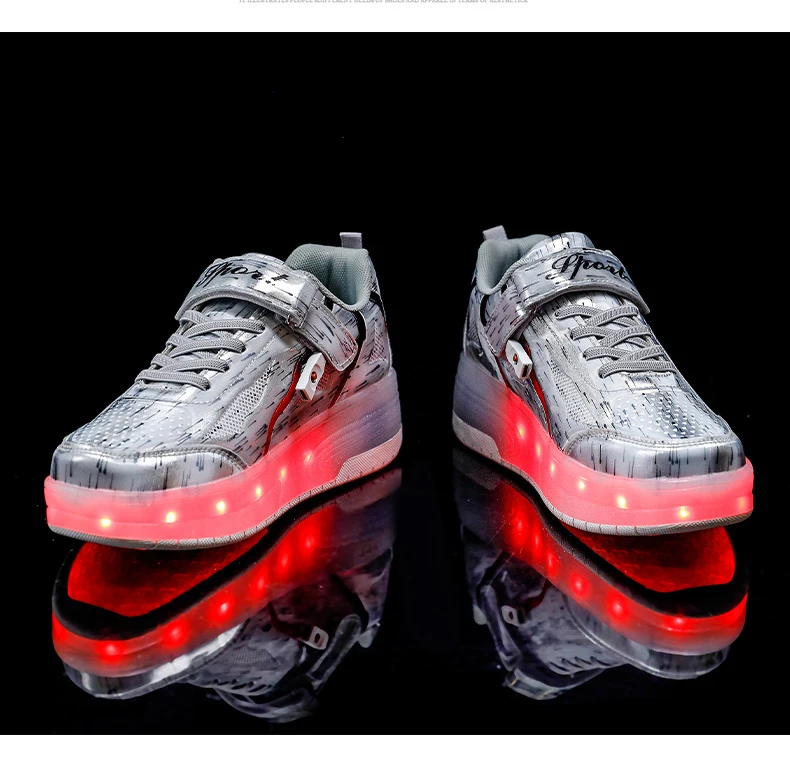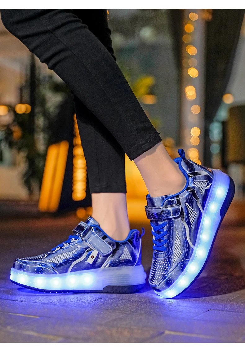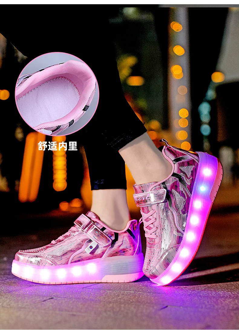 LED Lights Kids Roller Skate Shoes Rechargeable Deformation Skating Shoes 2 Wheels Boys Girls Casual Outdoor Parkour Sneakers