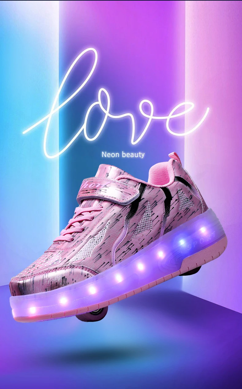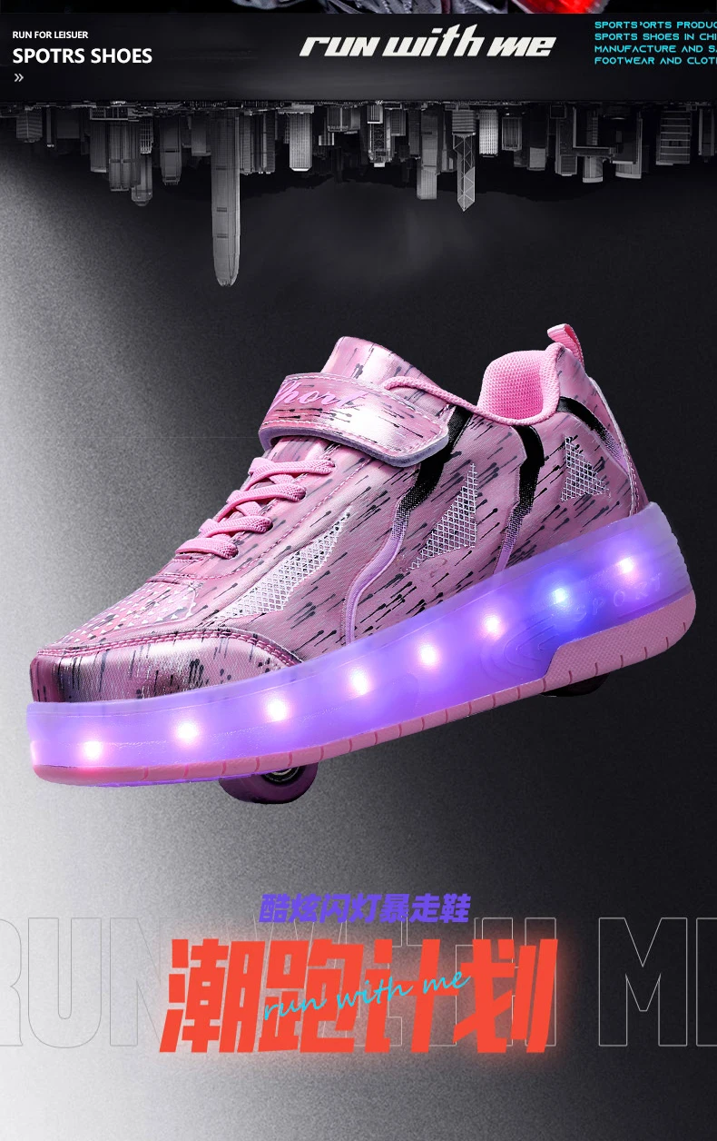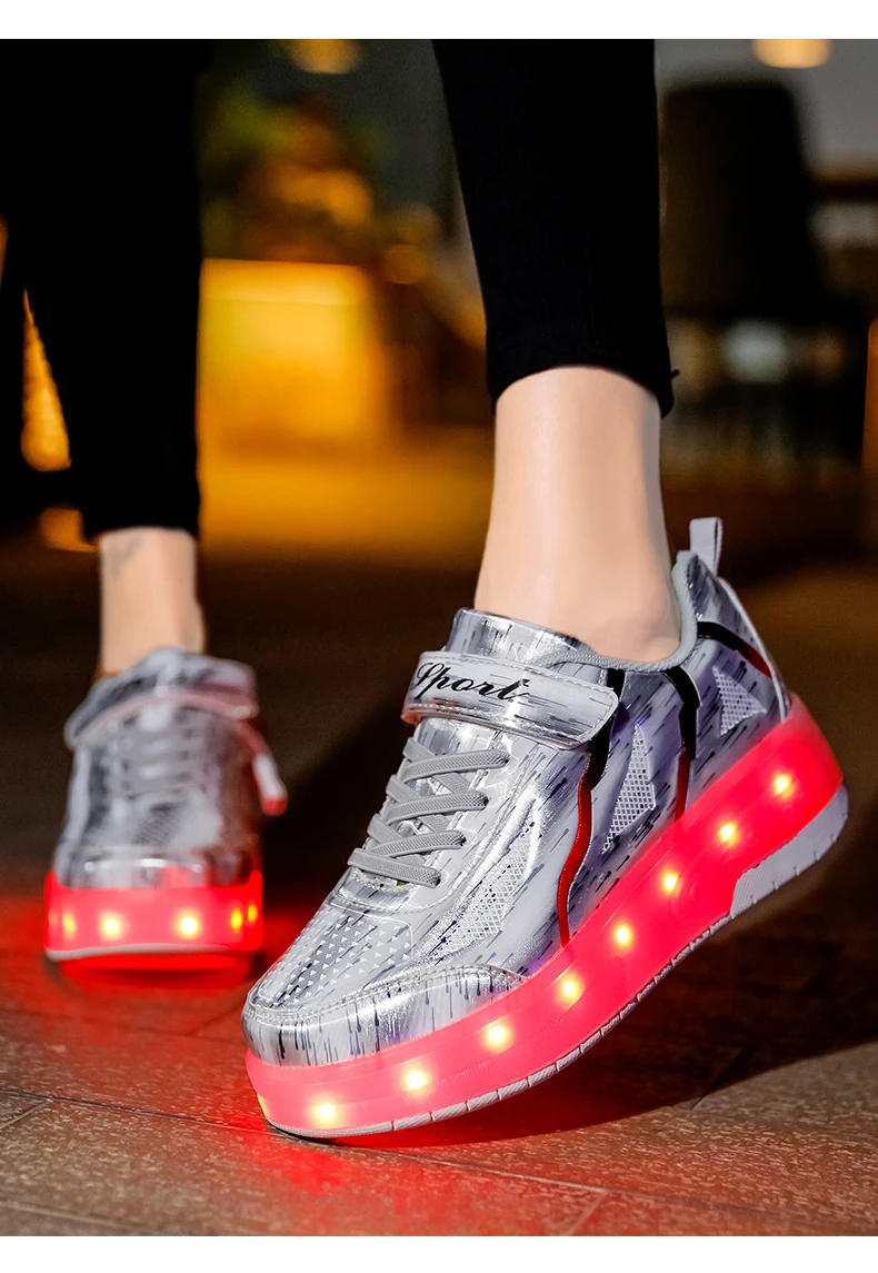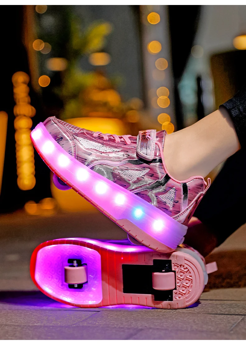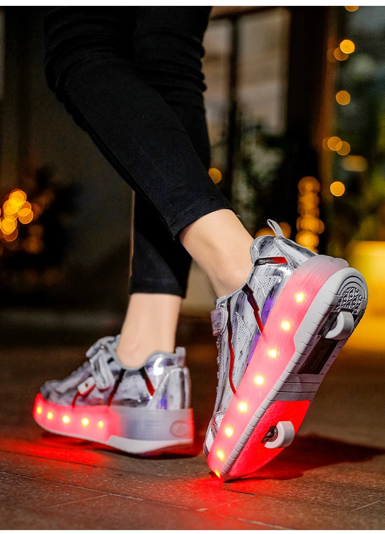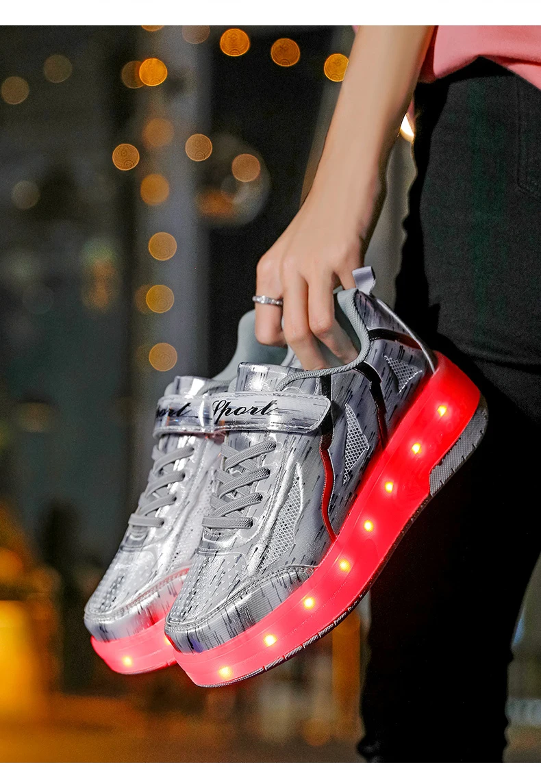 LED Lights Kids Roller Skate Shoes Rechargeable Deformation Skating Shoes 2 Wheels Boys Girls Casual Outdoor Parkour Sneakers
