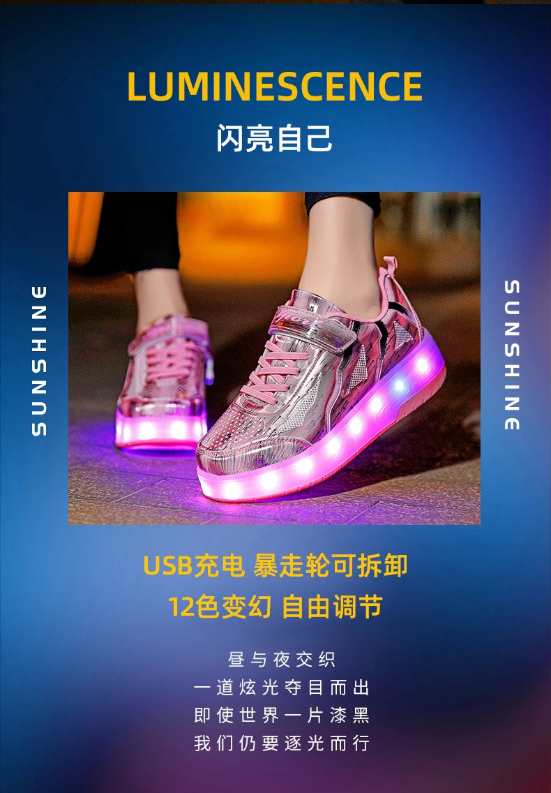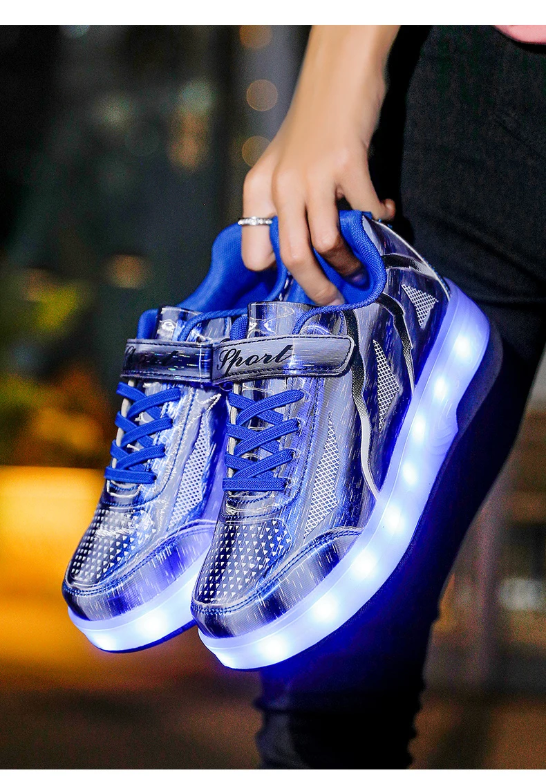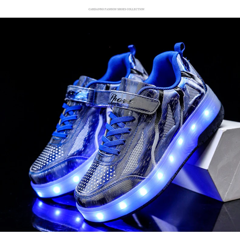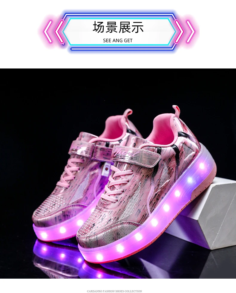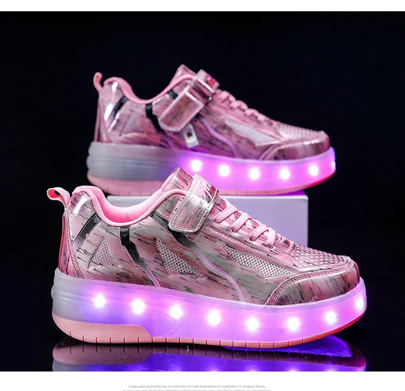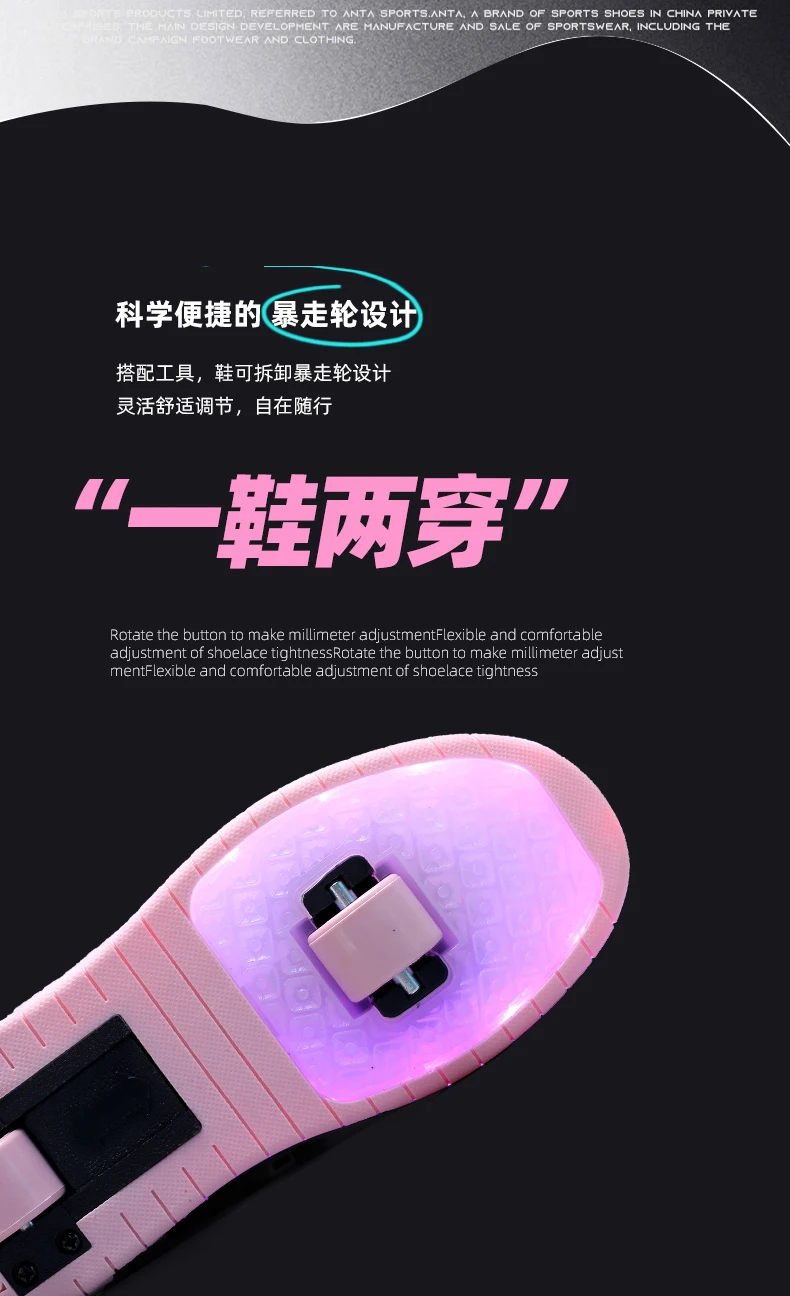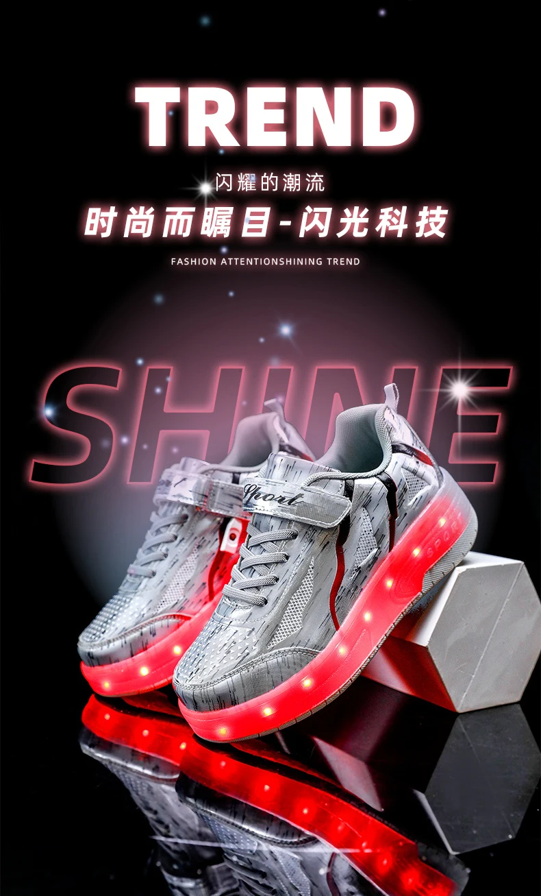 LED Lights Kids Roller Skate Shoes Rechargeable Deformation Skating Shoes 2 Wheels Boys Girls Casual Outdoor Parkour Sneakers