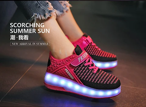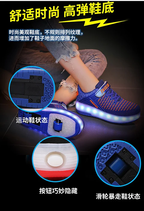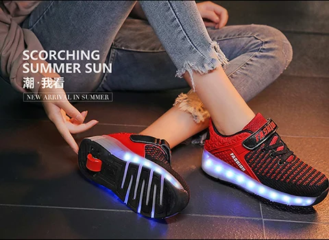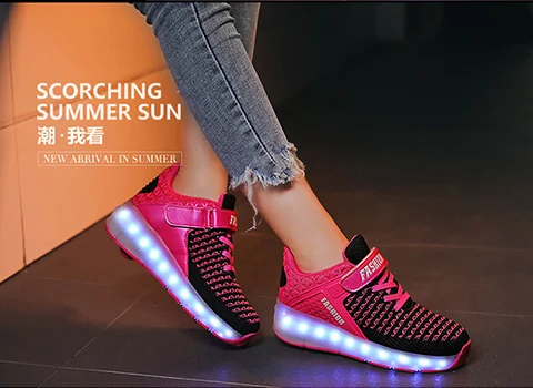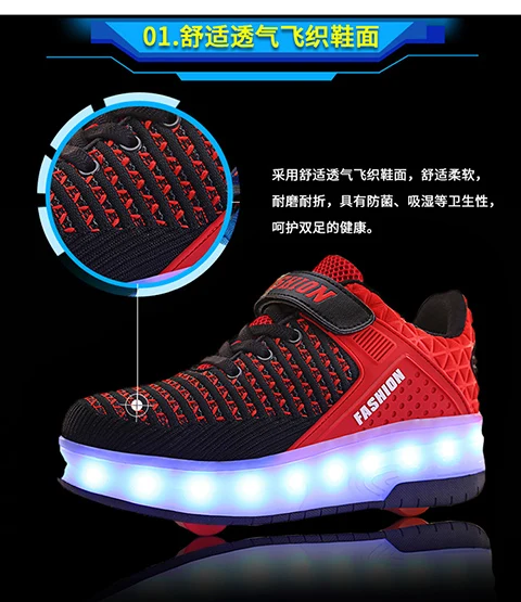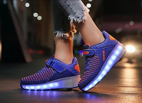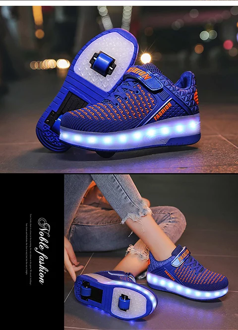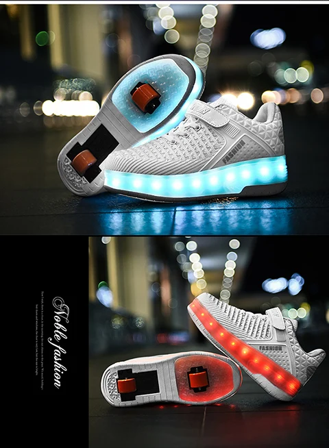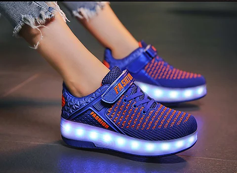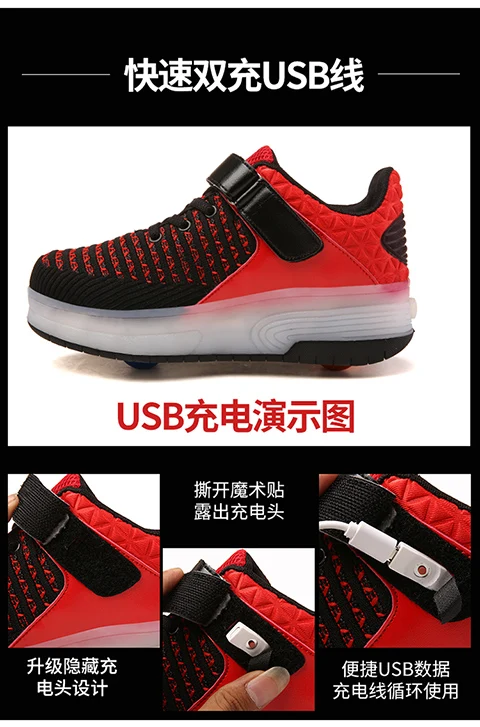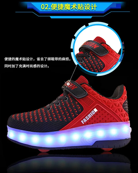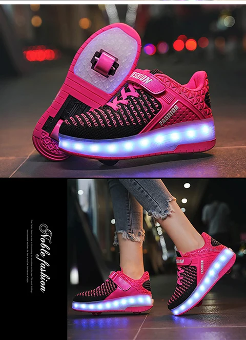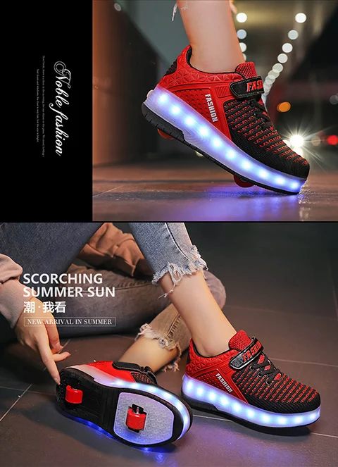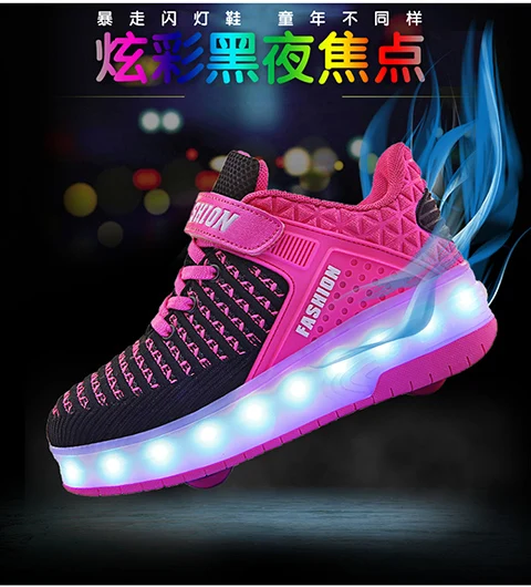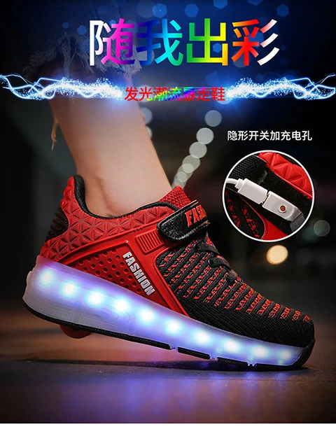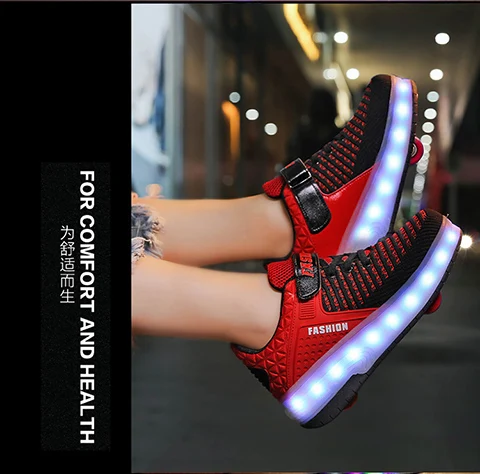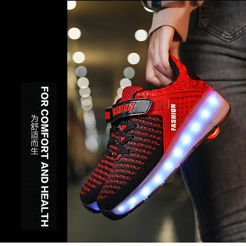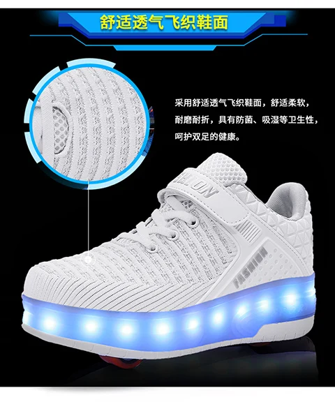 LED Lights Kids Roller Skate Shoes Running Sport Deformation With 2 Wheels Boys Girls Casual Detachable Adult Skating Shoes Gift