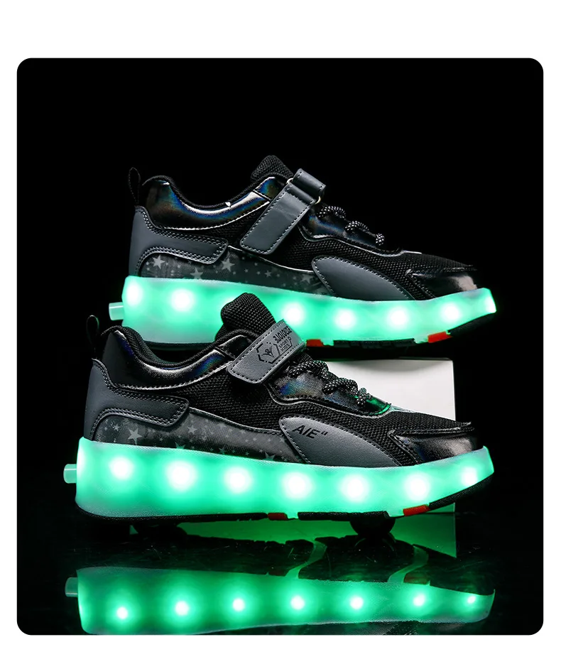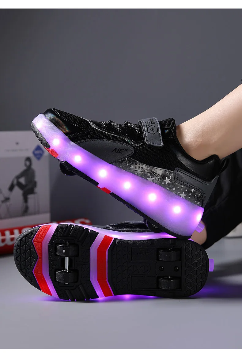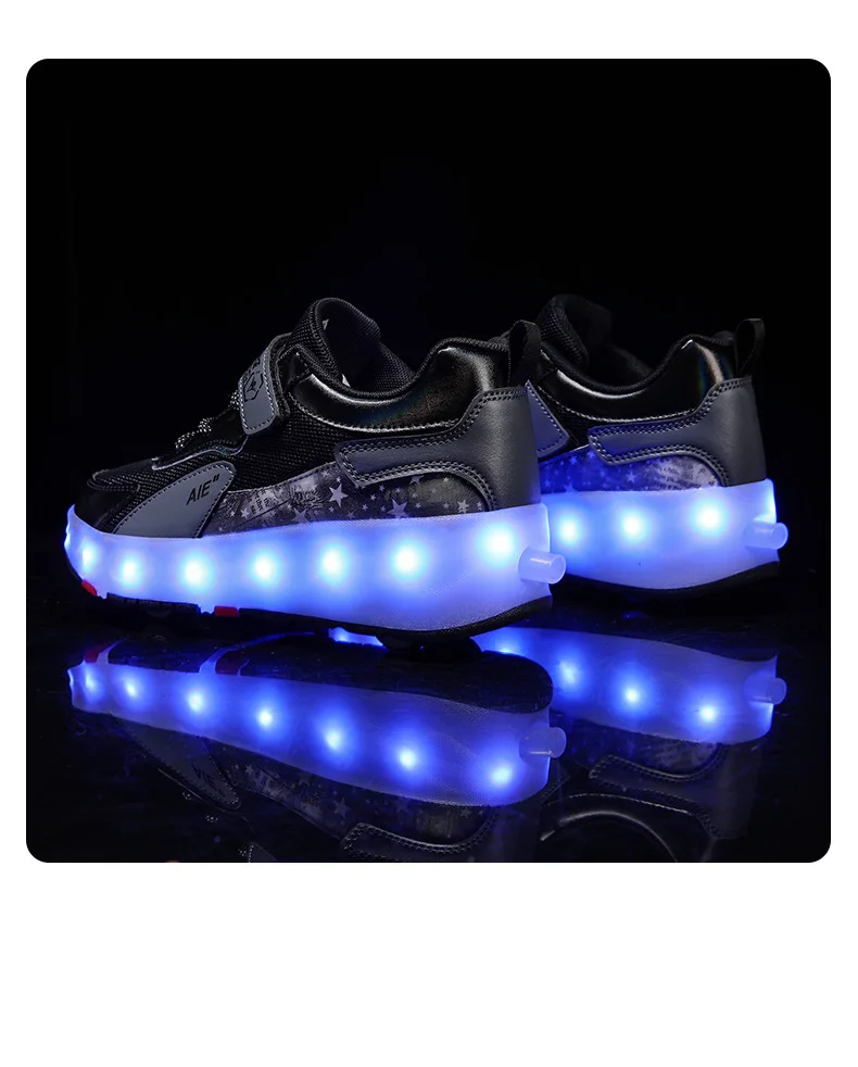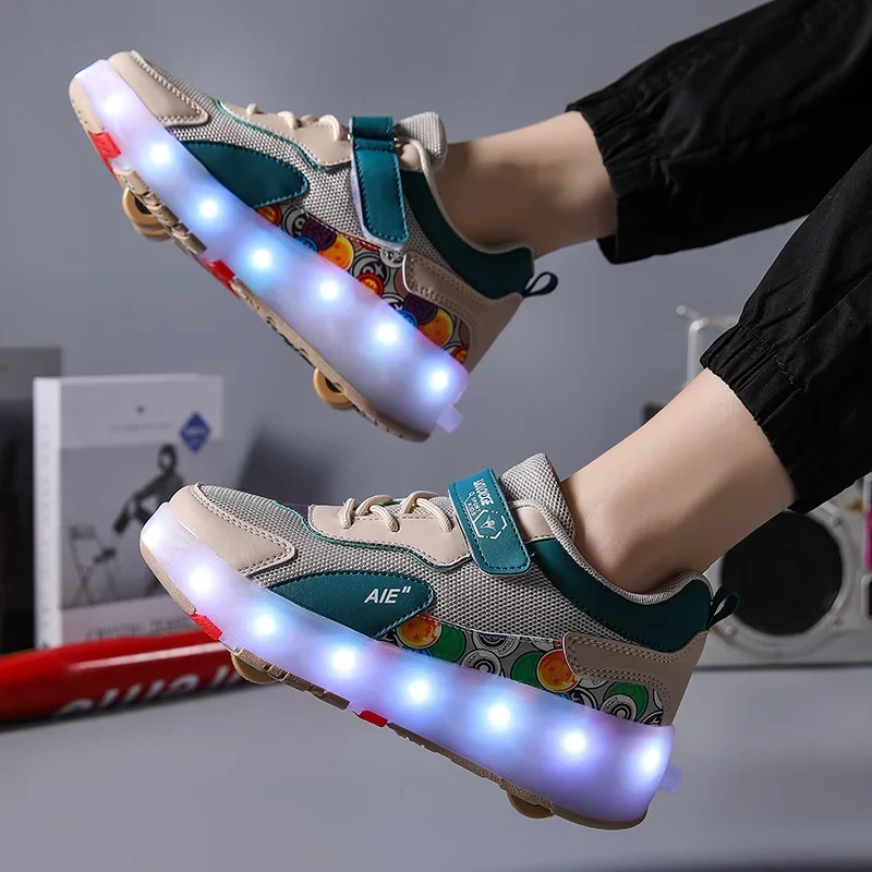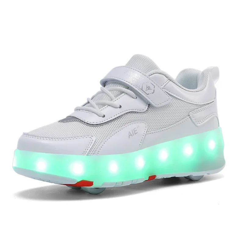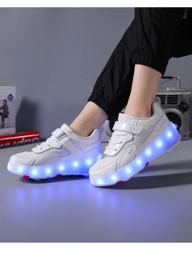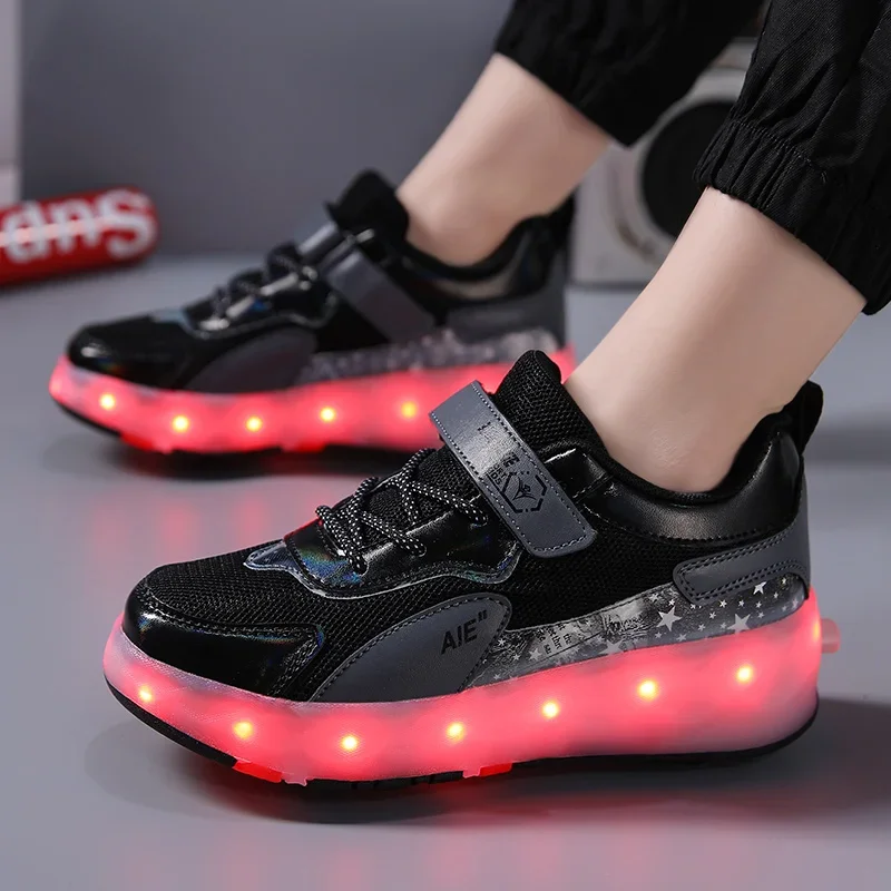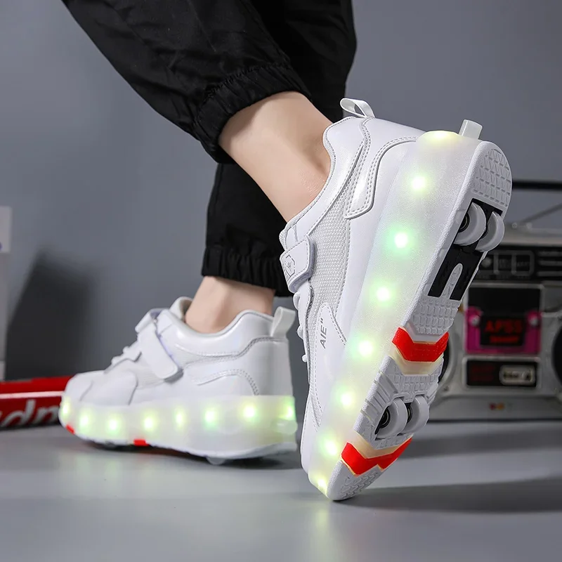 LED Lights Kids Roller Skate Shoes Running Sport With 4 Wheels Detachable Boys Girls Casual Deformation Parkour Skating Shoes