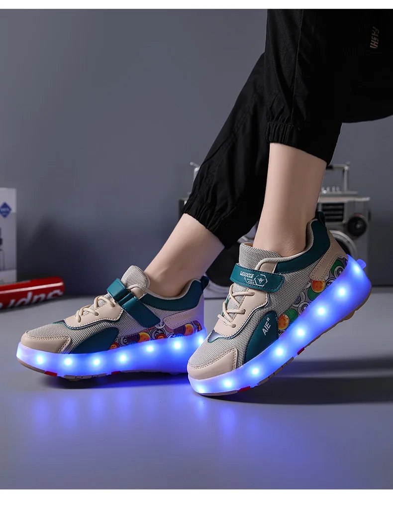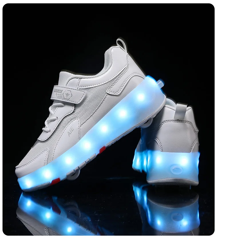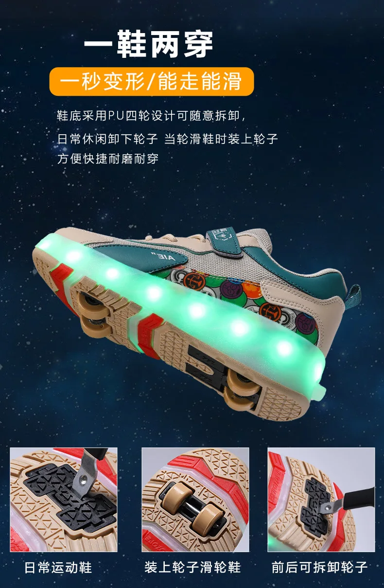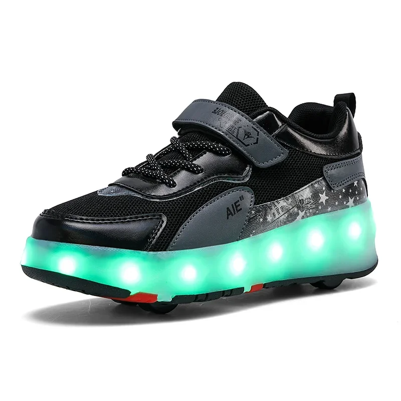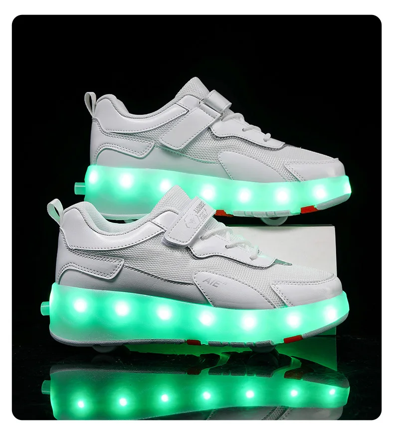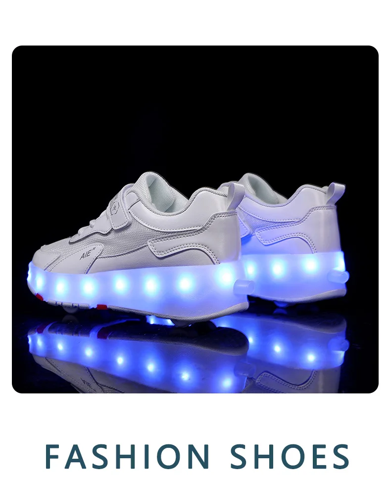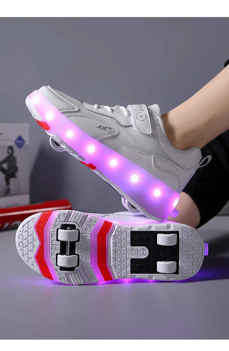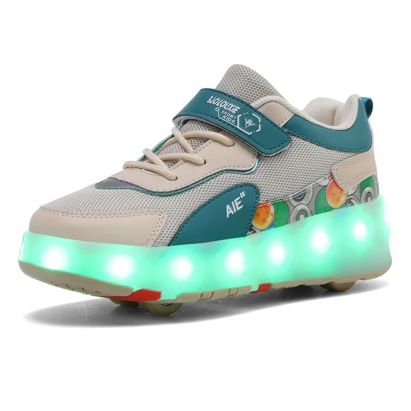 LED Lights Kids Roller Skate Shoes Running Sport With 4 Wheels Detachable Boys Girls Casual Deformation Parkour Skating Shoes
