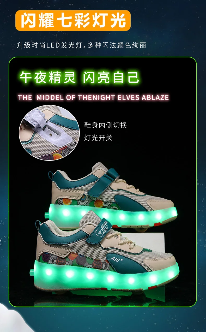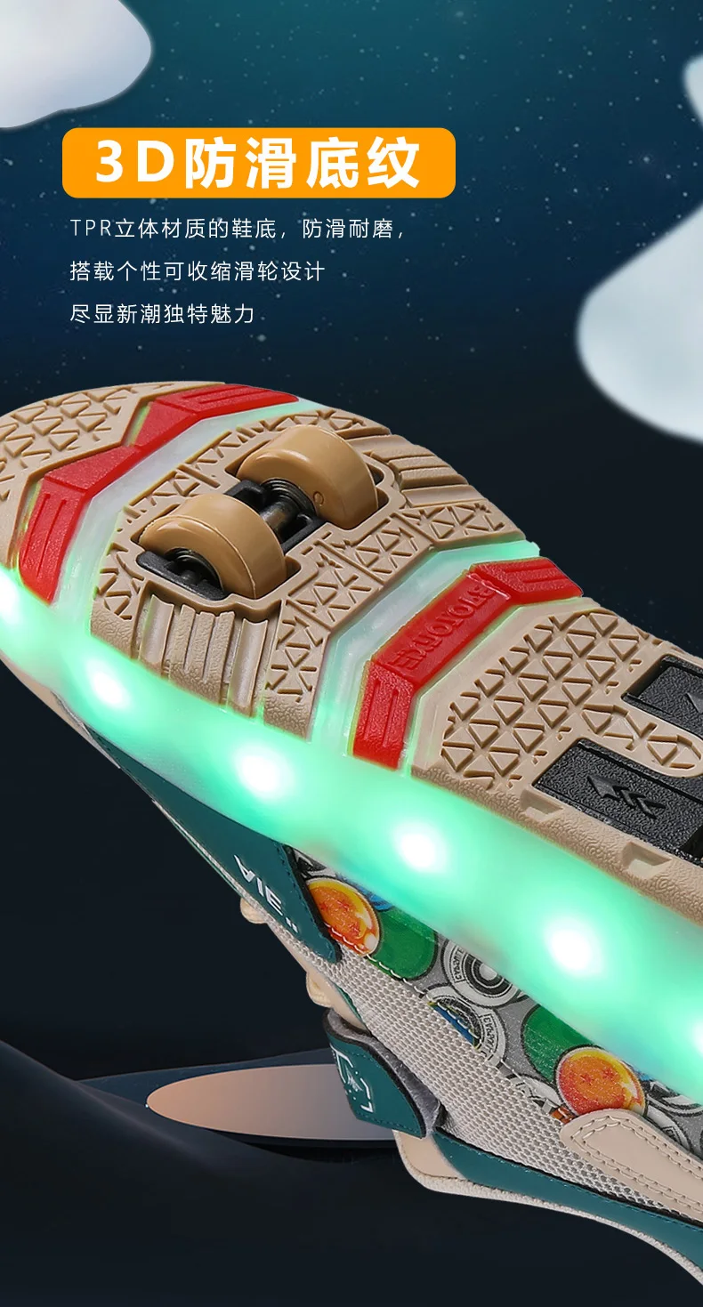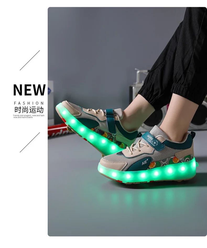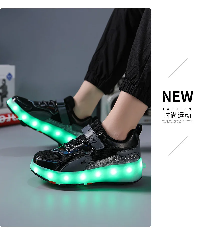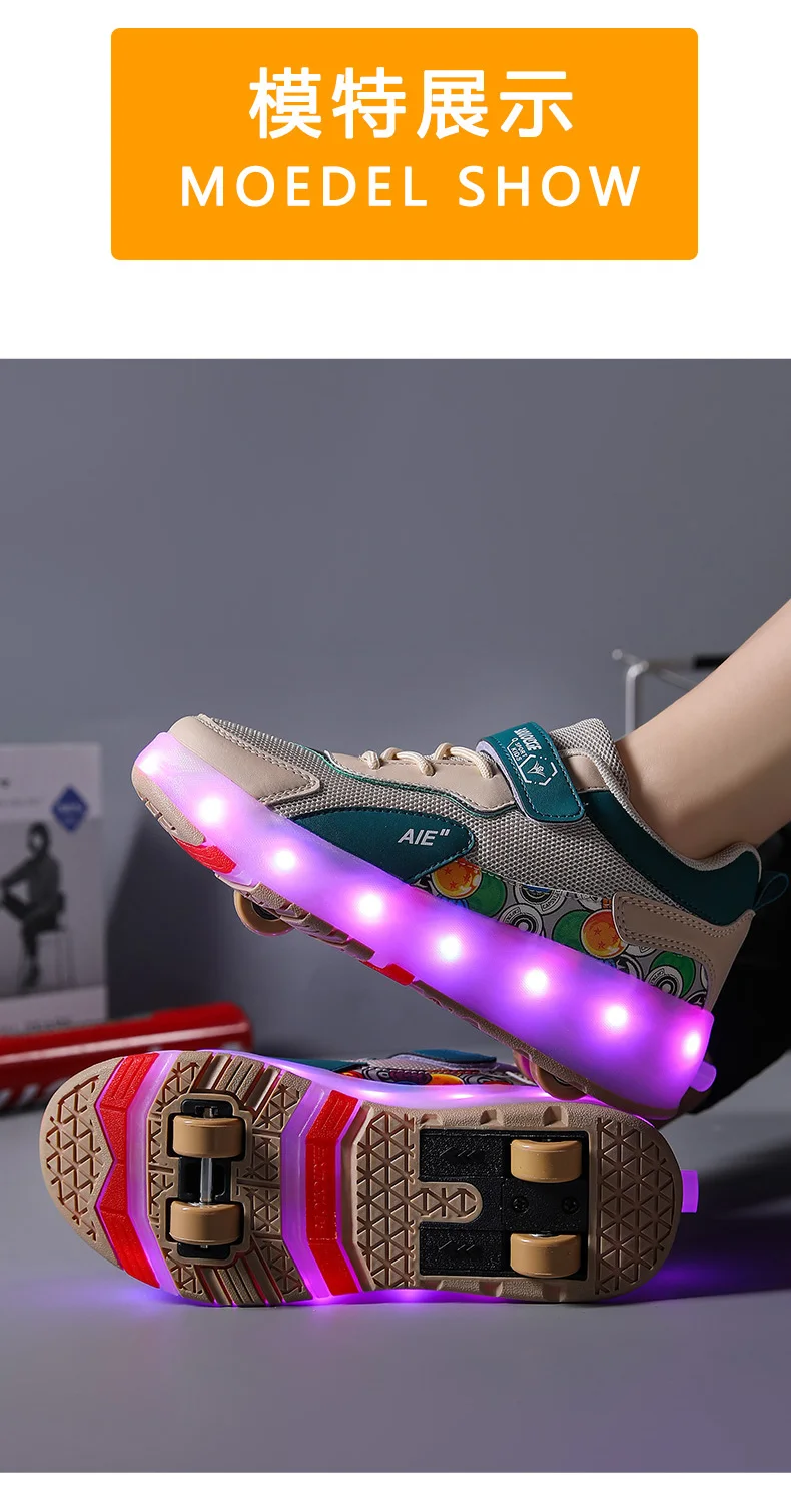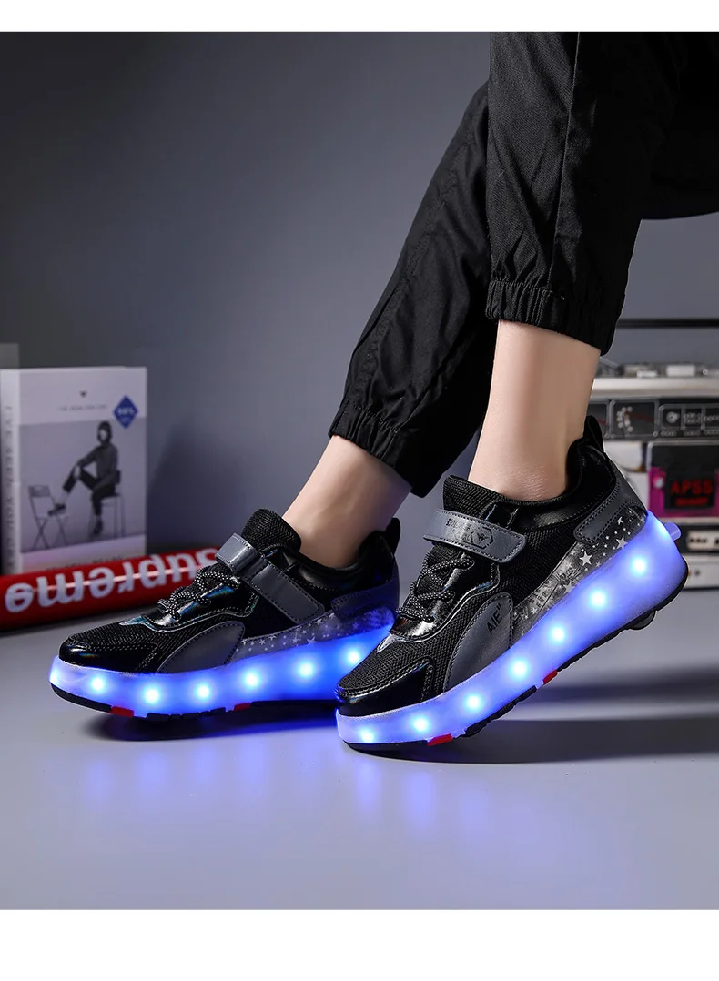 LED Lights Kids Roller Skate Shoes Running Sport With 4 Wheels Detachable Boys Girls Casual Deformation Parkour Skating Shoes