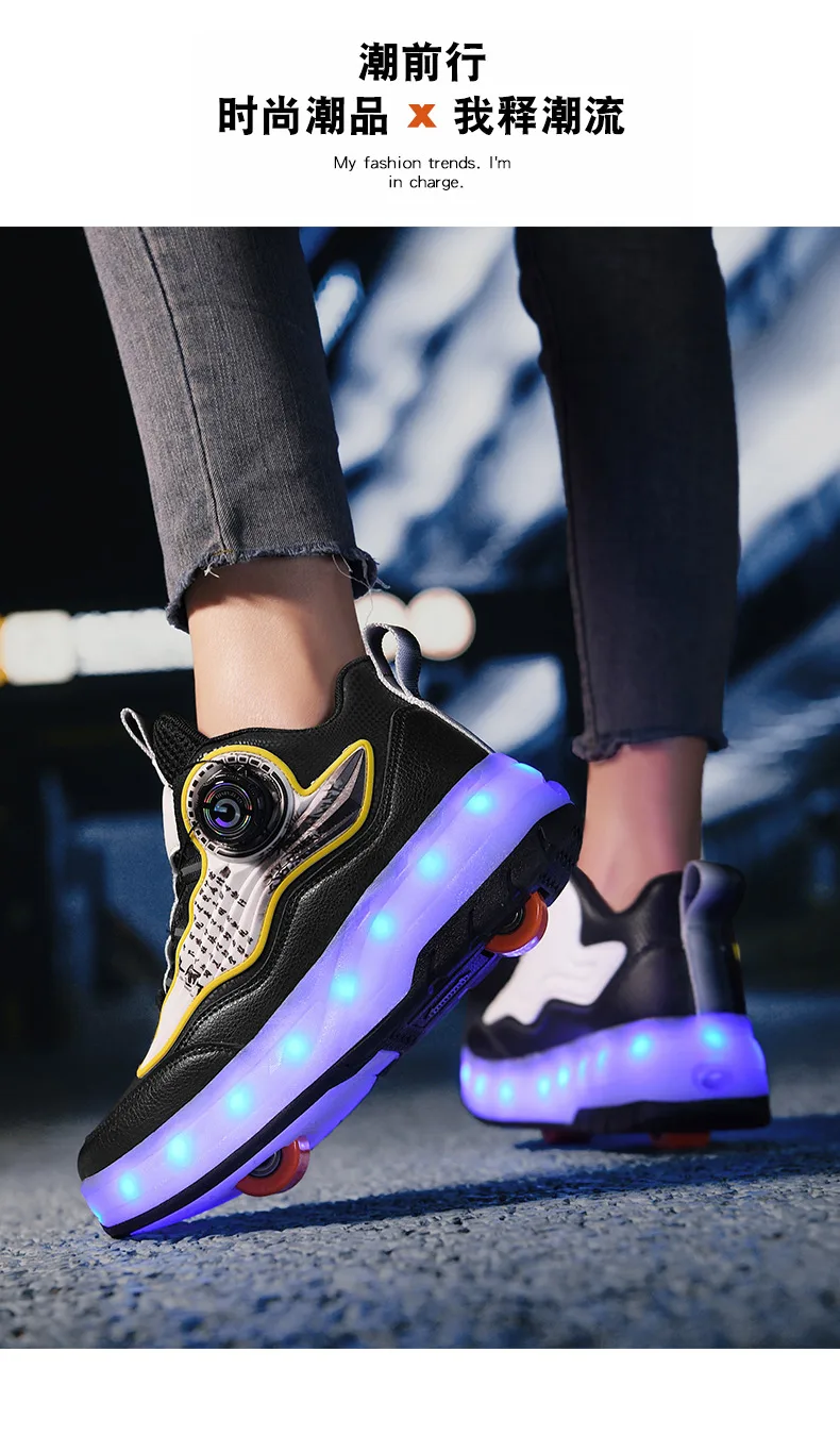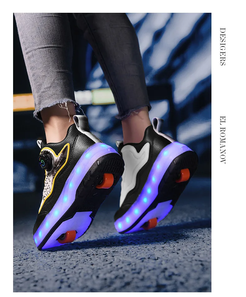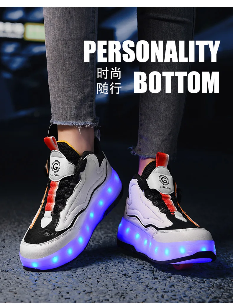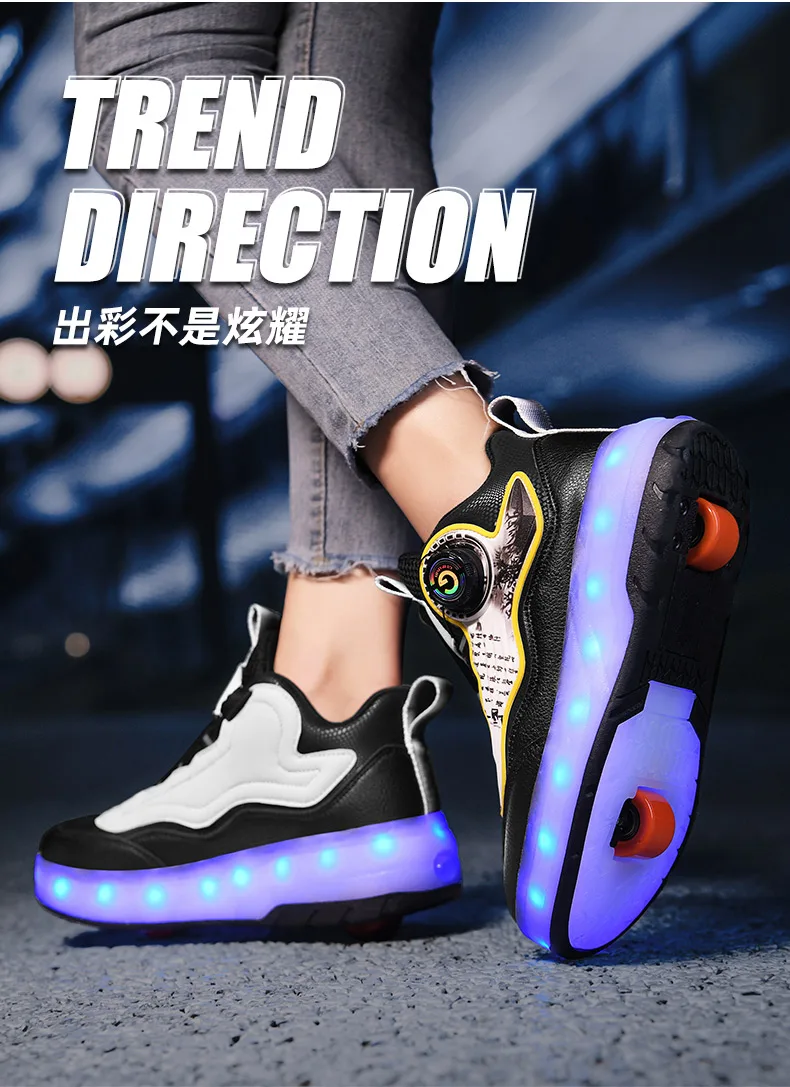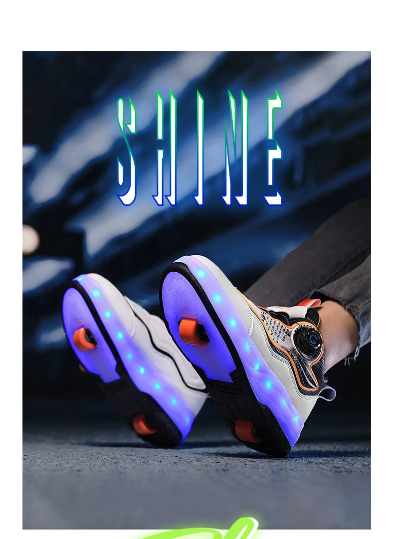 LED Lights Kids Roller Skate Shoes Running With 2 Wheels Boys Girls Detachable Adults Casual Parkour Deformation Skating Shoes