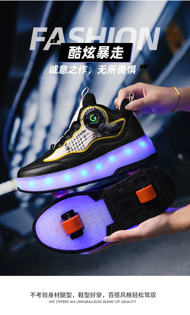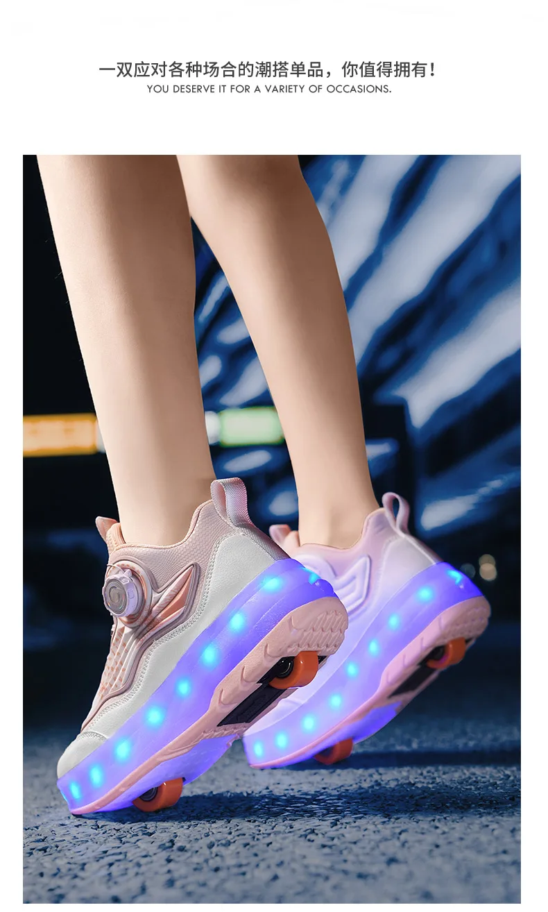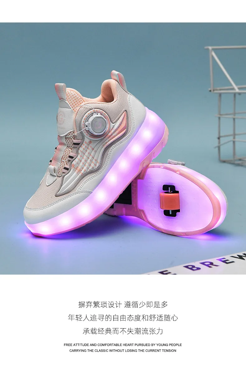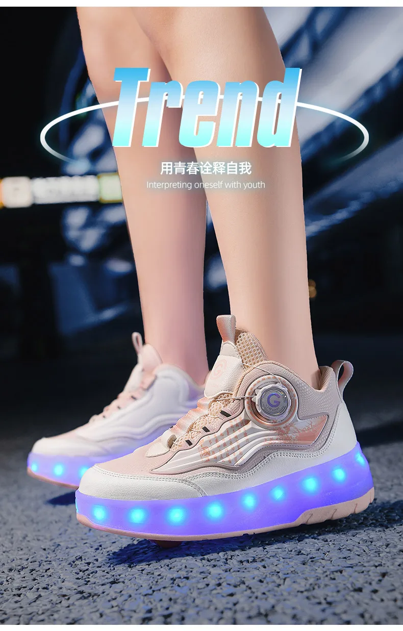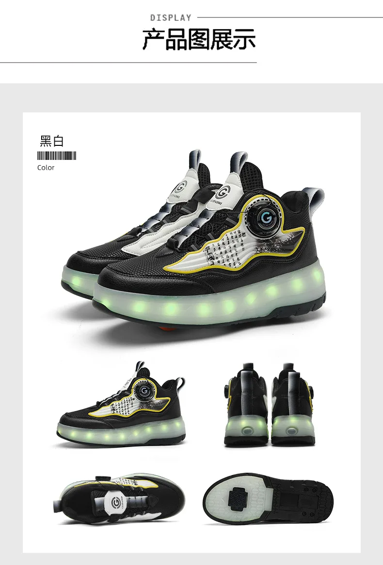 LED Lights Kids Roller Skate Shoes Running With 2 Wheels Boys Girls Detachable Adults Casual Parkour Deformation Skating Shoes
