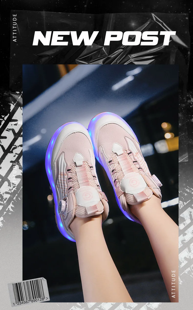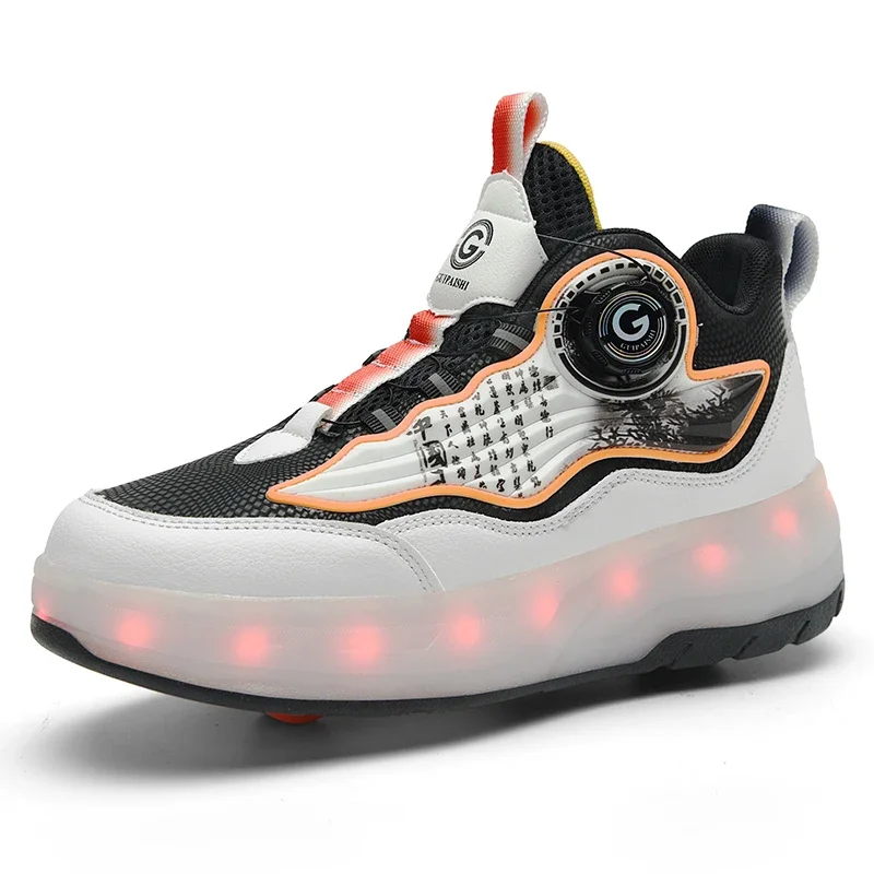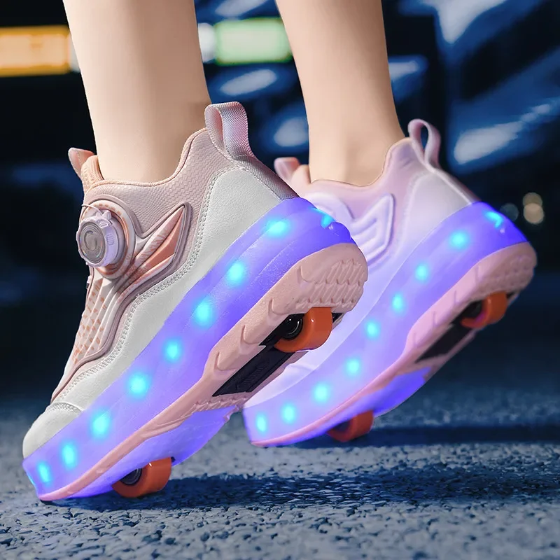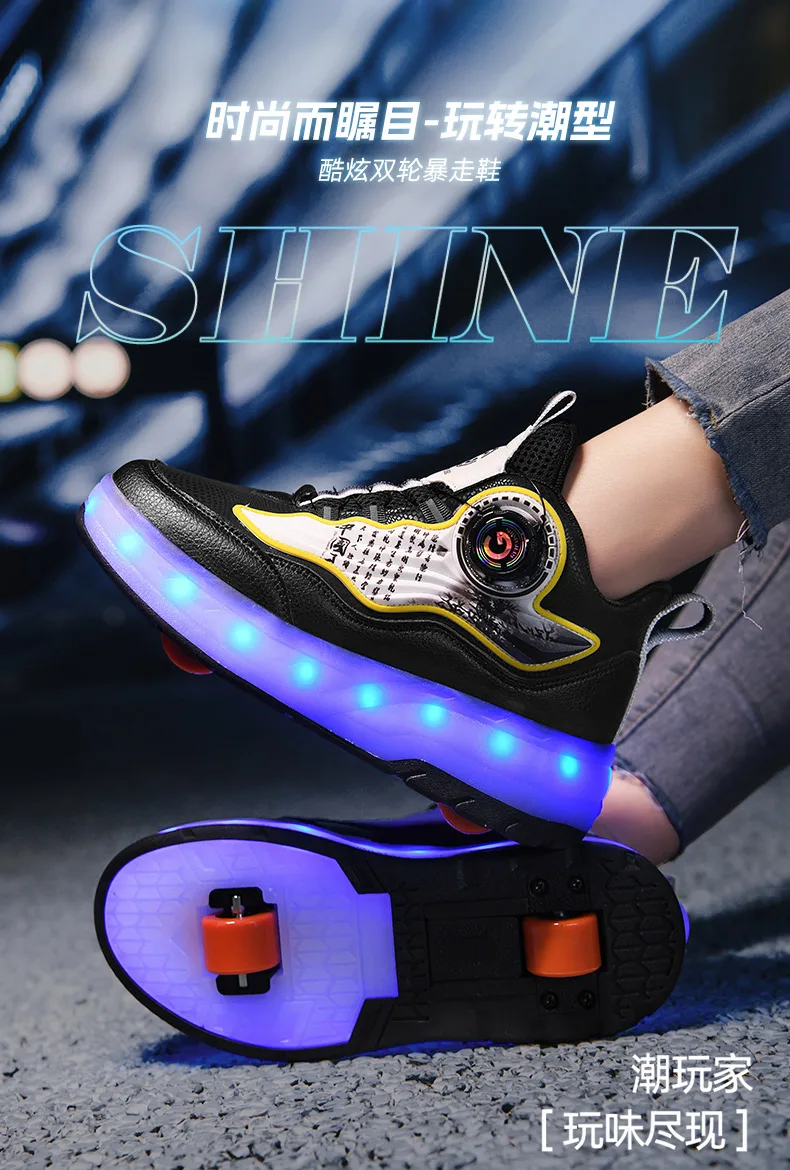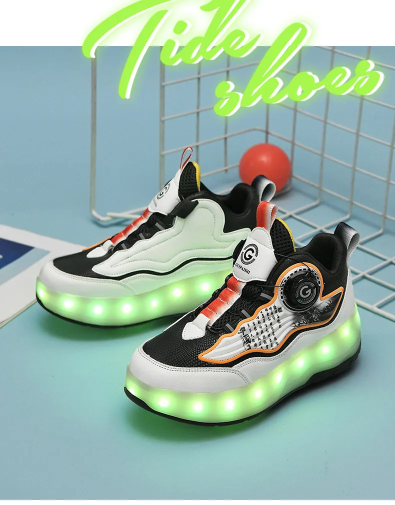 LED Lights Kids Roller Skate Shoes Running With 2 Wheels Boys Girls Detachable Adults Casual Parkour Deformation Skating Shoes