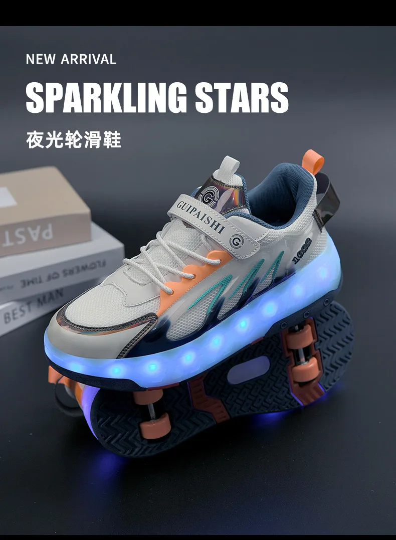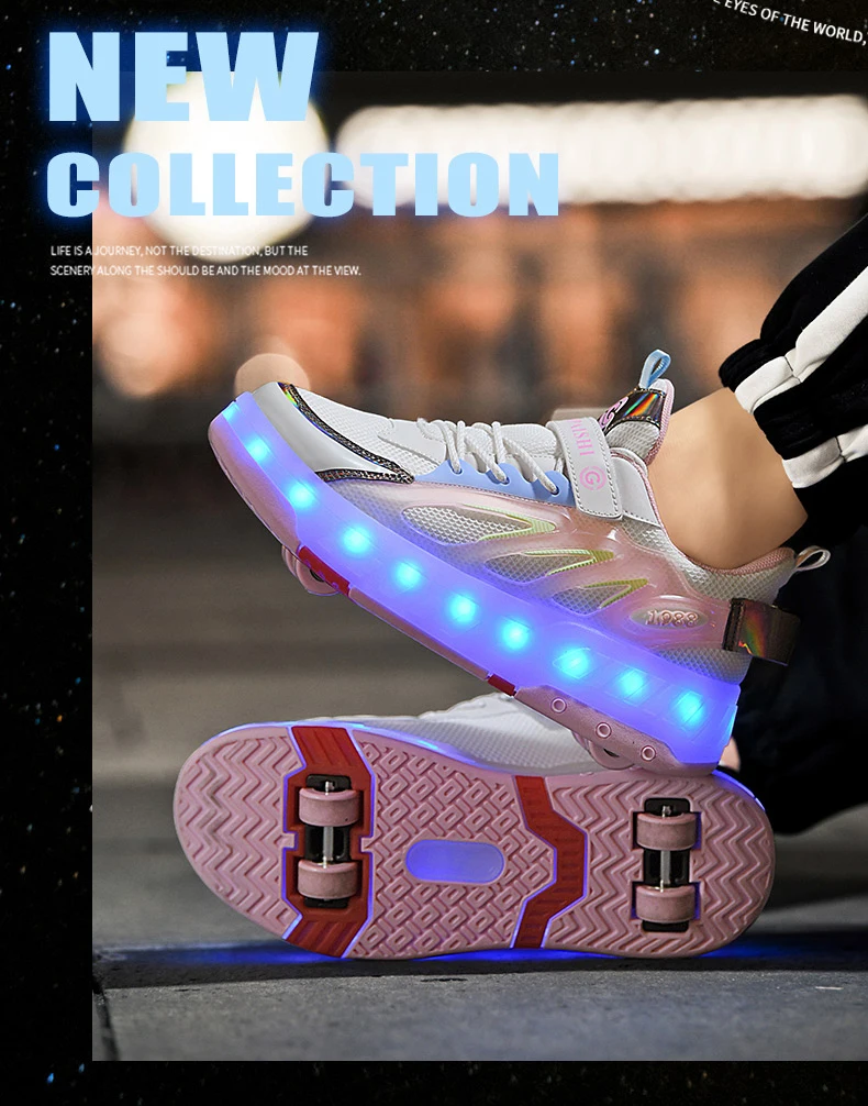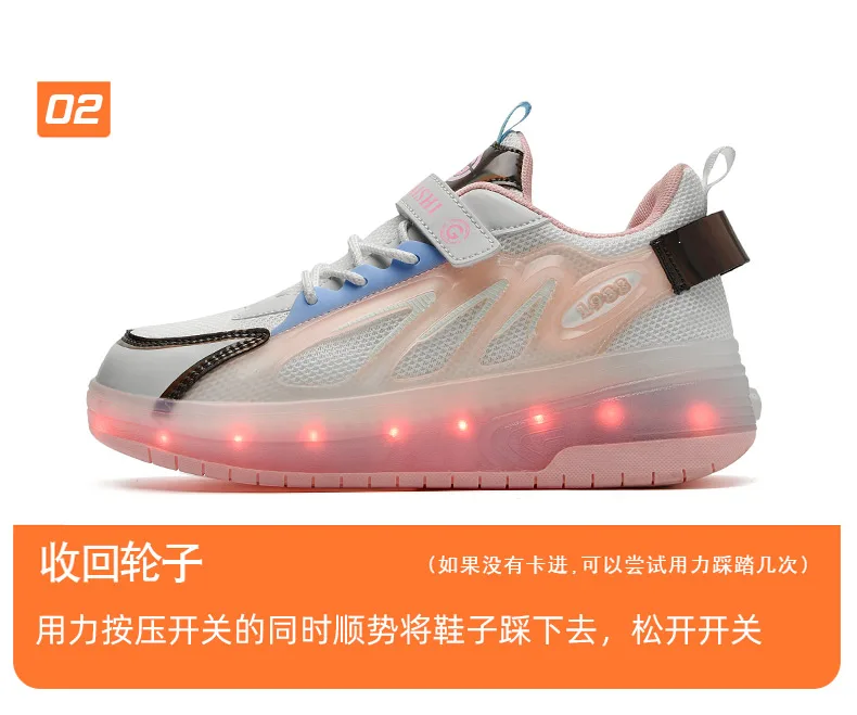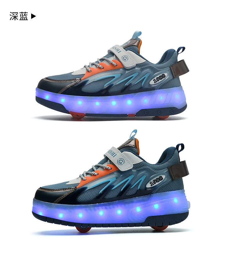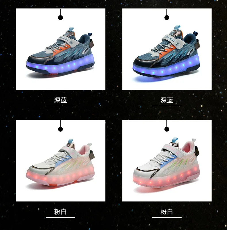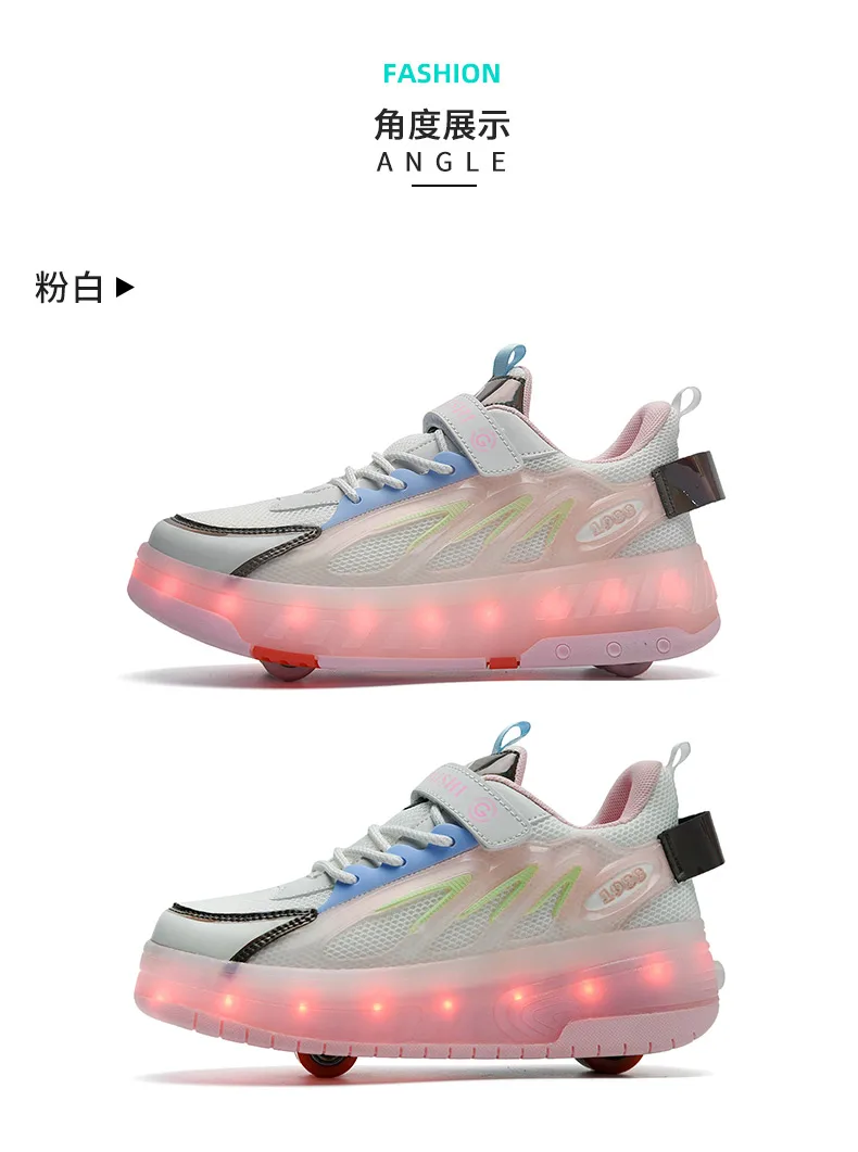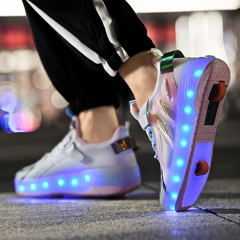 LED Lights Kids Roller Skate Shoes Running With 2 Wheels Detachable Deformation Adults Casual Boys Girls Parkour Skating Shoes