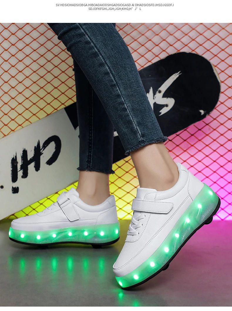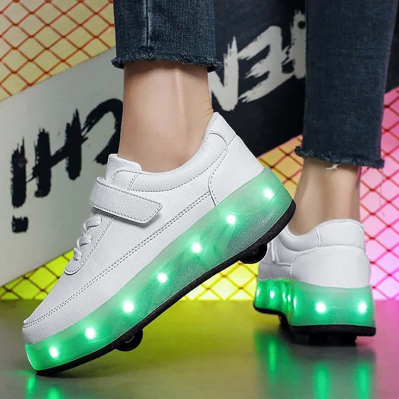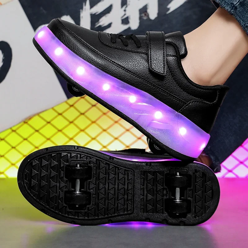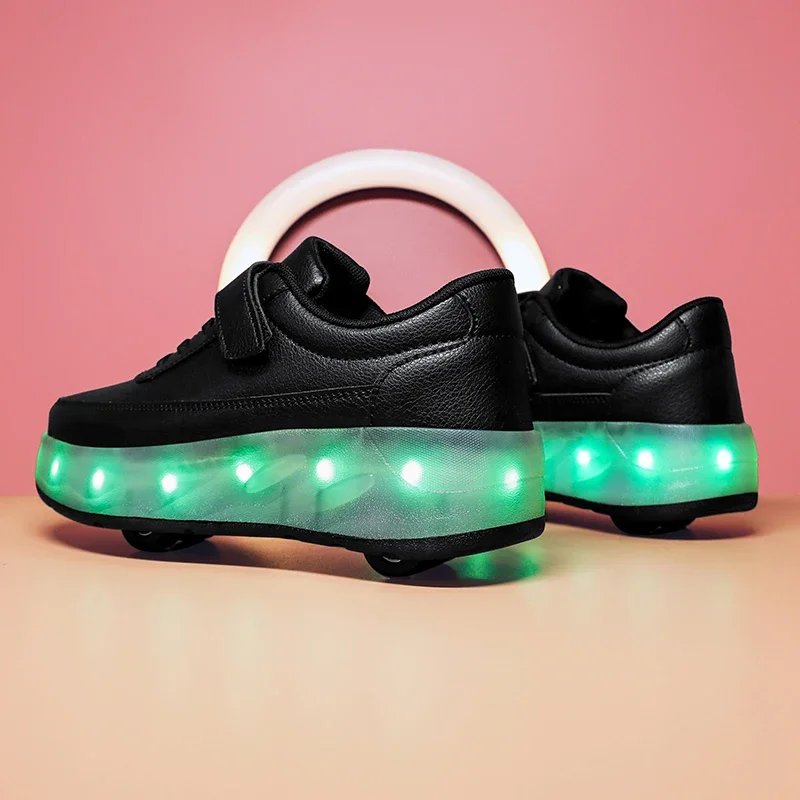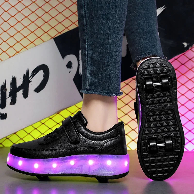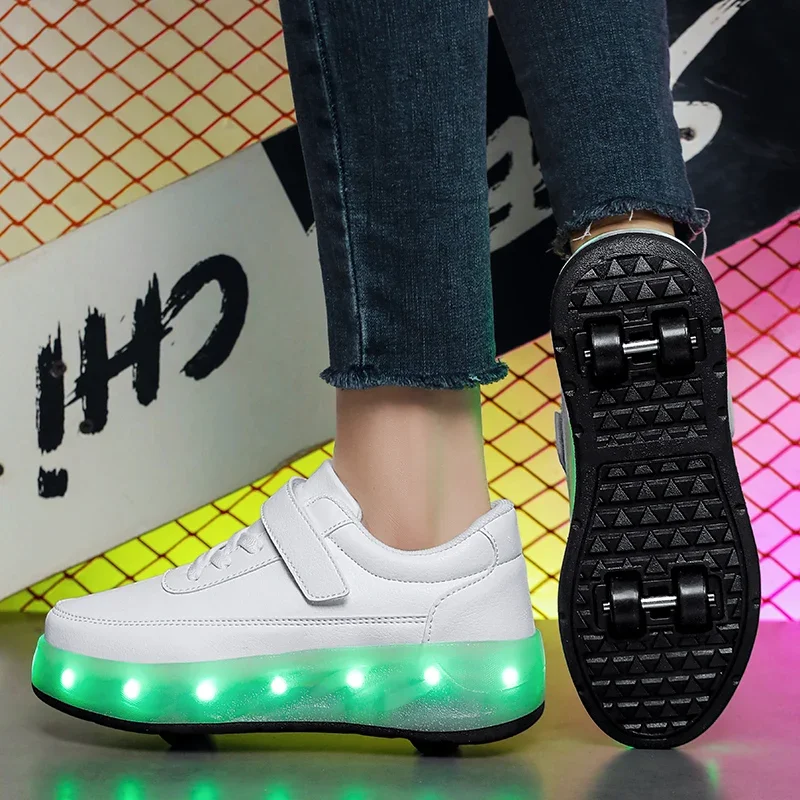 LED Lights Kids Roller Skate Shoes Sport Deformation Boys Girls Parkour Sneakers With 4 Wheels Detachable Adults Skating Shoes