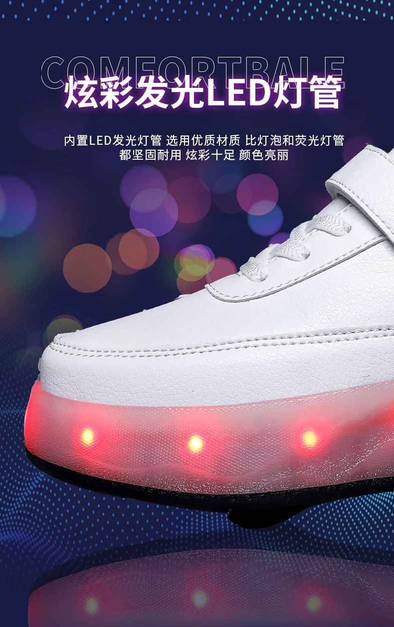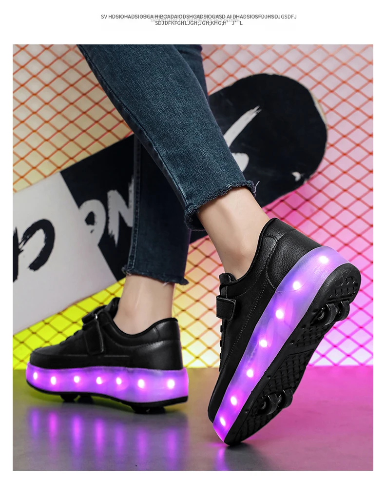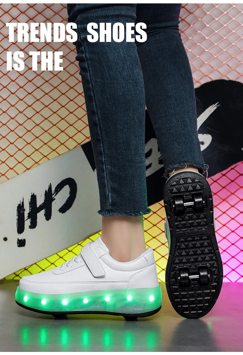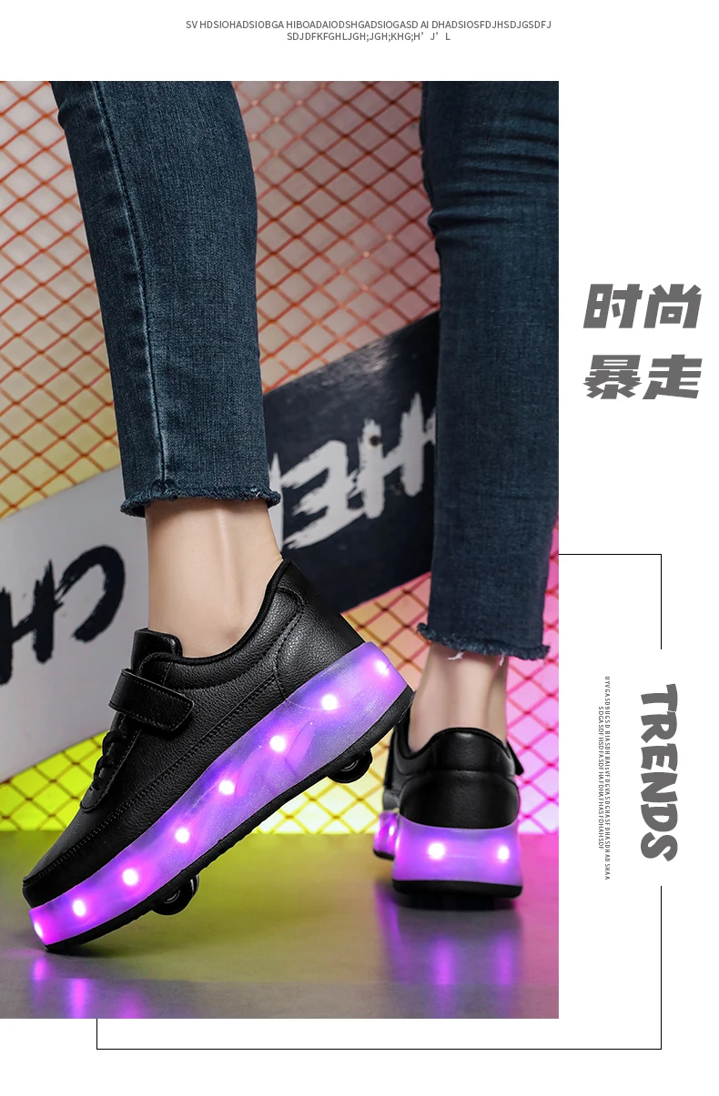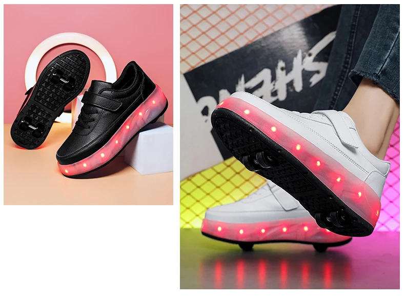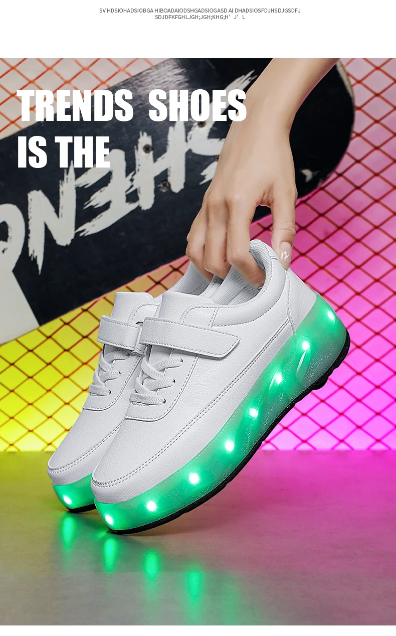 LED Lights Kids Roller Skate Shoes Sport Deformation Boys Girls Parkour Sneakers With 4 Wheels Detachable Adults Skating Shoes