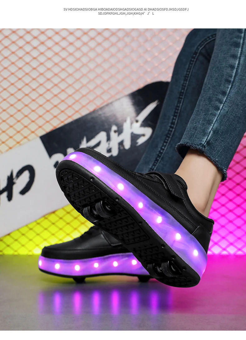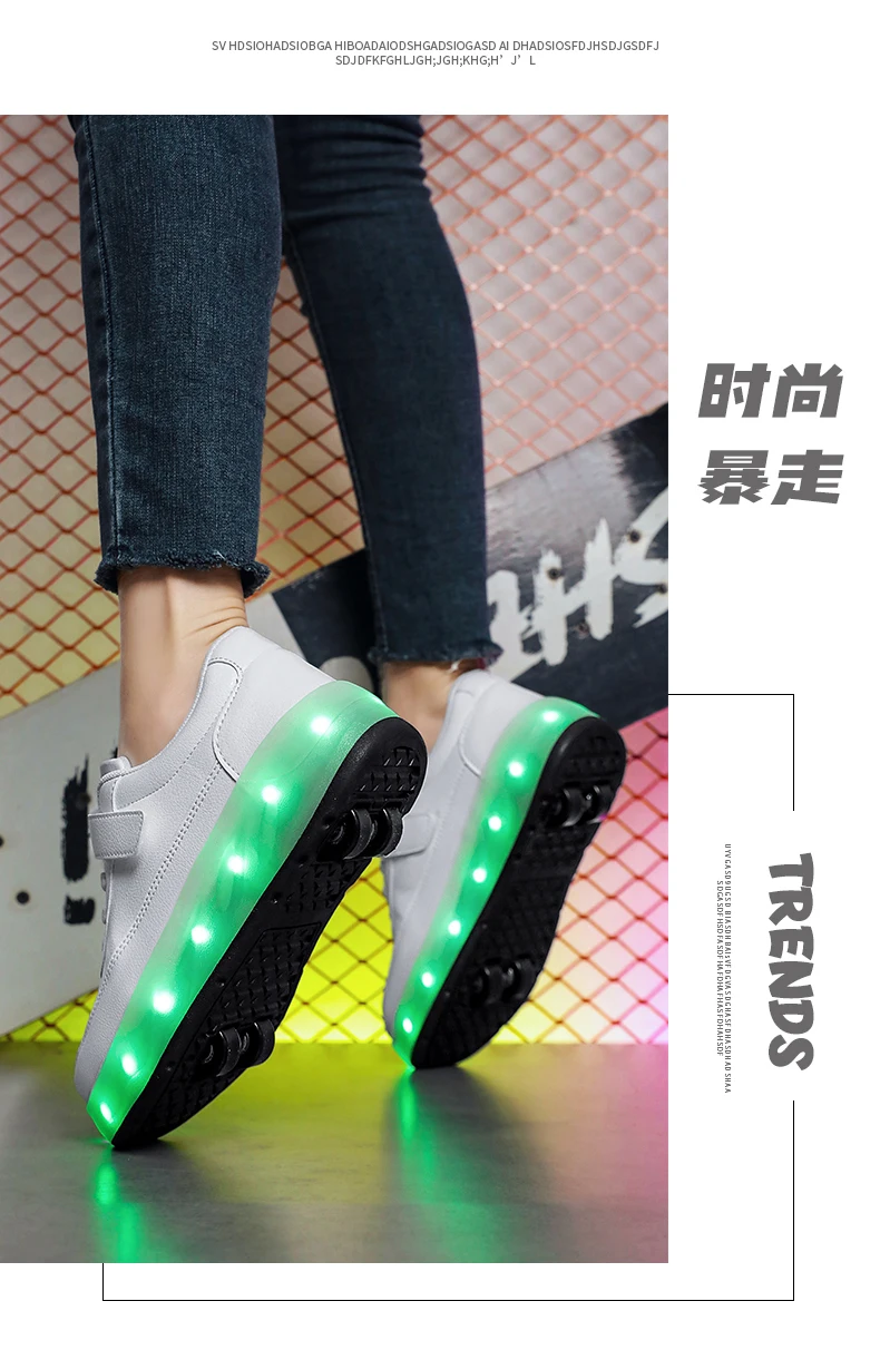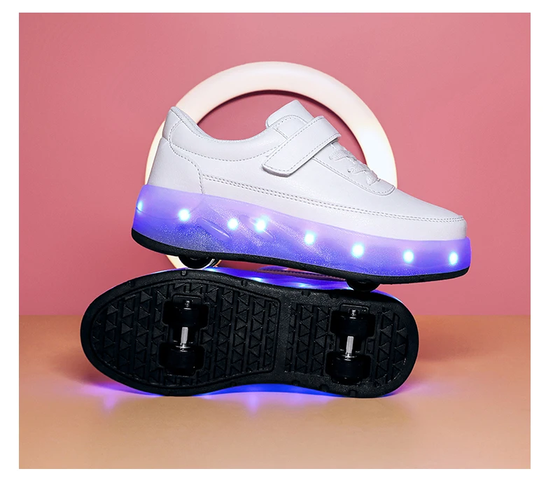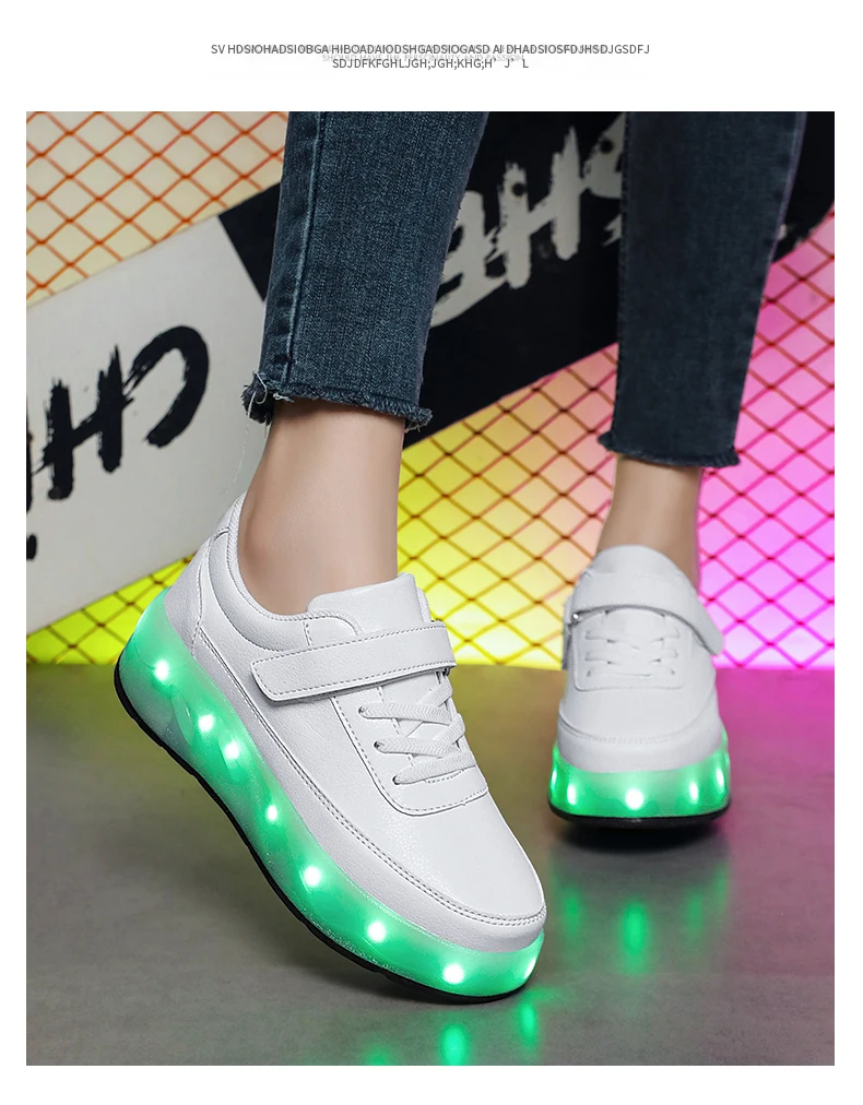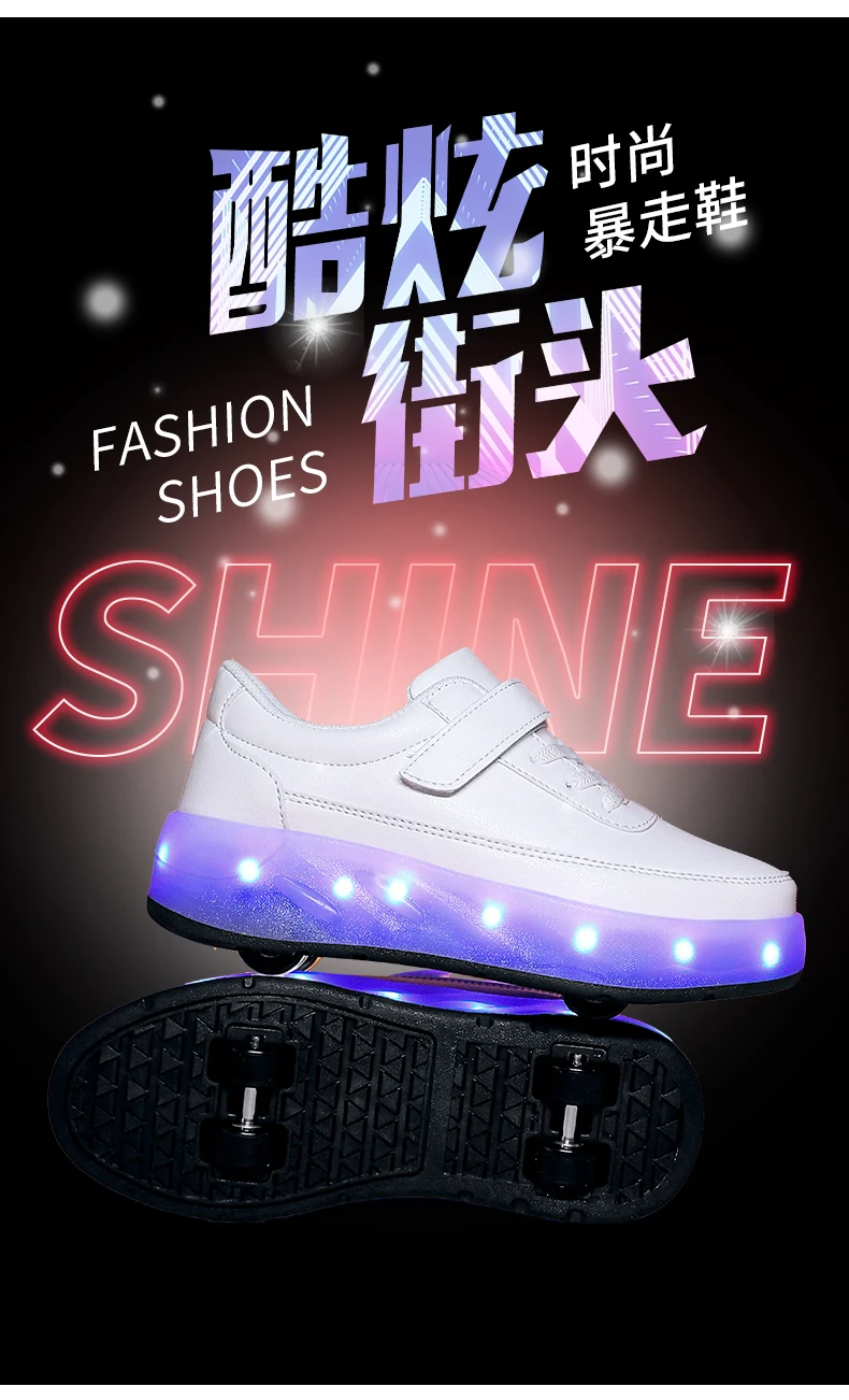 LED Lights Kids Roller Skate Shoes Sport Deformation Boys Girls Parkour Sneakers With 4 Wheels Detachable Adults Skating Shoes