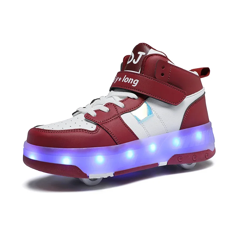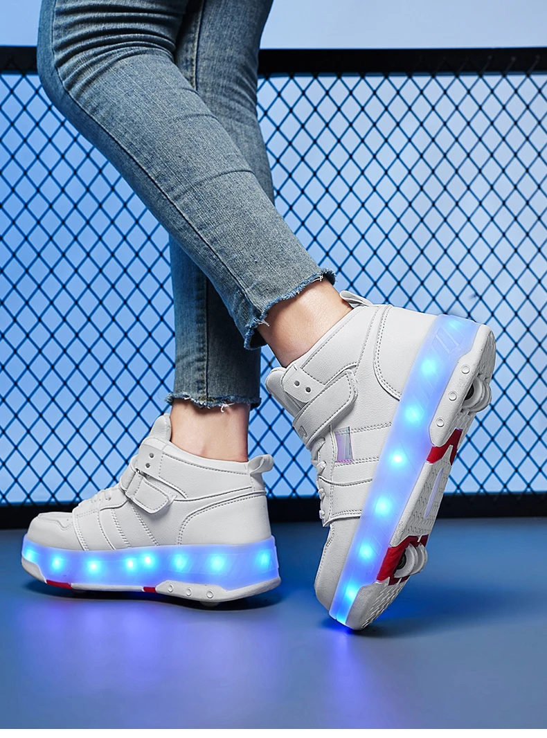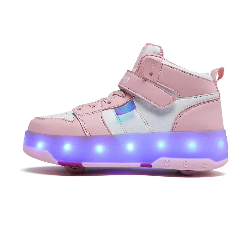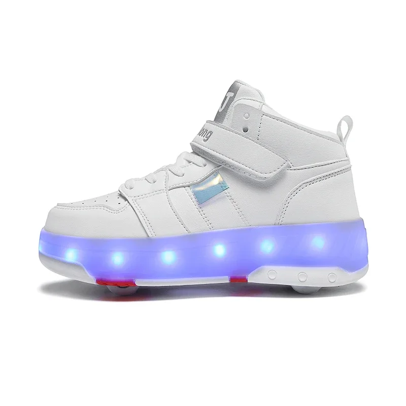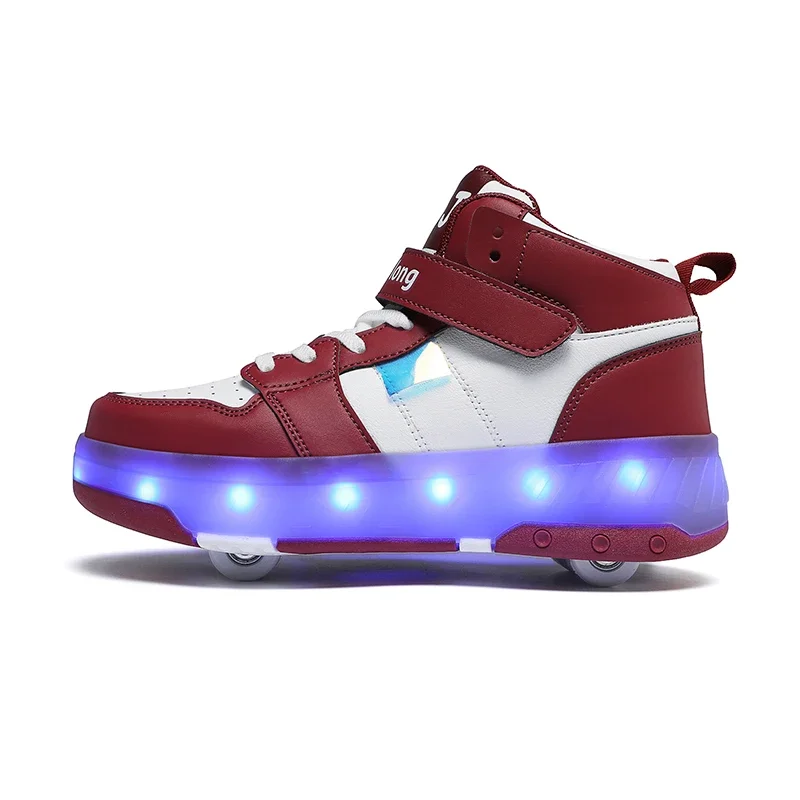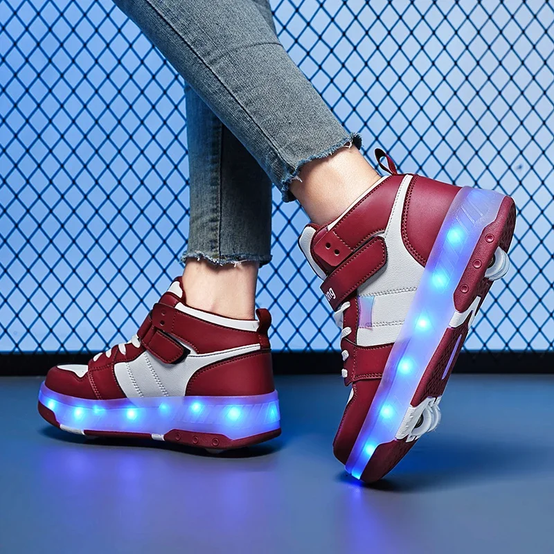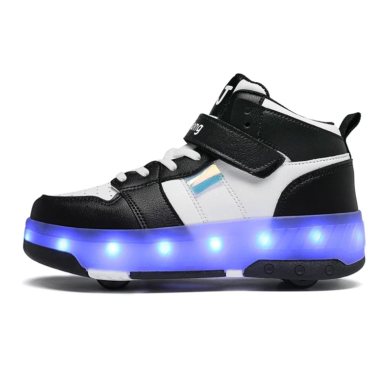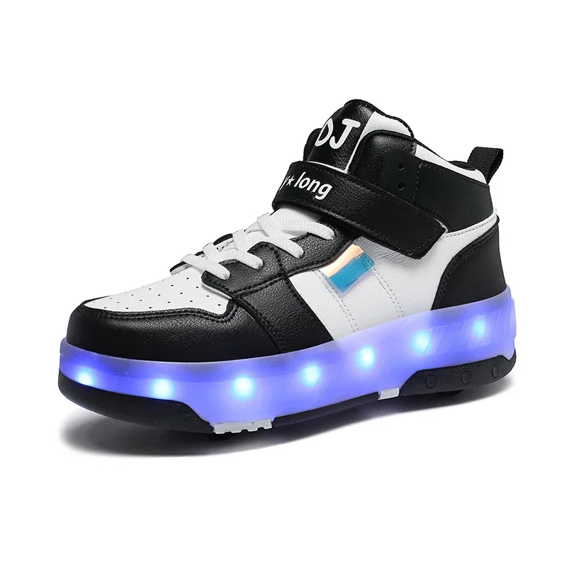 LED Lights Kids Roller Skate Shoes Sport Detachable Boys Girls Parkour Casual Deformation With 4 Wheels Running Skating Shoes