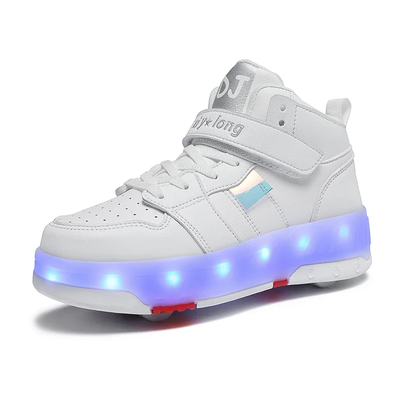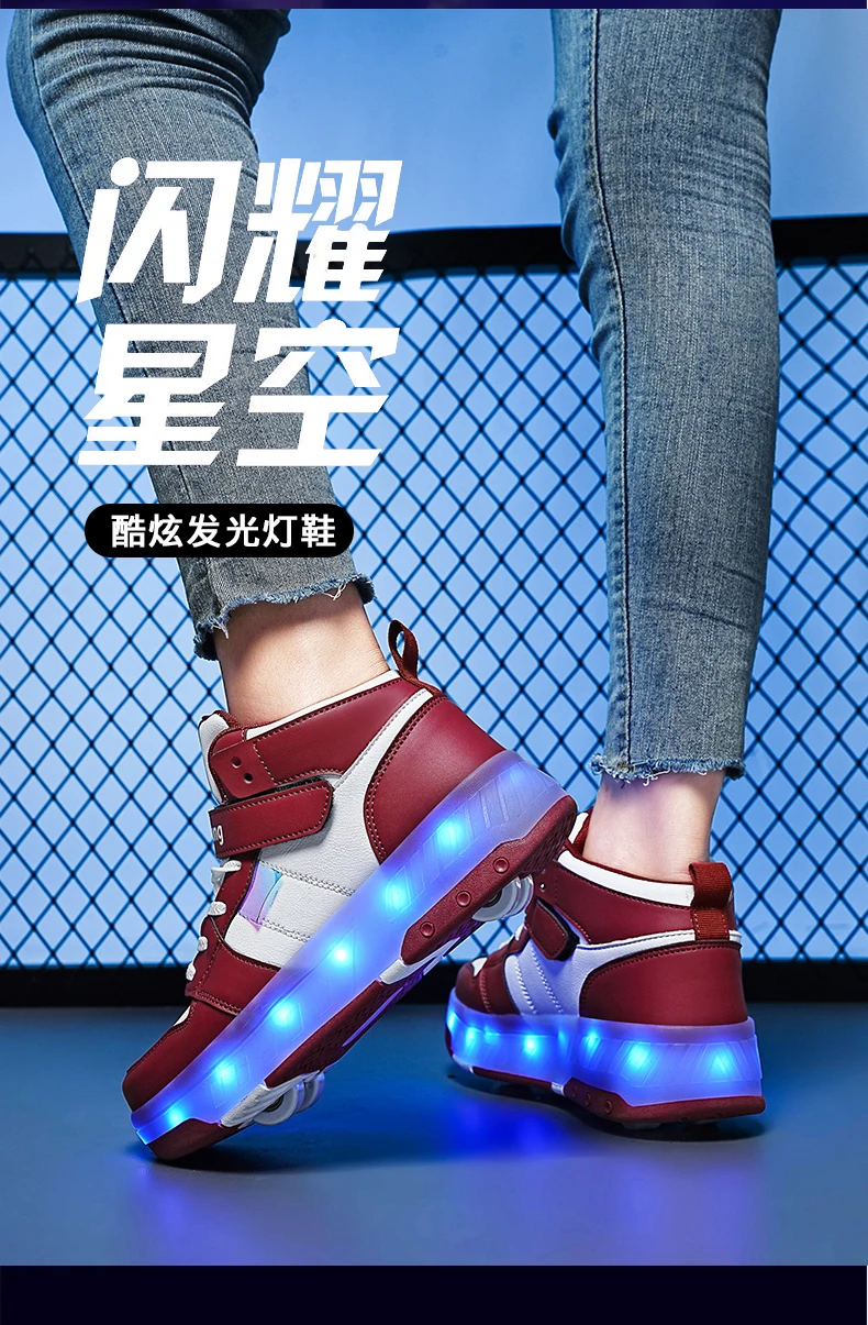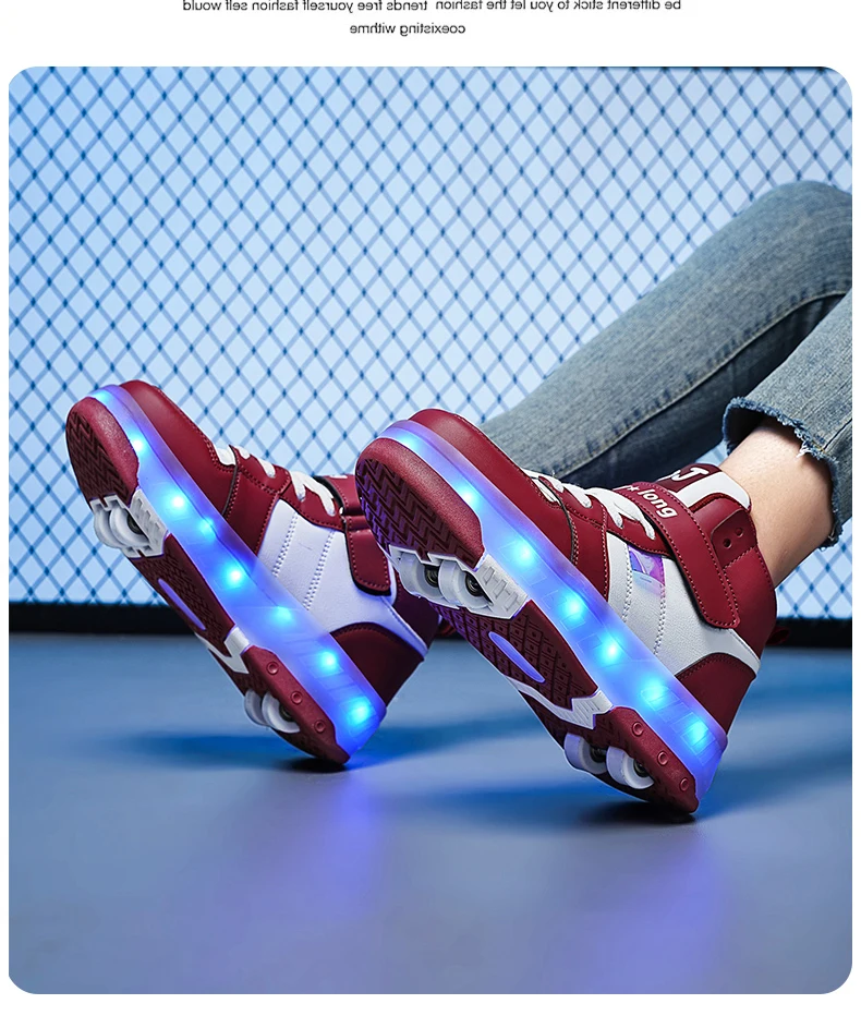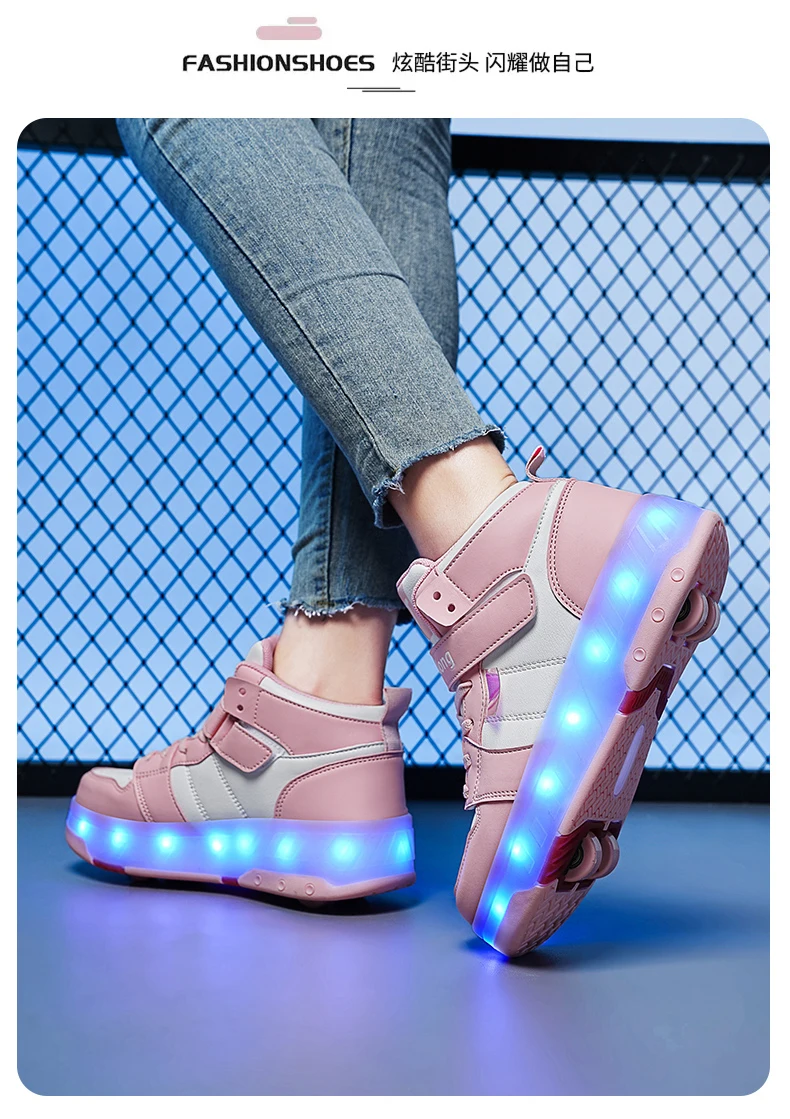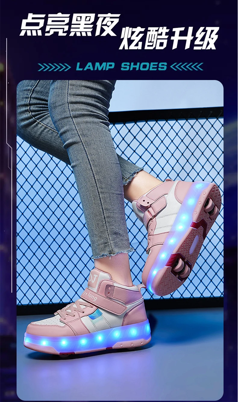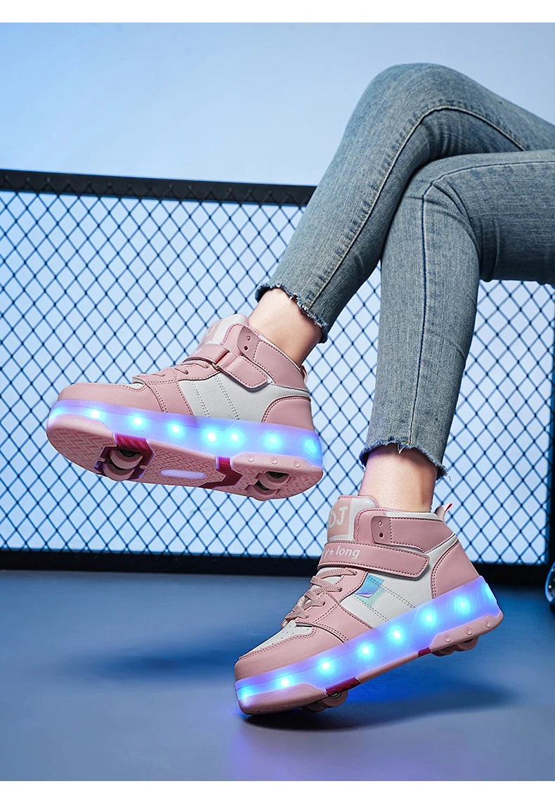 LED Lights Kids Roller Skate Shoes Sport Detachable Boys Girls Parkour Casual Deformation With 4 Wheels Running Skating Shoes