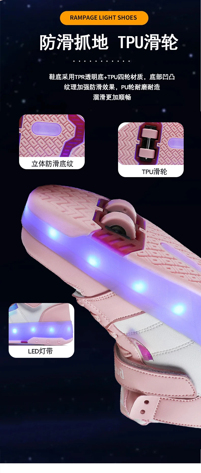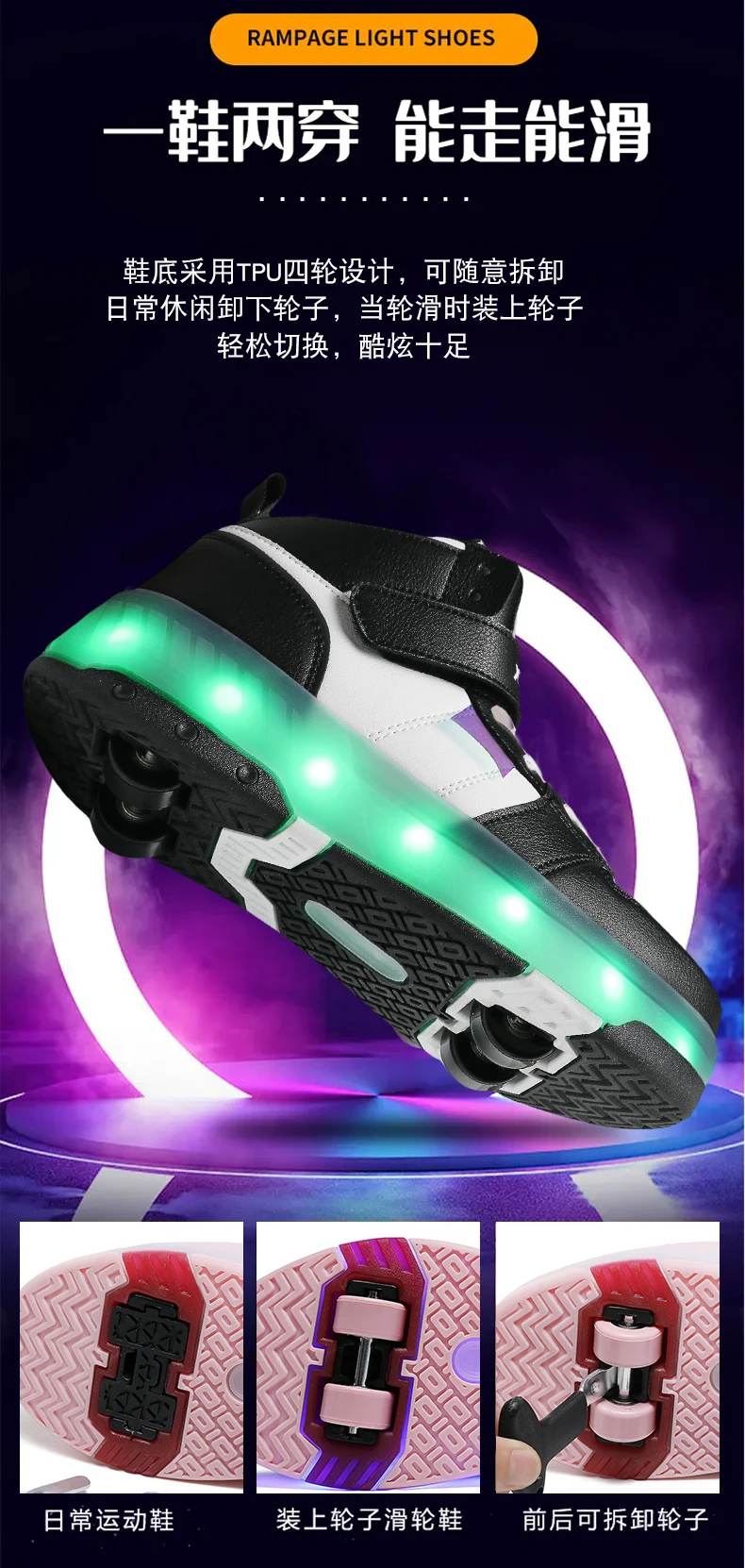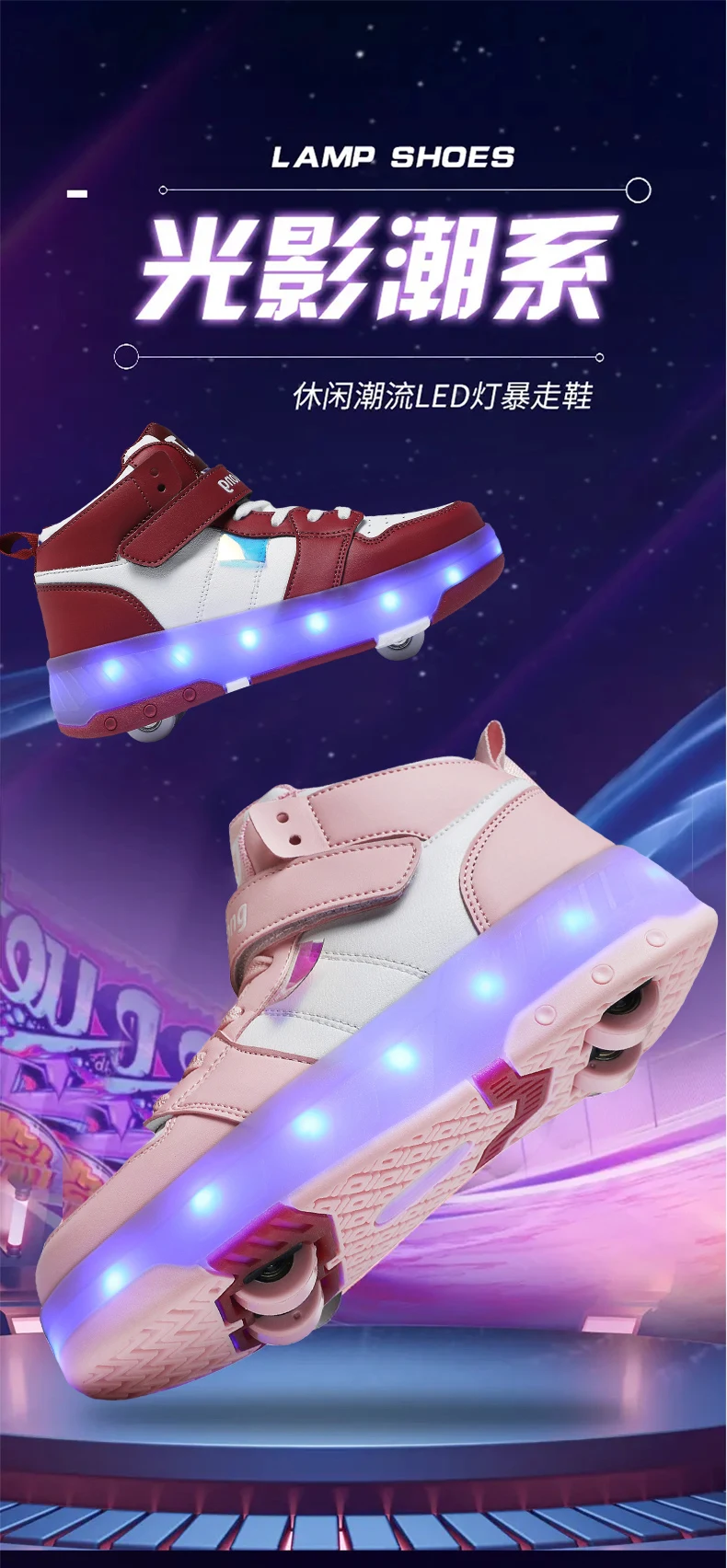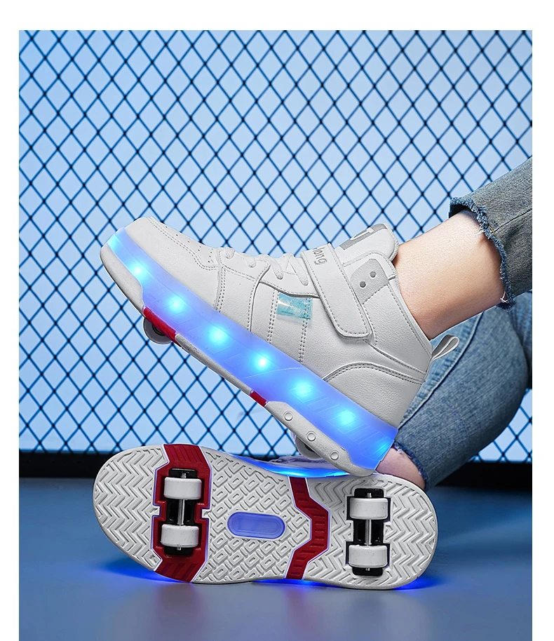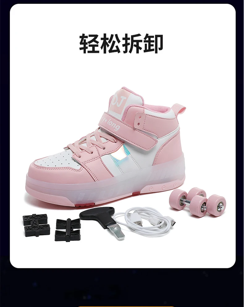 LED Lights Kids Roller Skate Shoes Sport Detachable Boys Girls Parkour Casual Deformation With 4 Wheels Running Skating Shoes