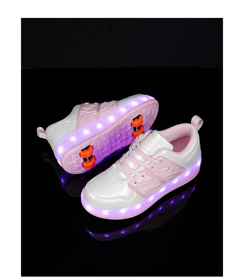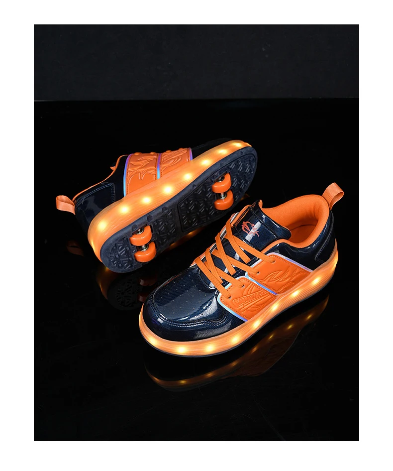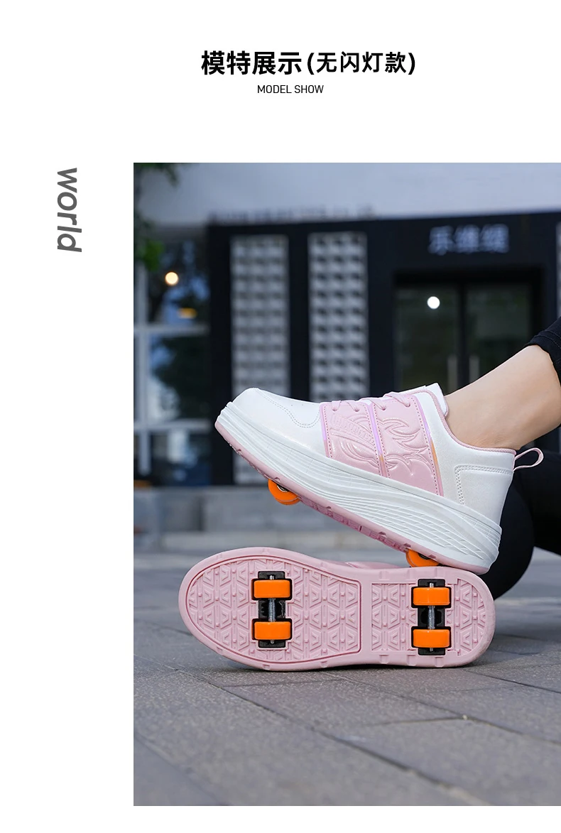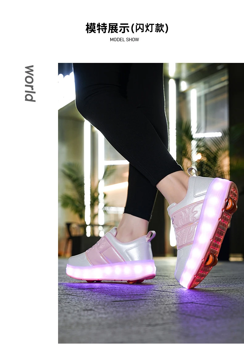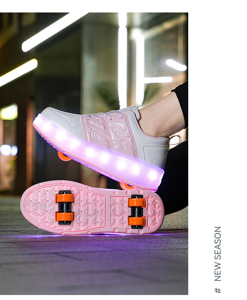 LED Lights Kids Roller Skate Shoes Sport Detachable Parkour Running With 4 Wheels Boys Girls Casual Deformation Skating Shoes