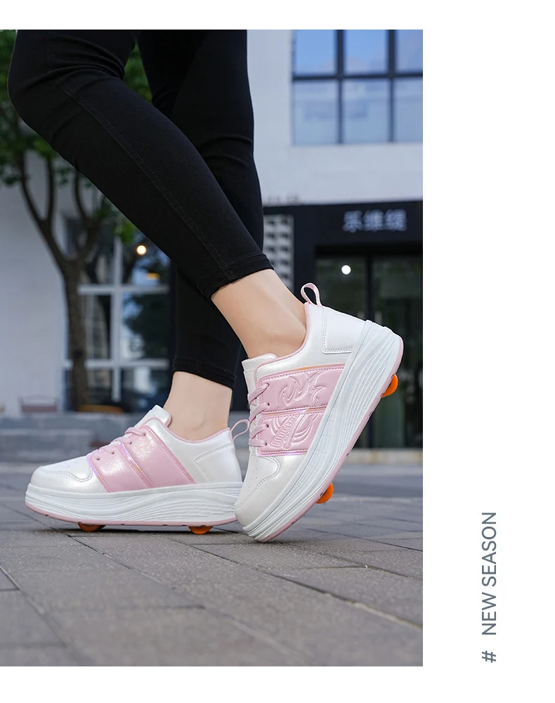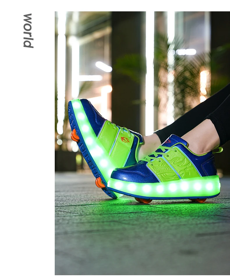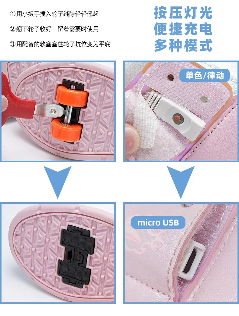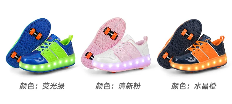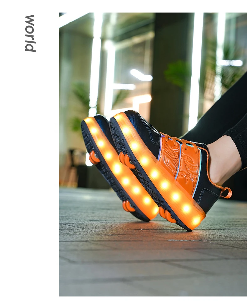 LED Lights Kids Roller Skate Shoes Sport Detachable Parkour Running With 4 Wheels Boys Girls Casual Deformation Skating Shoes