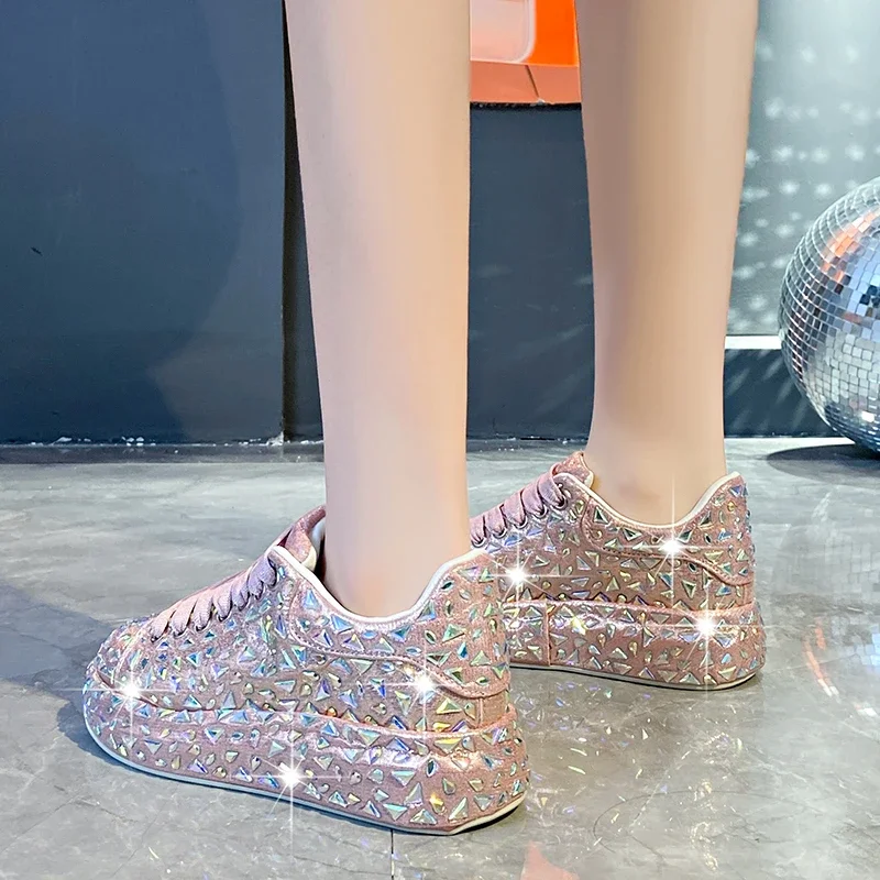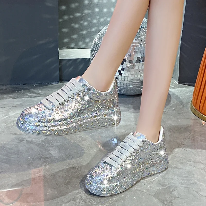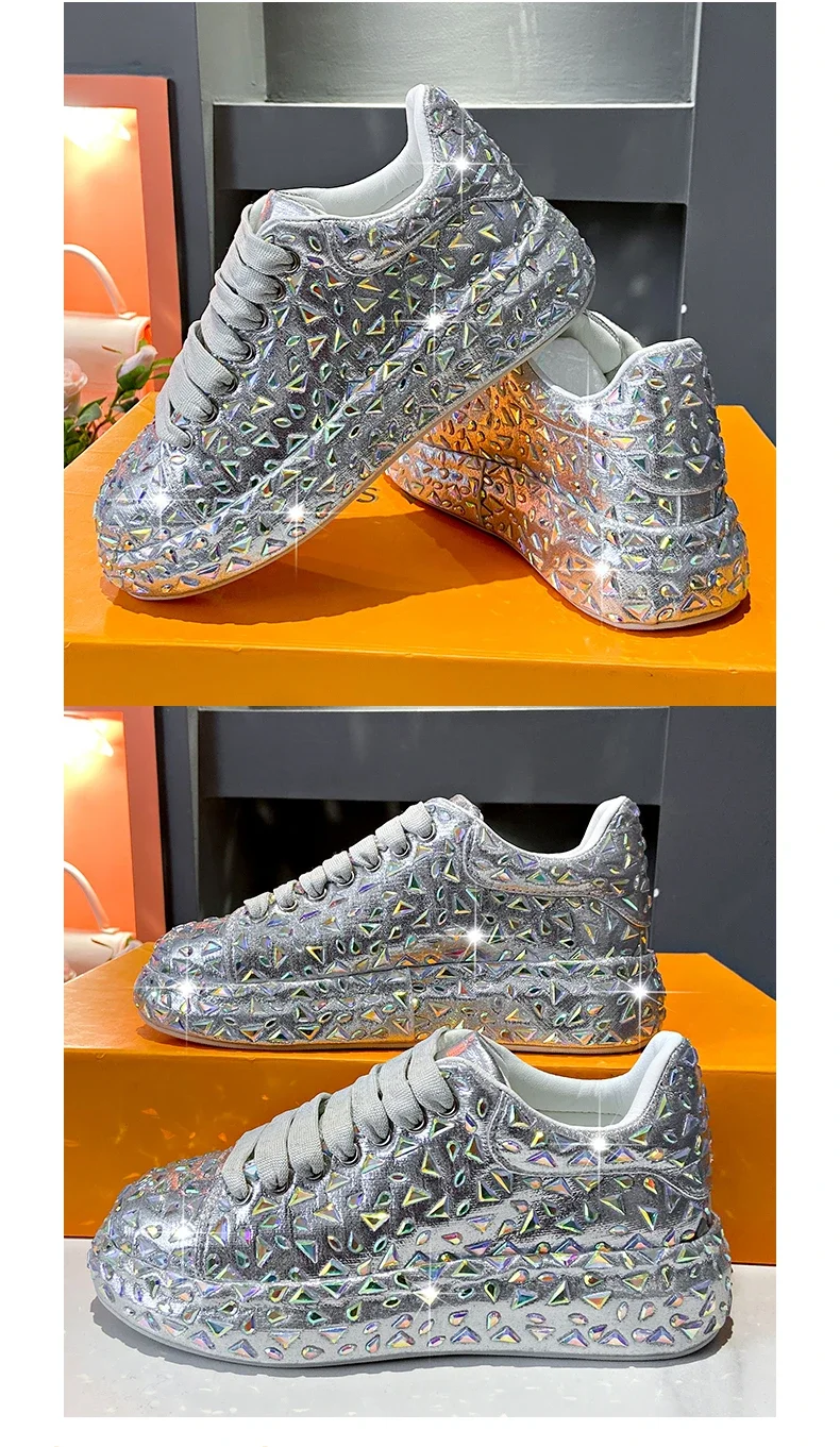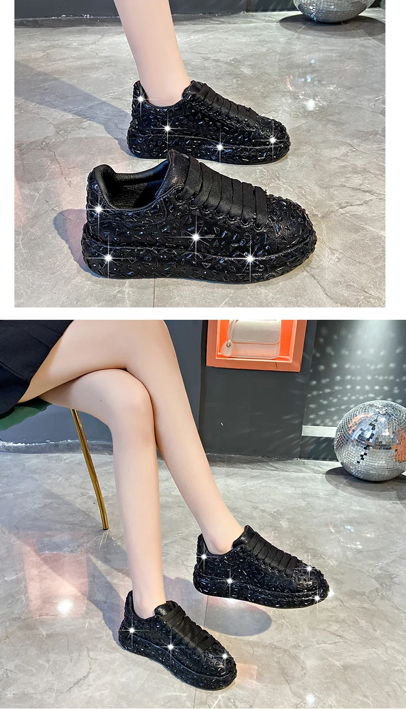Luxury designer Leather Women Shoes New Style Fashion Platform Shoes Ins Platforms Sneakers Tide Shine Bling Rhinestone Shoes
