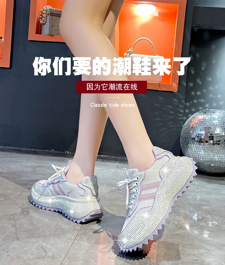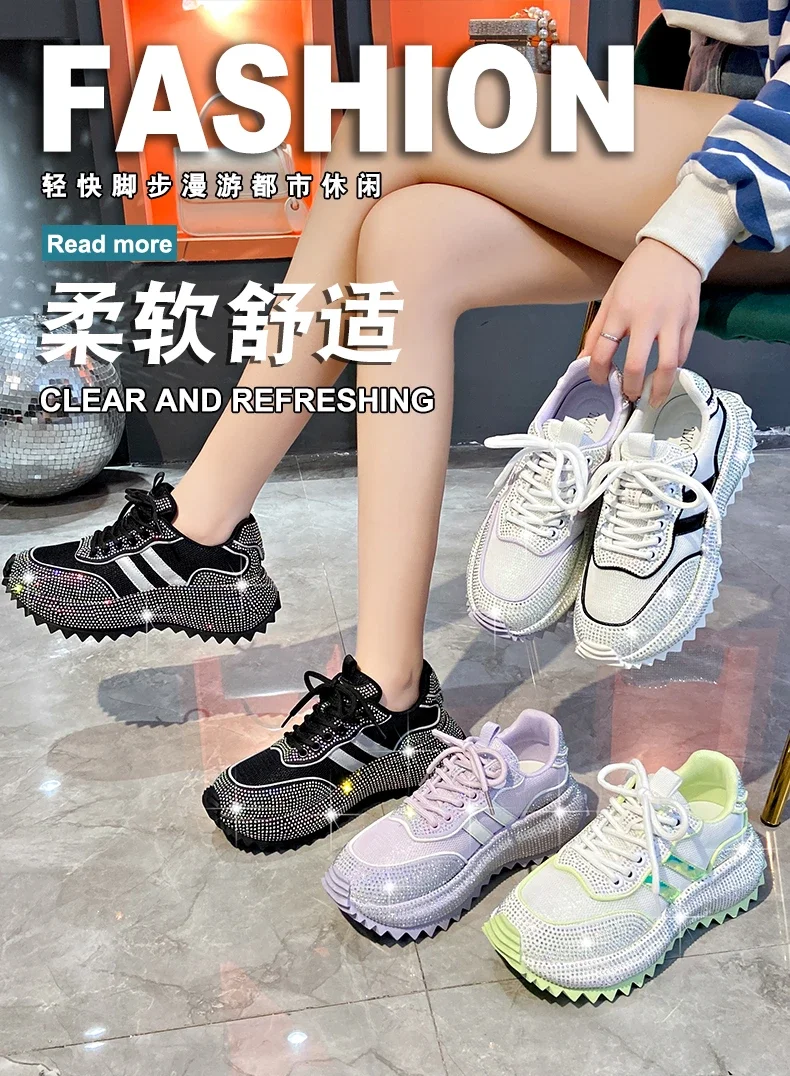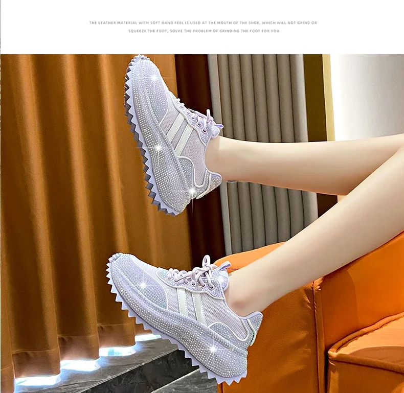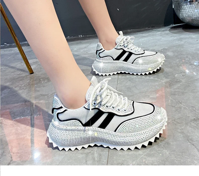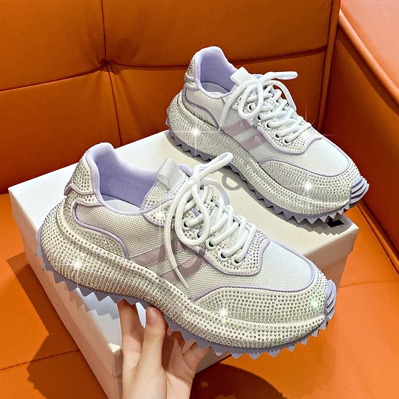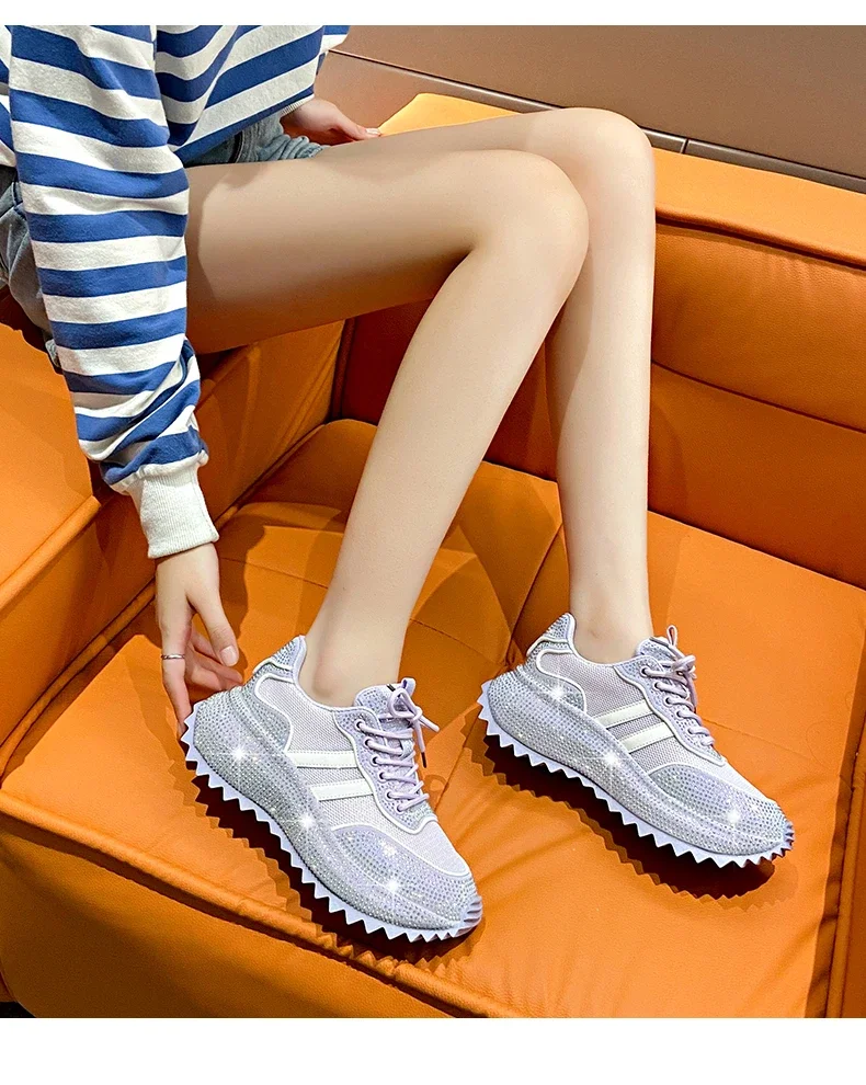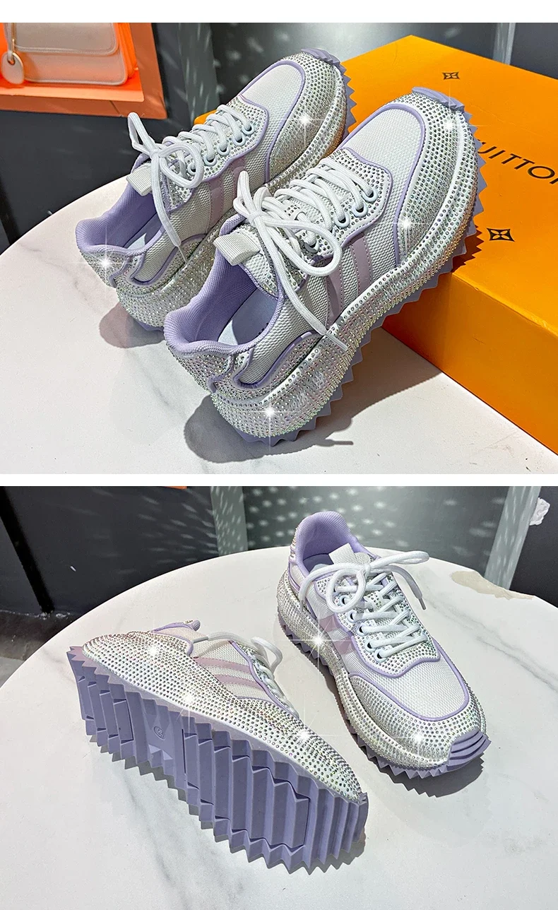 Luxury Flash Diamond Running Shoes Thick soled Spring Breathable Sports Casual Versatile Women’s Shoes Outerwear Sports Shoes