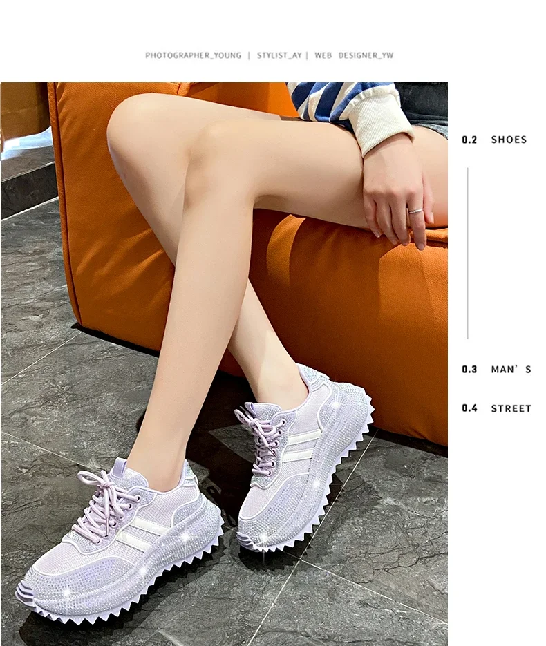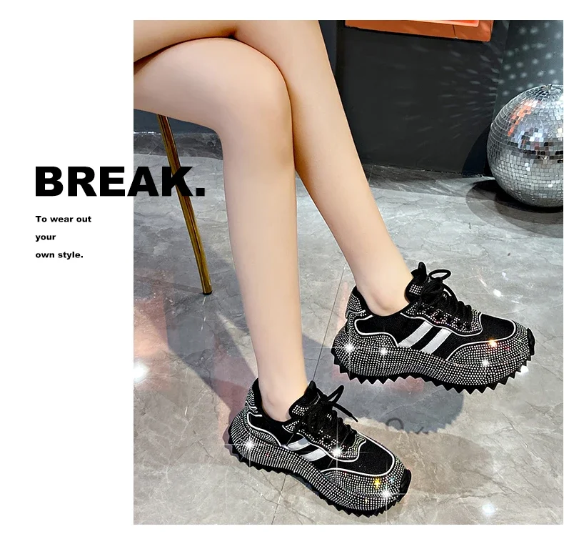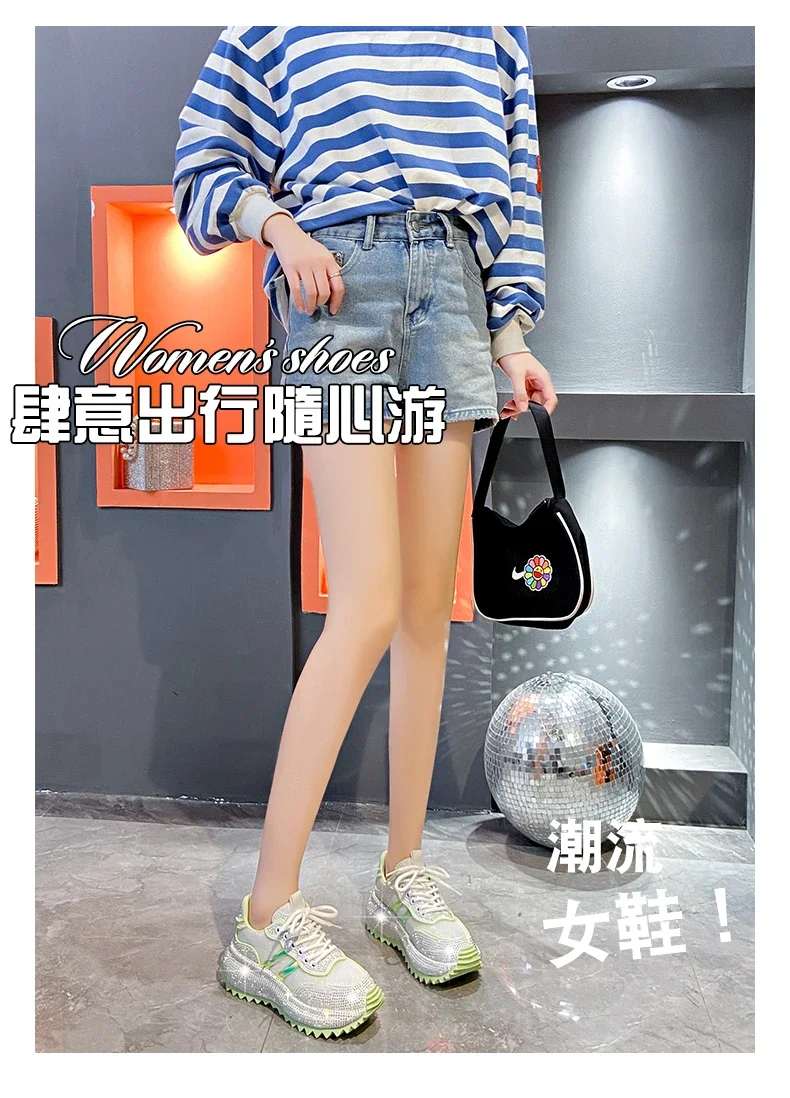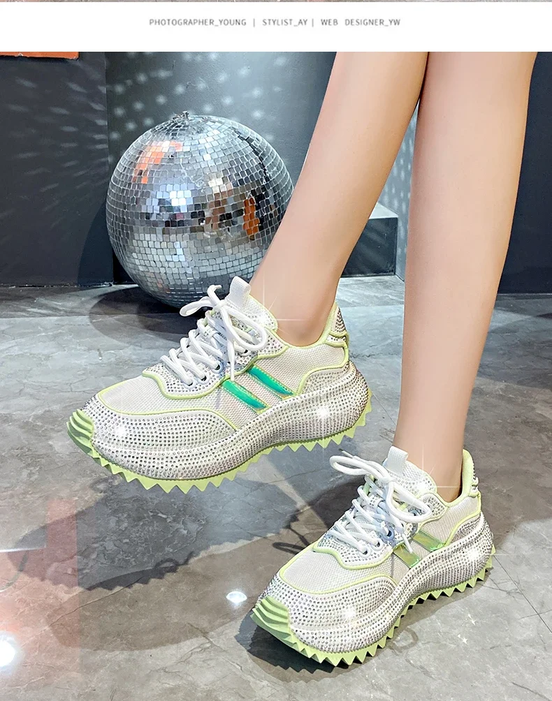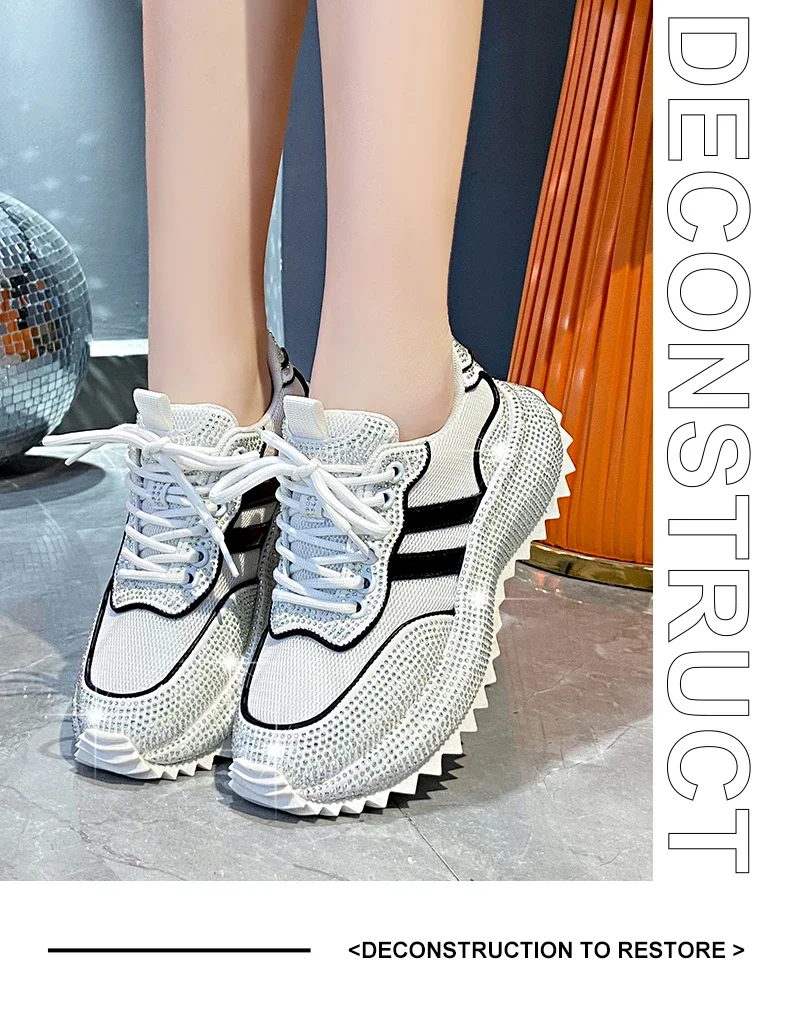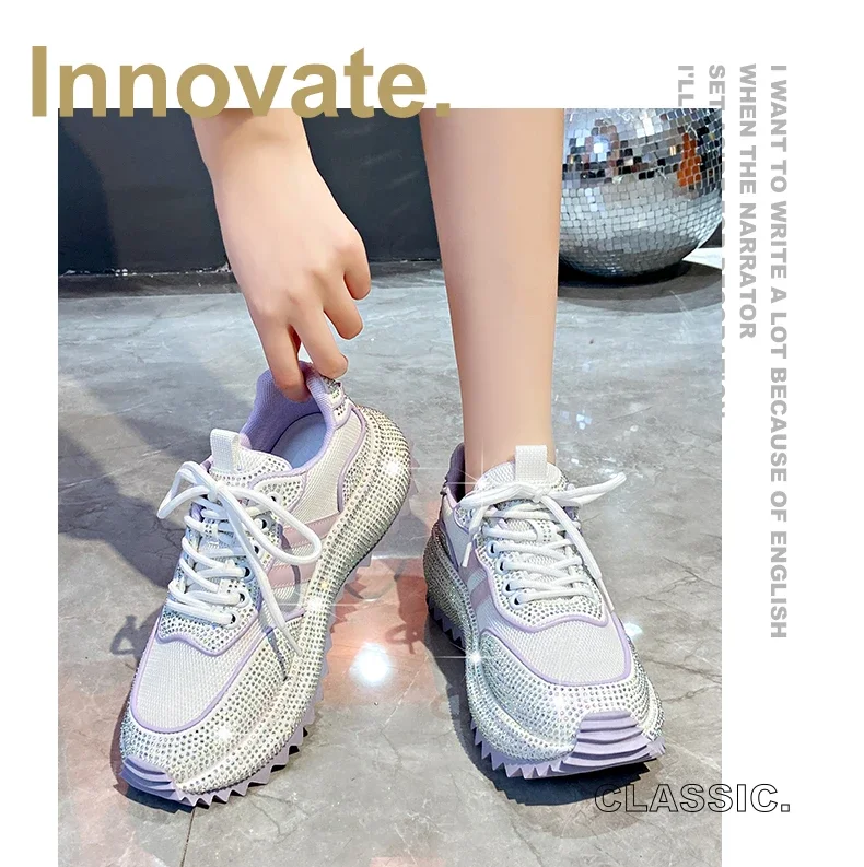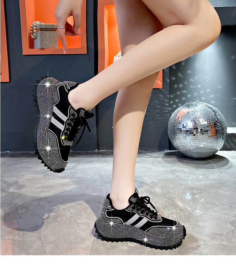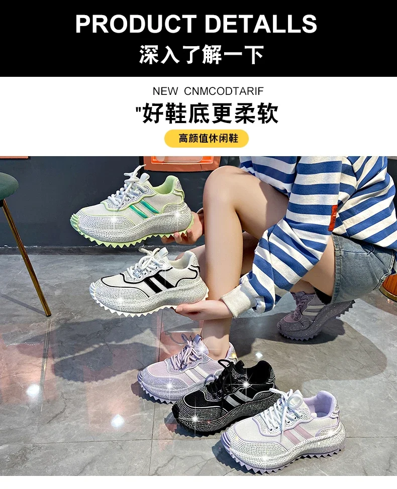 Luxury Flash Diamond Running Shoes Thick soled Spring Breathable Sports Casual Versatile Women’s Shoes Outerwear Sports Shoes