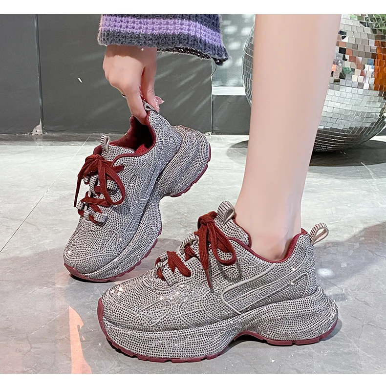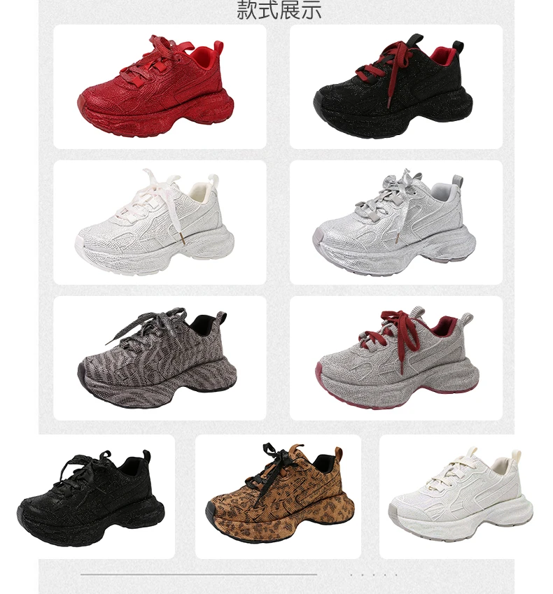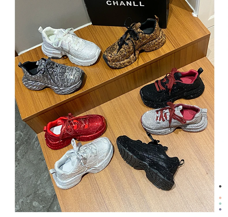 Luxury Full Diamond Thick soled Sneakers Designer Anti slip Running Shoes Women’s Fashion Tennis ShoesHigh Quality Casual Shoes