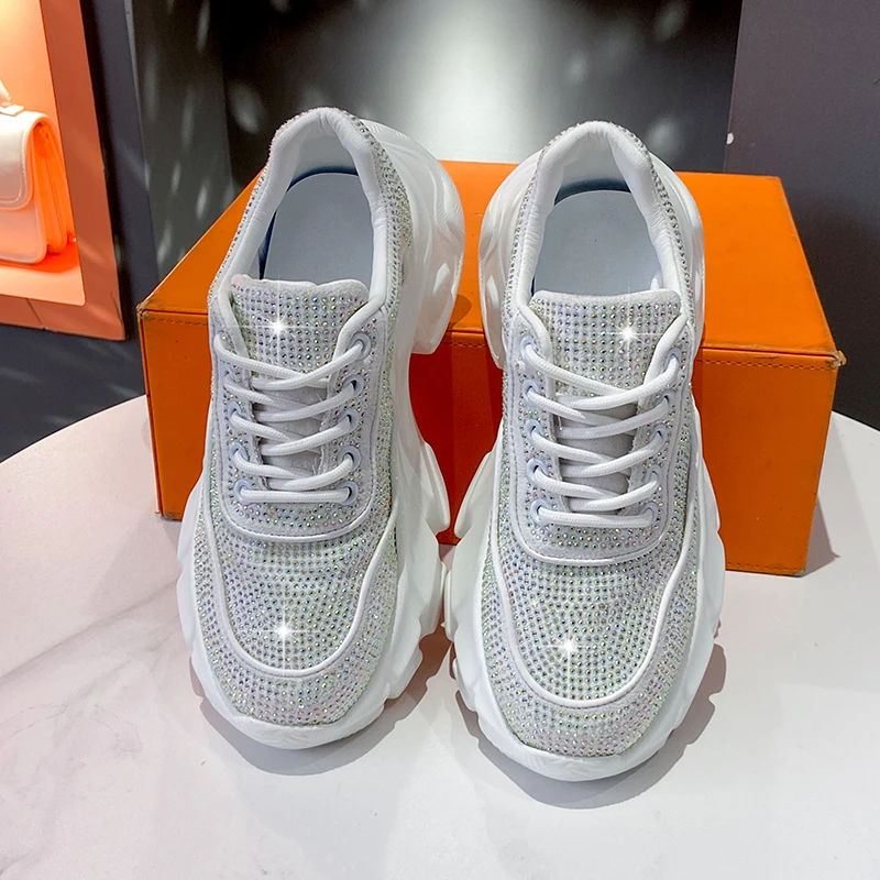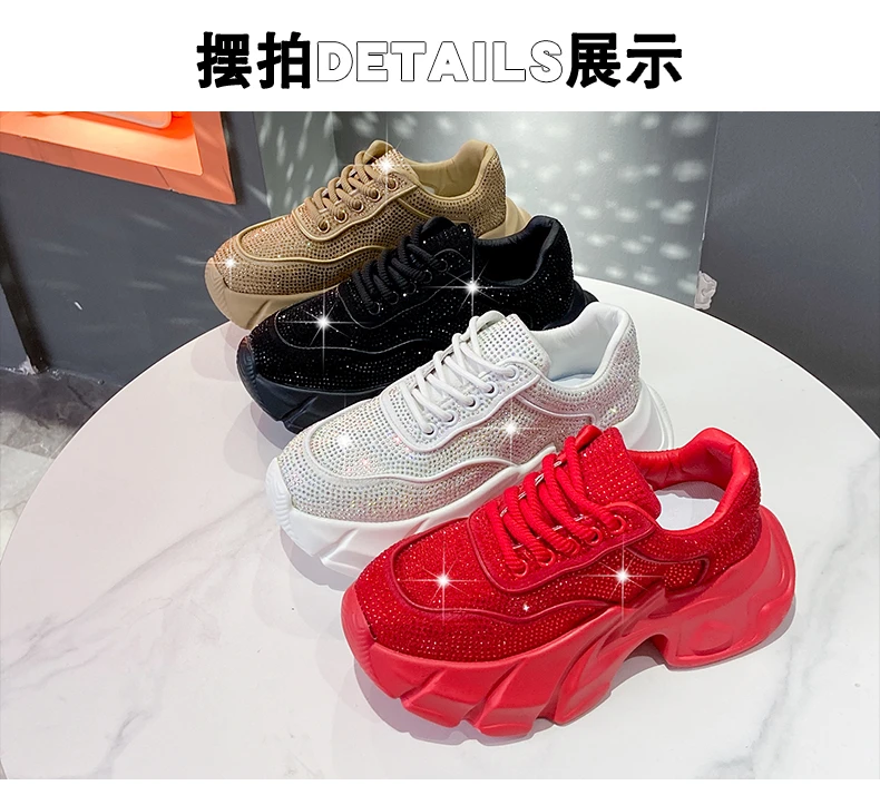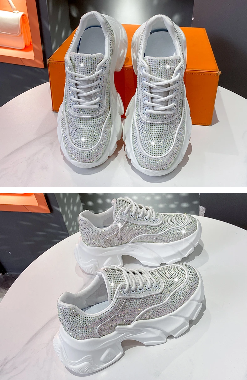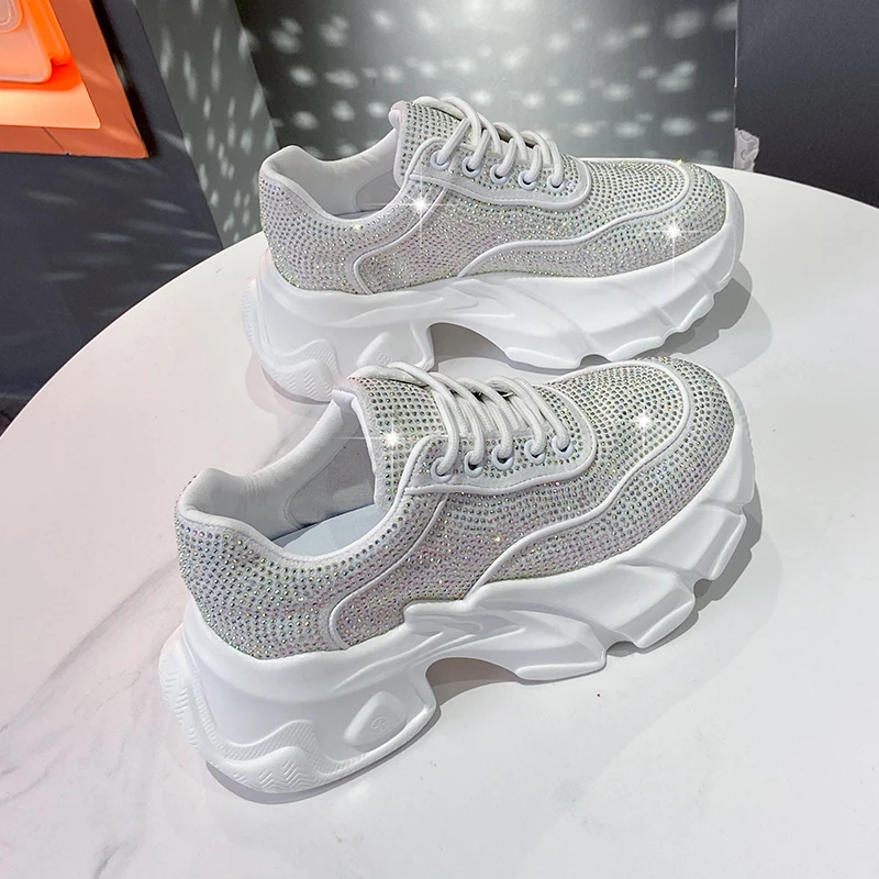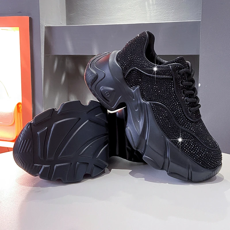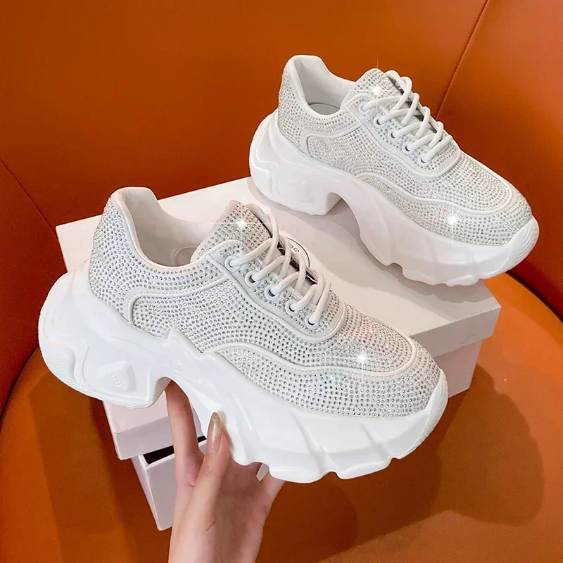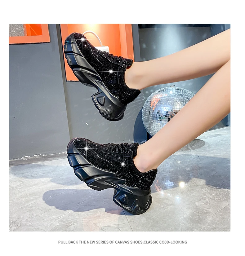 Luxury running shoes 2025 New Shiny Rhinestone Women’s Sneakers Shoes Autumn Fashion Thick Sole Sports Shoes Zapatos De Mujer
