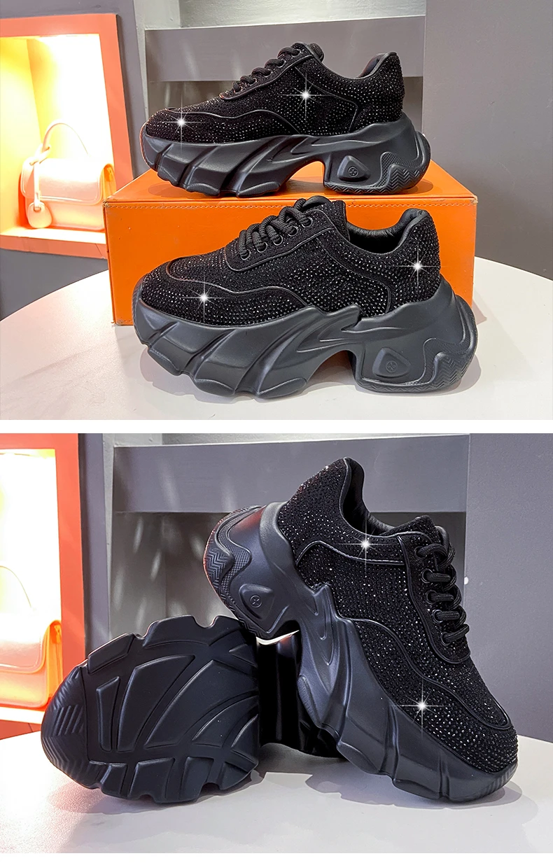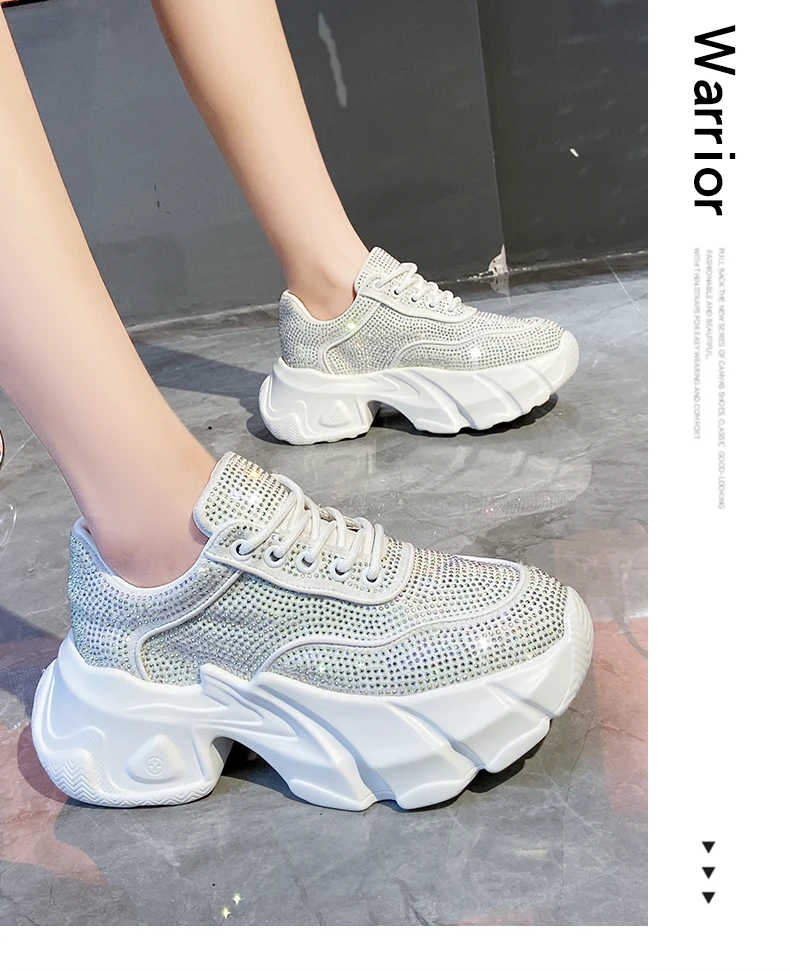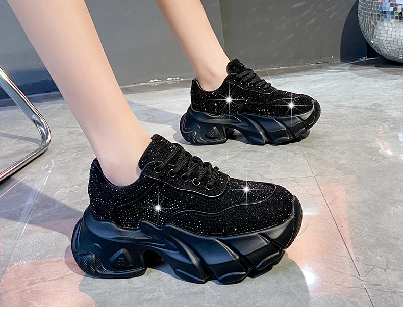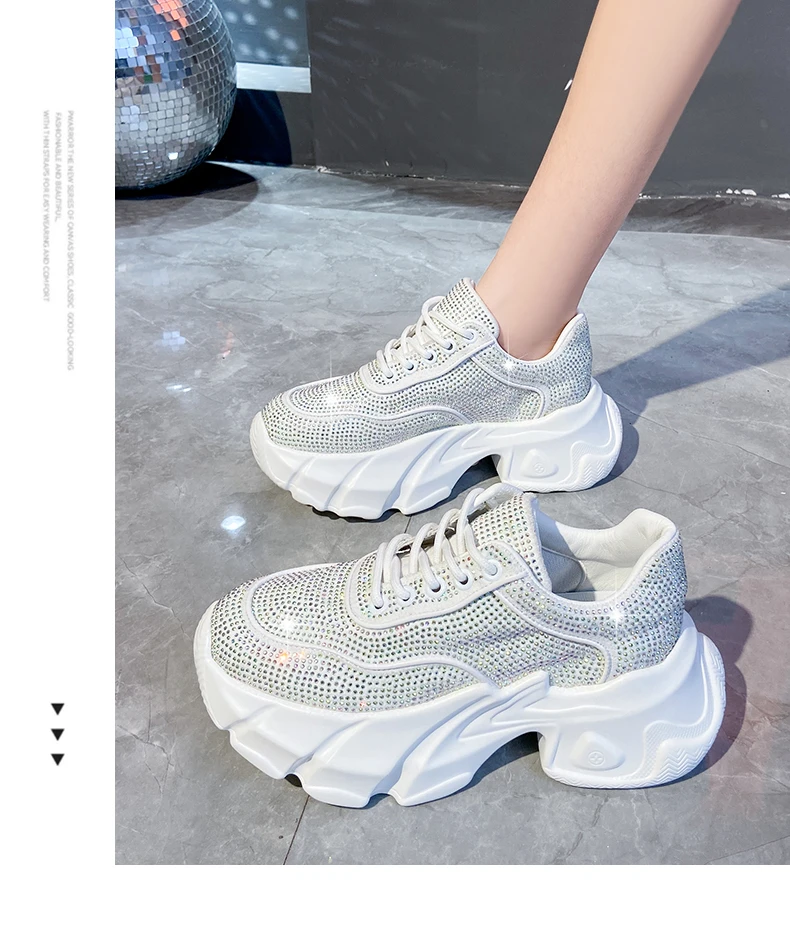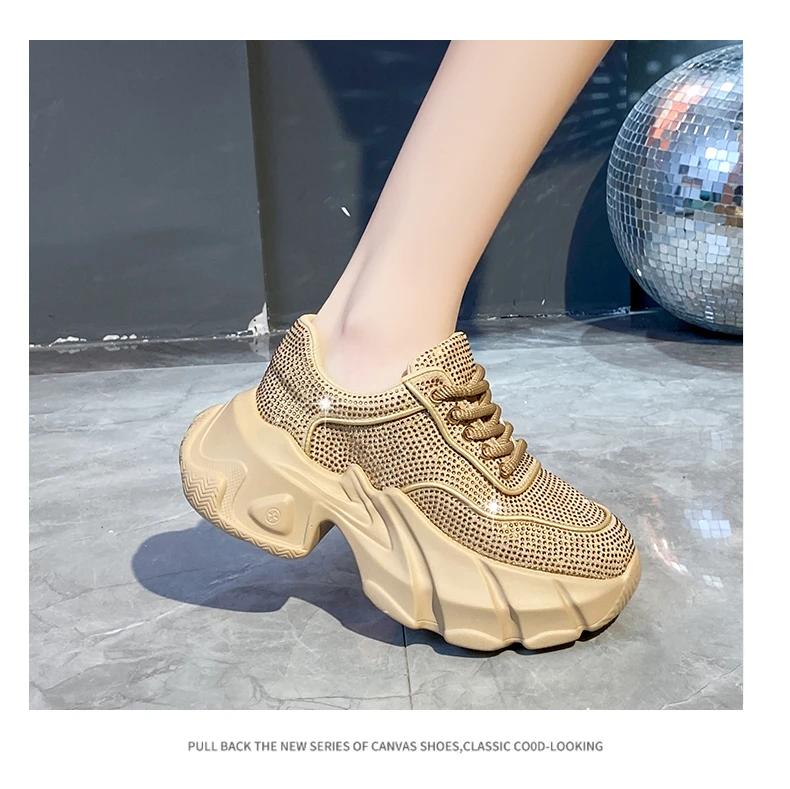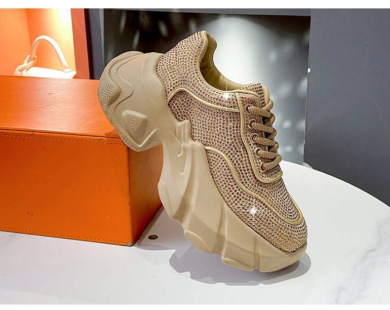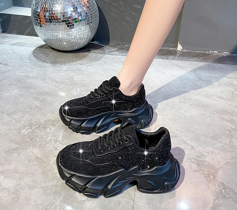 Luxury running shoes 2025 New Shiny Rhinestone Women’s Sneakers Shoes Autumn Fashion Thick Sole Sports Shoes Zapatos De Mujer