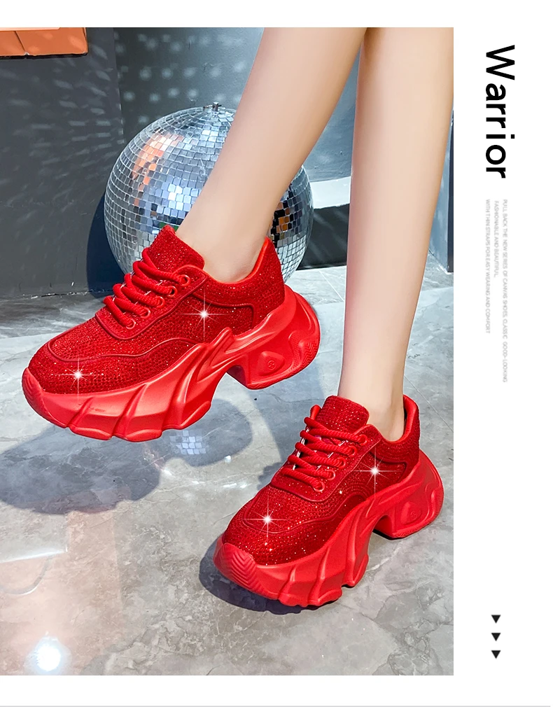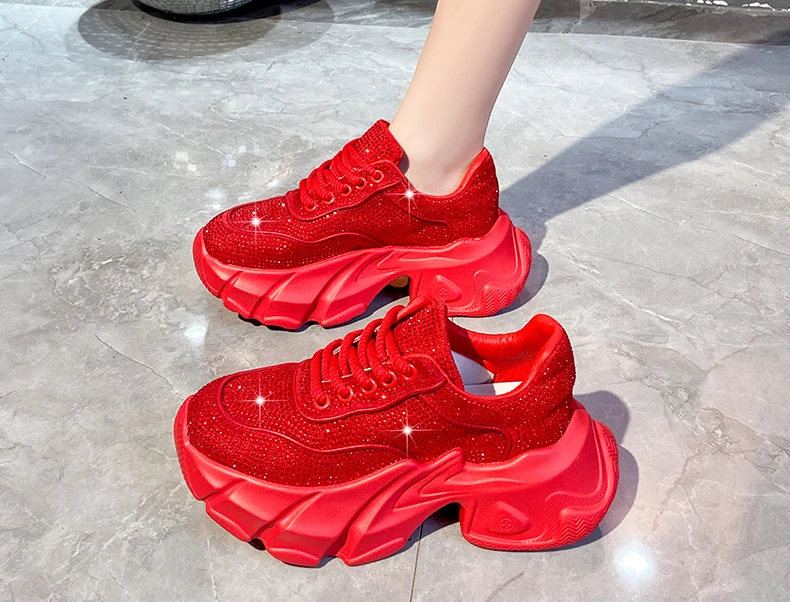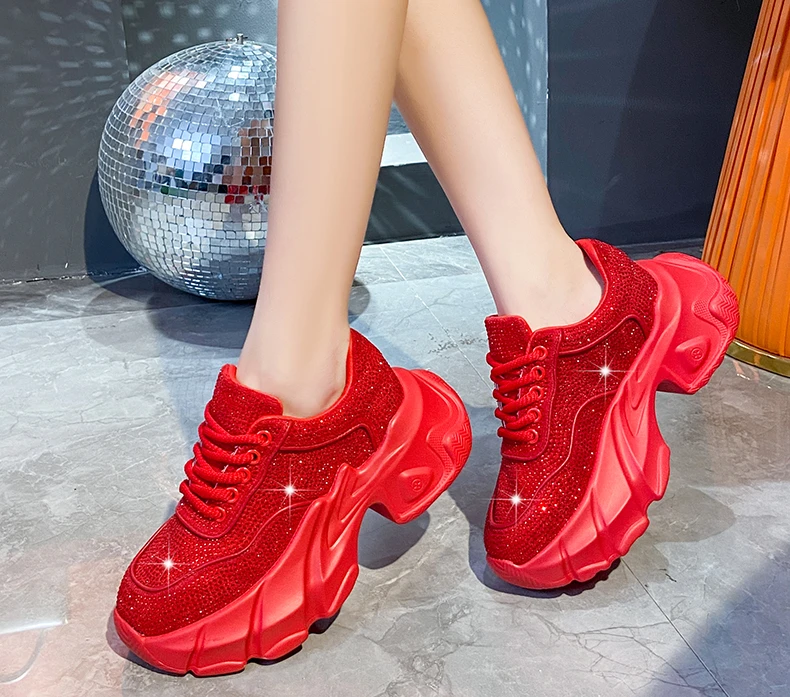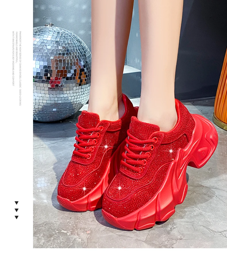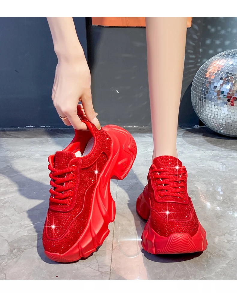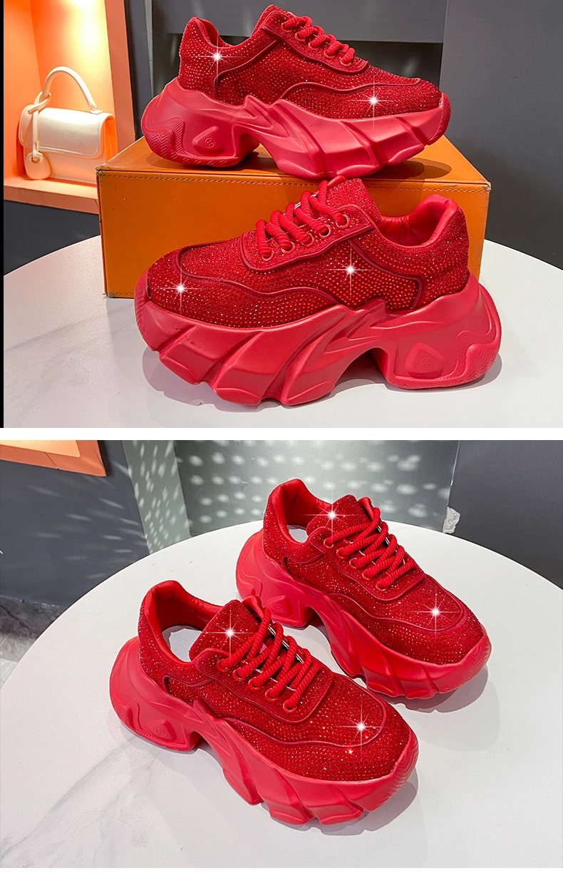 Luxury running shoes 2025 New Shiny Rhinestone Women’s Sneakers Shoes Autumn Fashion Thick Sole Sports Shoes Zapatos De Mujer