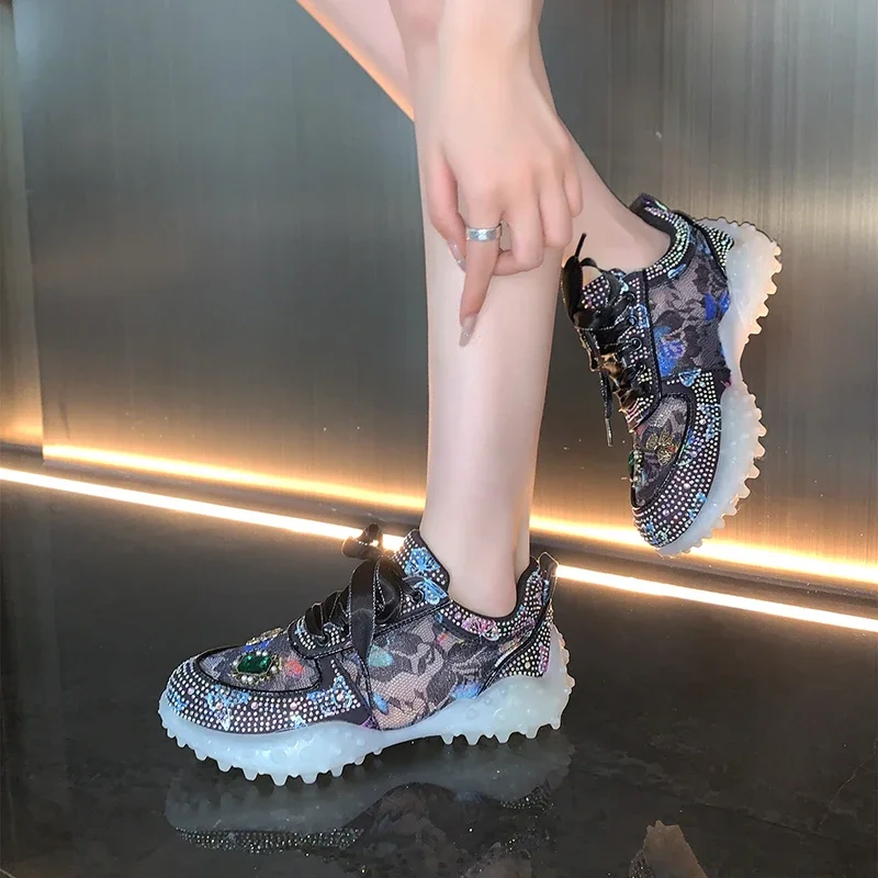 Luxury Women fluorescence Sneakers Thick Bottom Comfortable Ladies Outdoors Casual Walking Trainers Couple Vulcanized Shoes
