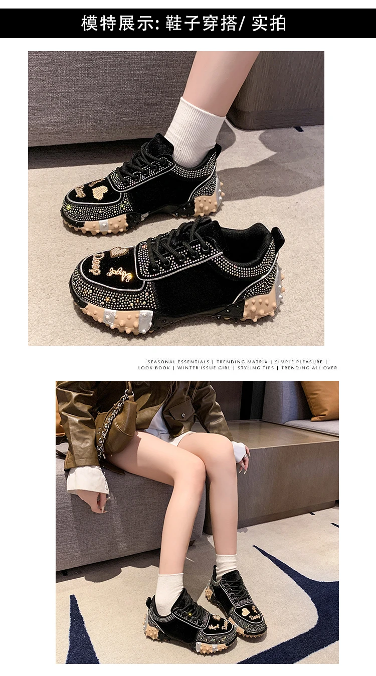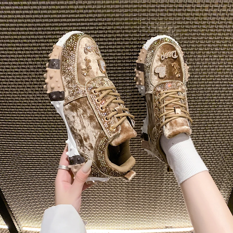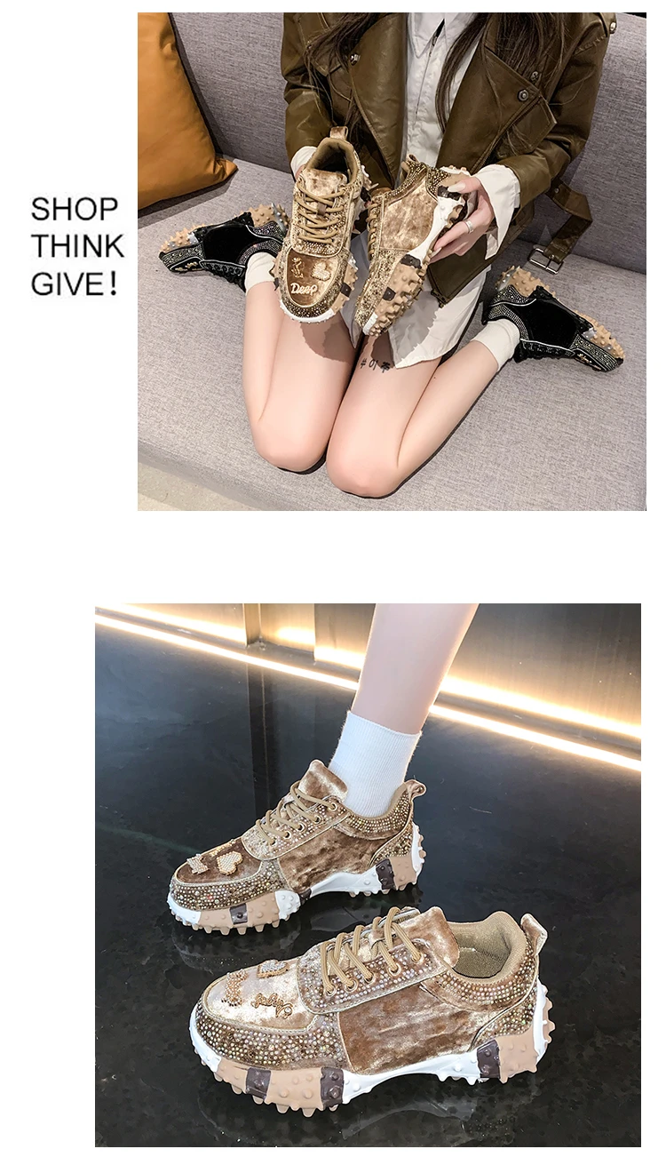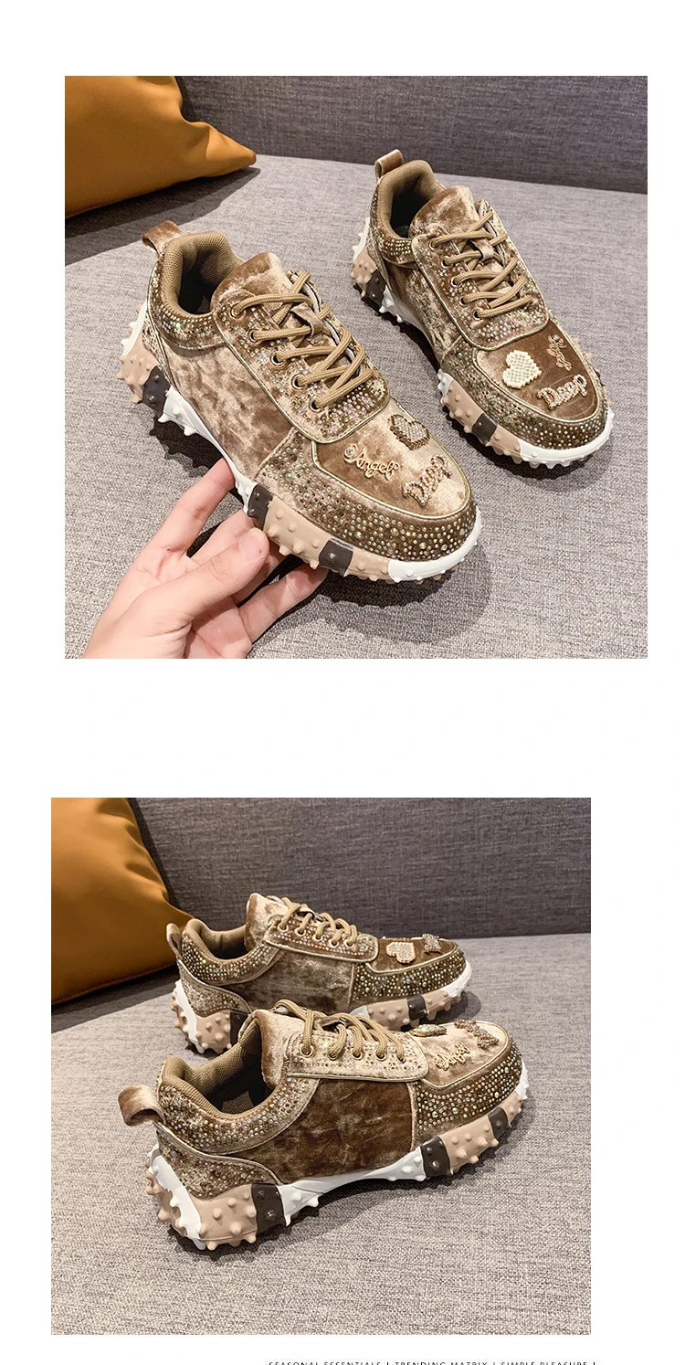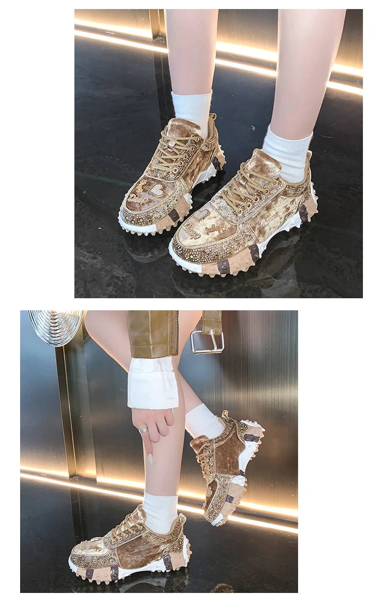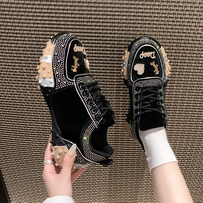Luxury Women’s Water Diamond Sports Shoes Diamond Breathable Designer Casual Thick soled Vulcanized Shoes Anti slip Tennis Shoes
