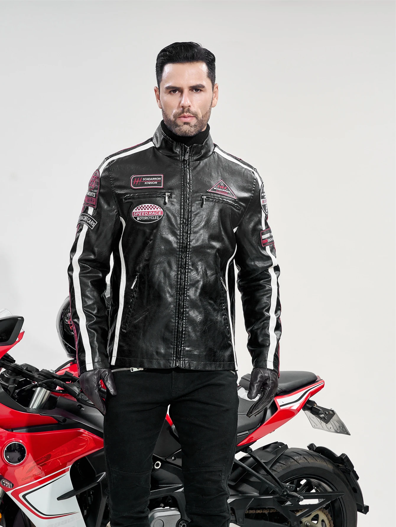 Men’s motorcycle racing suit PU leather label color jacket