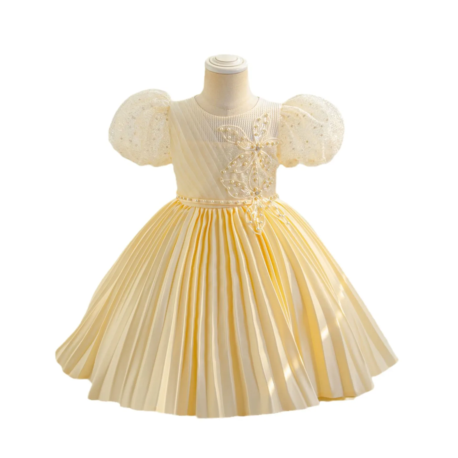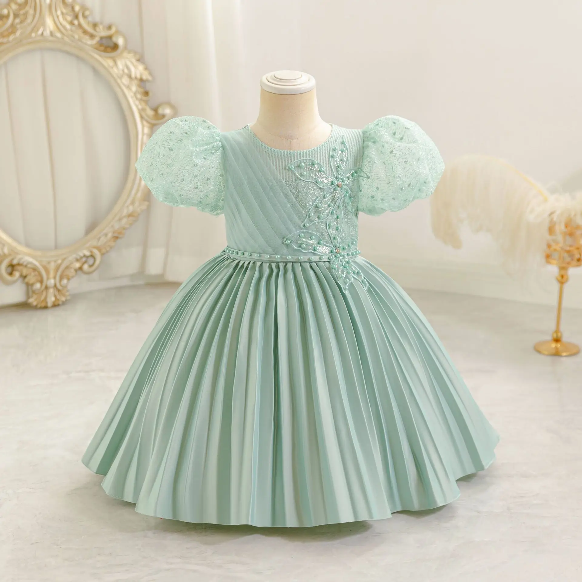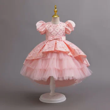 New Flower Baby Girl Princess Dress Kids 1st Birthday Party Dresses Children Clothes Pink Champagne Ball Gown 6M-4 Years