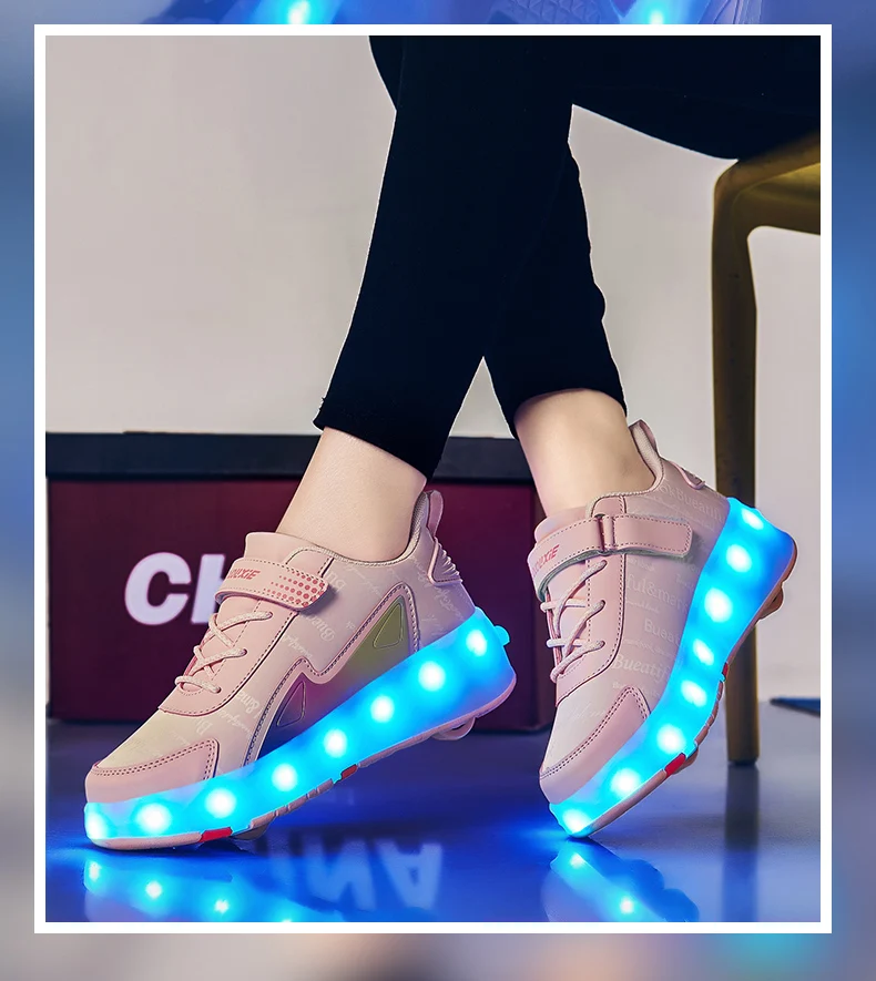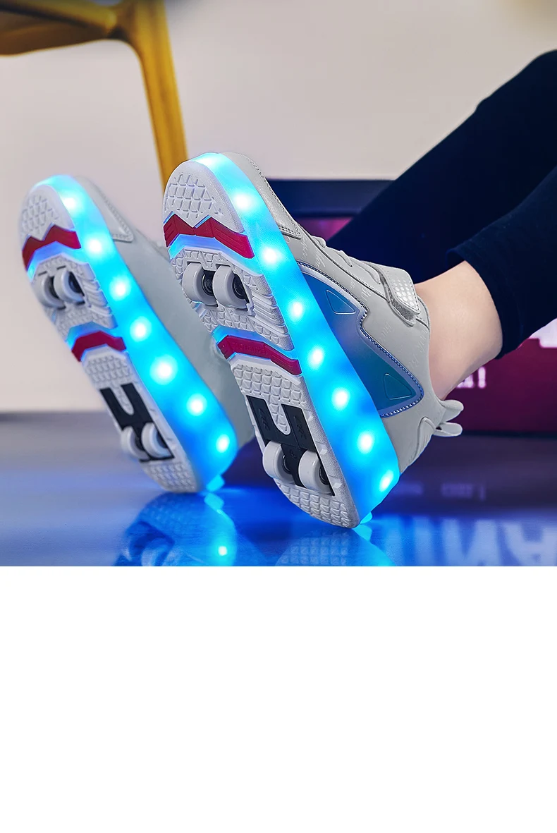 New LED Lights Kids Roller Skate Shoes Parkour Running With 4 Wheels Detachable Boys Girls Casual Deformation Skating Shoes Gift