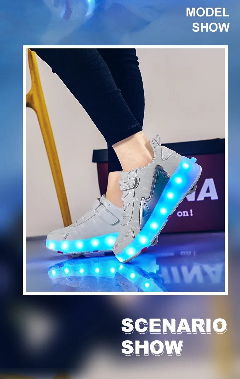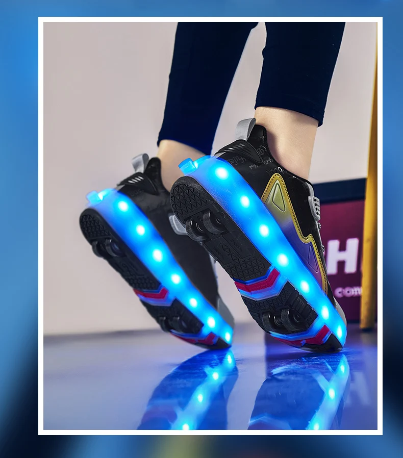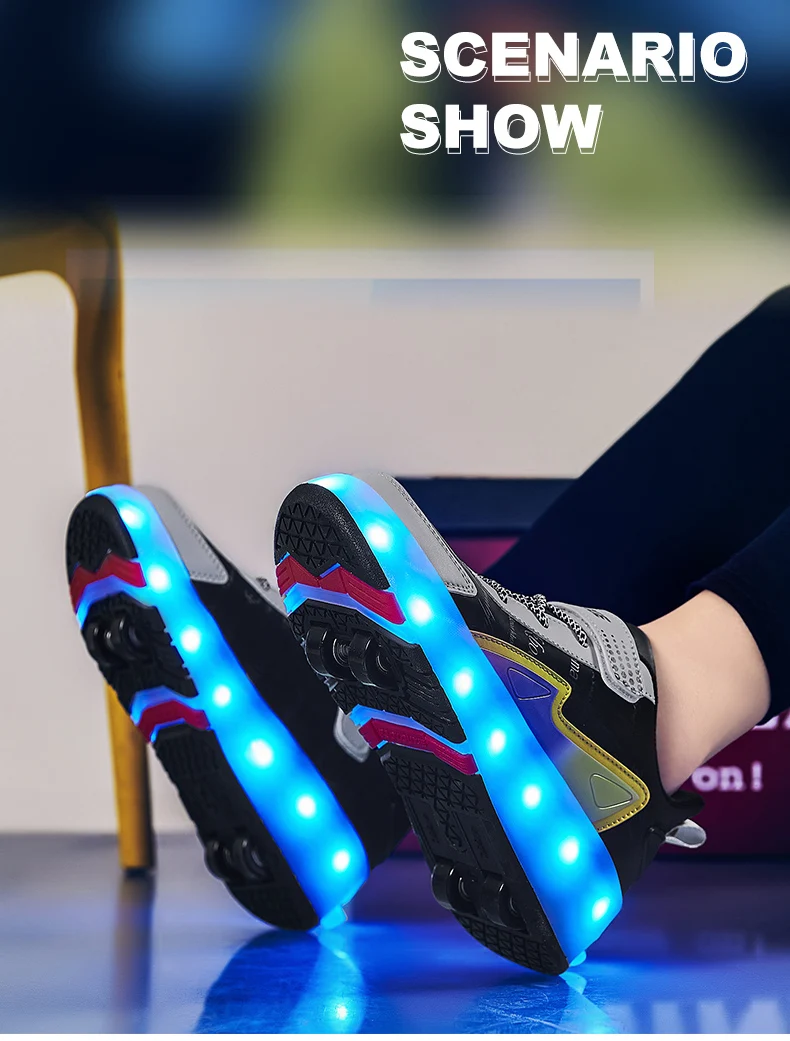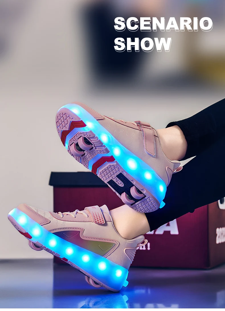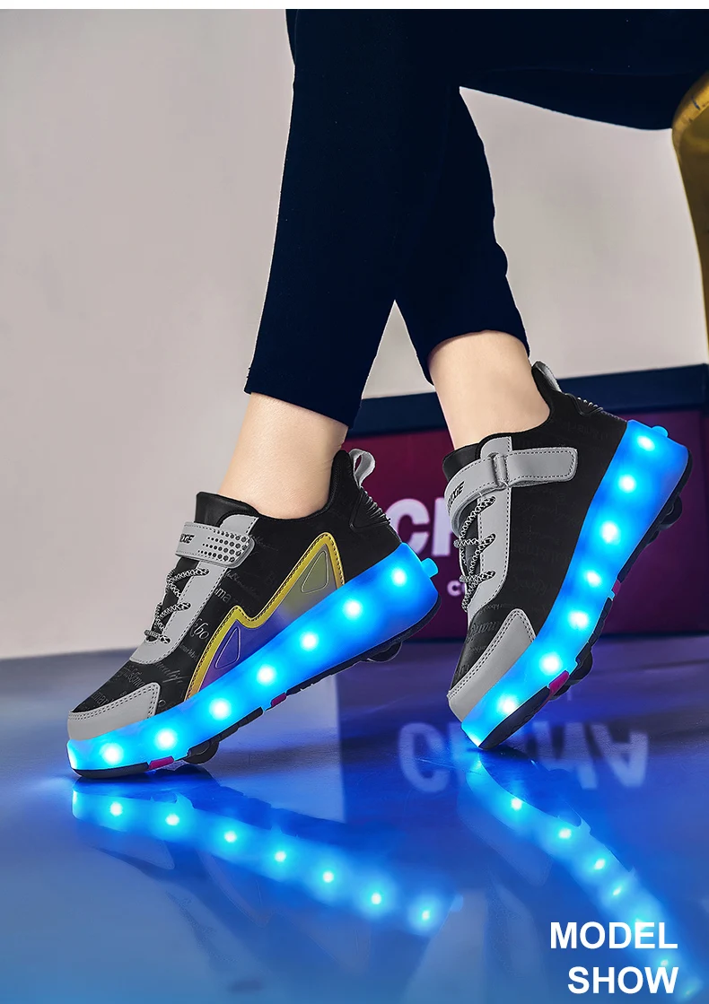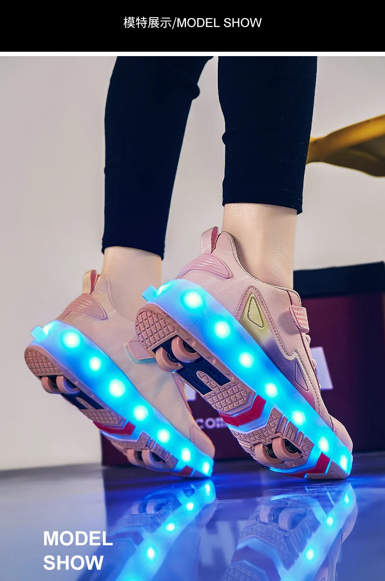 New LED Lights Kids Roller Skate Shoes Parkour Running With 4 Wheels Detachable Boys Girls Casual Deformation Skating Shoes Gift