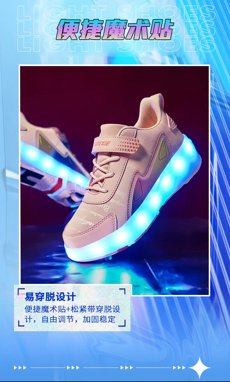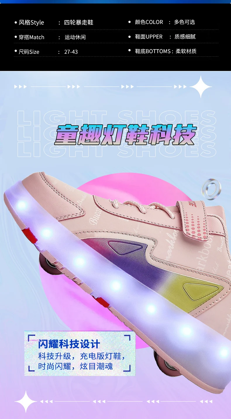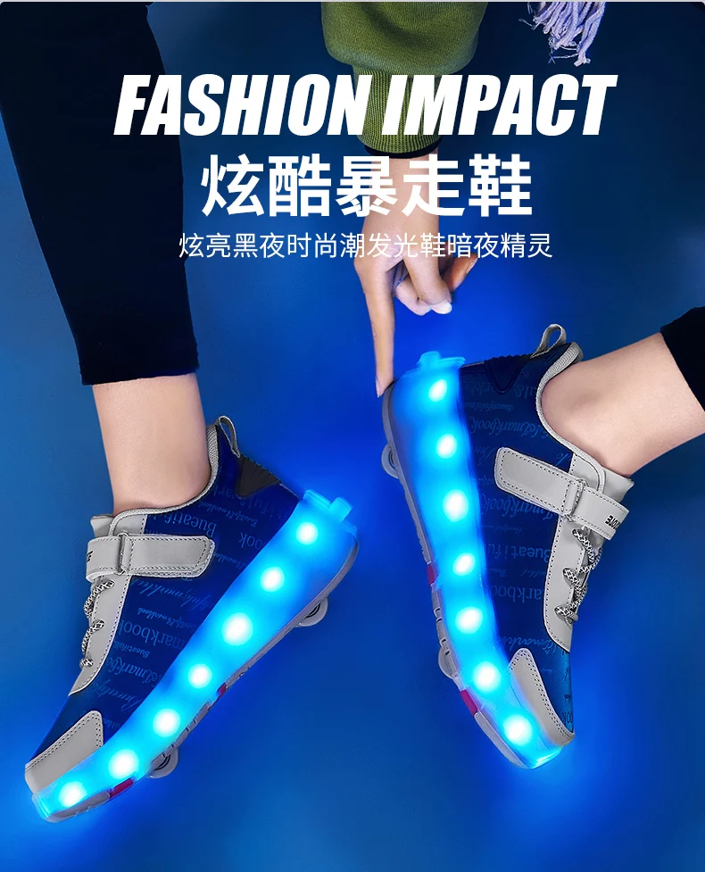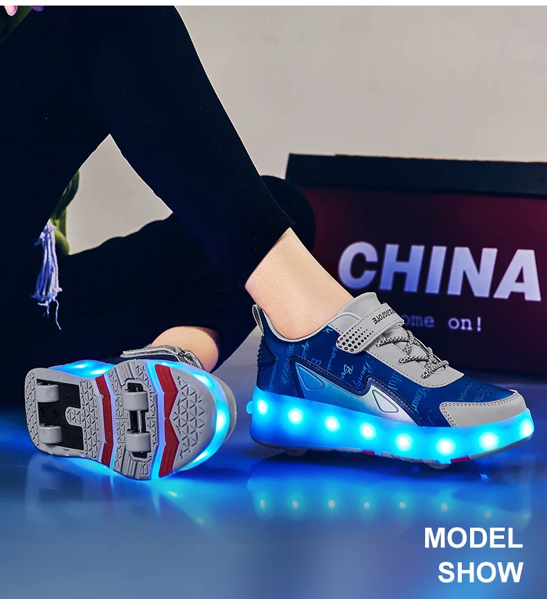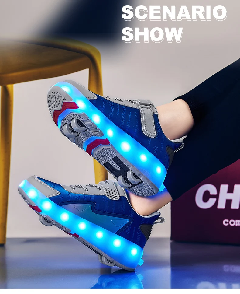 New LED Lights Kids Roller Skate Shoes Parkour Running With 4 Wheels Detachable Boys Girls Casual Deformation Skating Shoes Gift