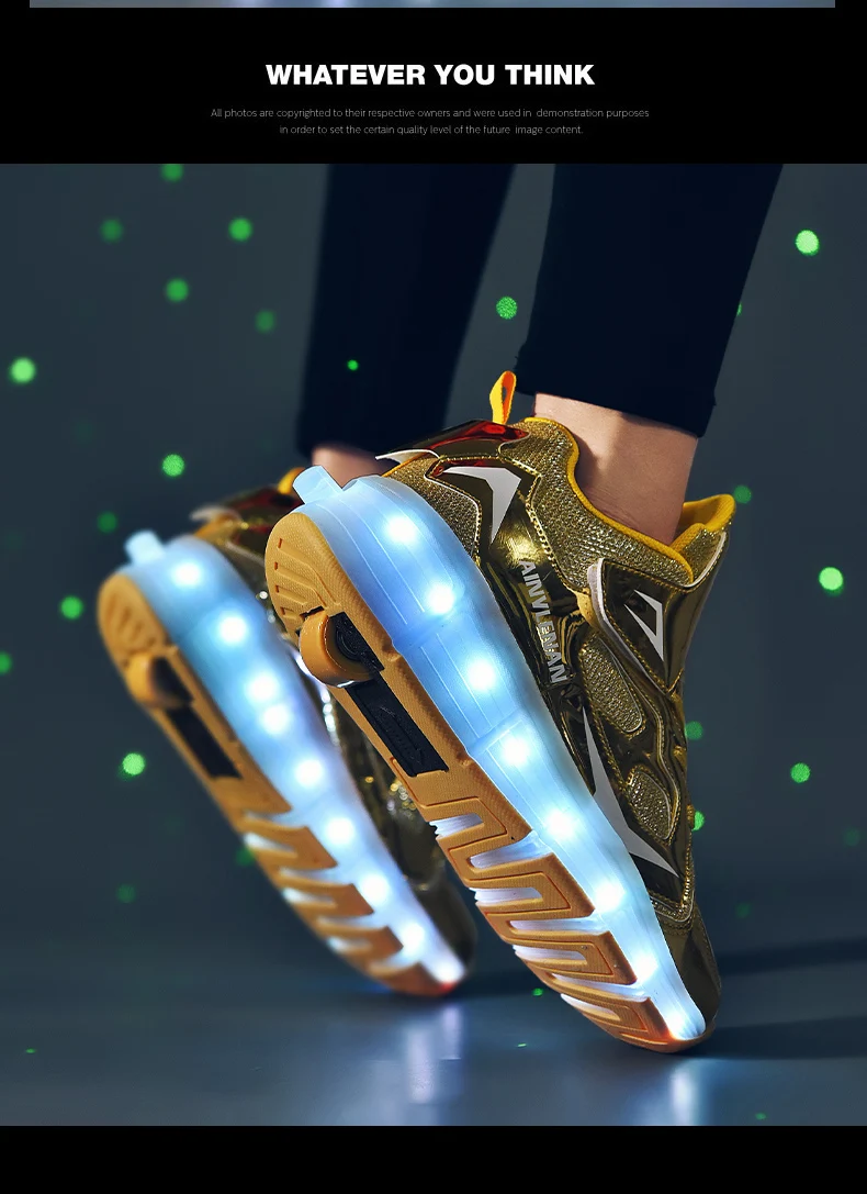 New LED Lights Kids Roller Skate Shoes Running Casual With 2 Wheels Detachable Boys Girls Parkour Deformation Skating Shoes Gift