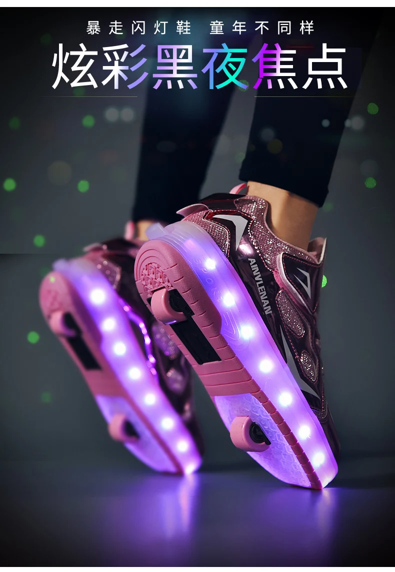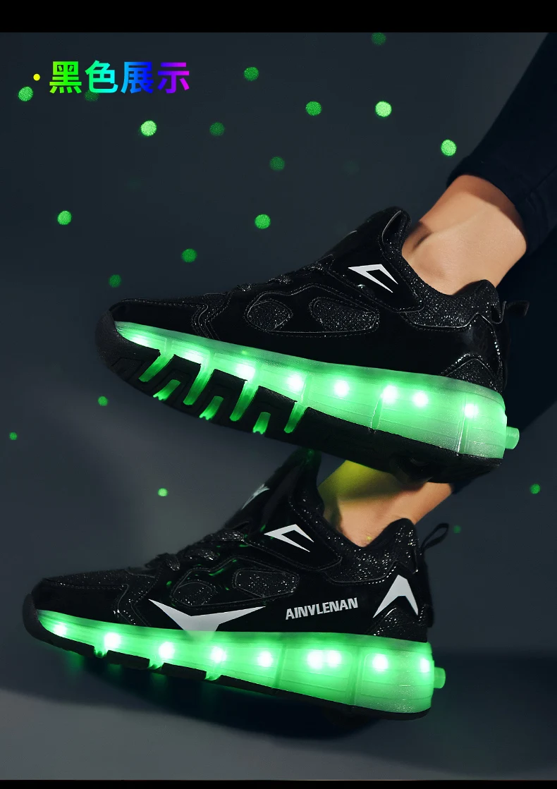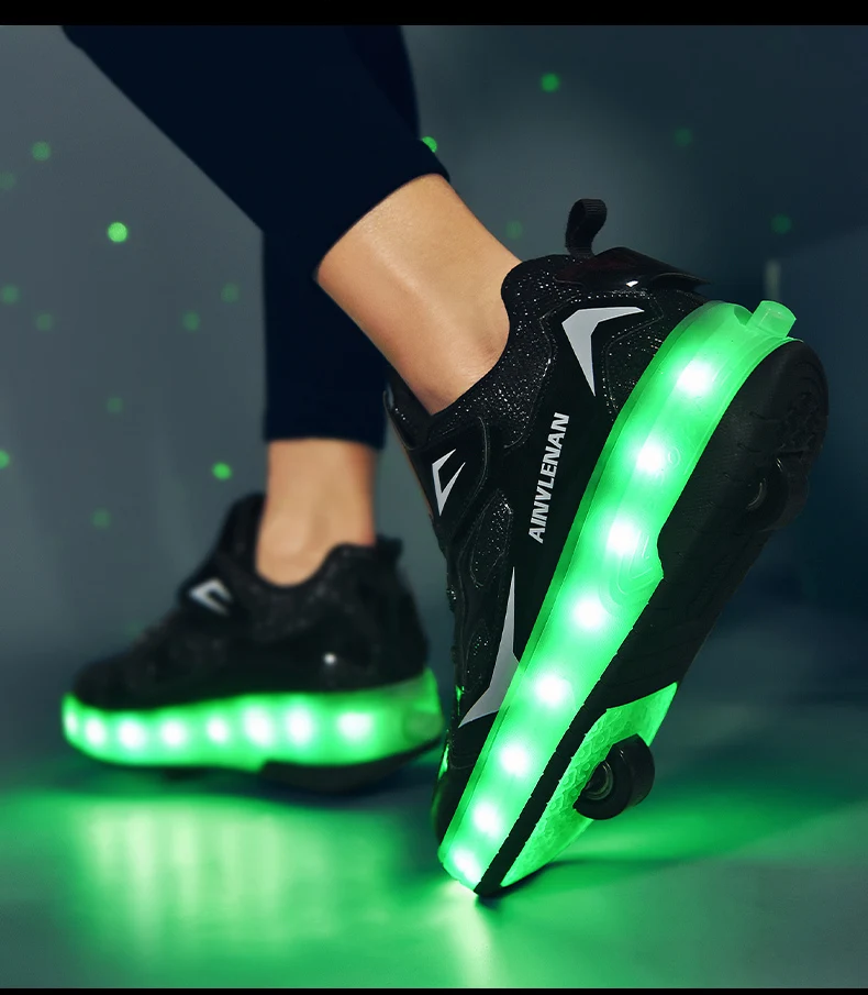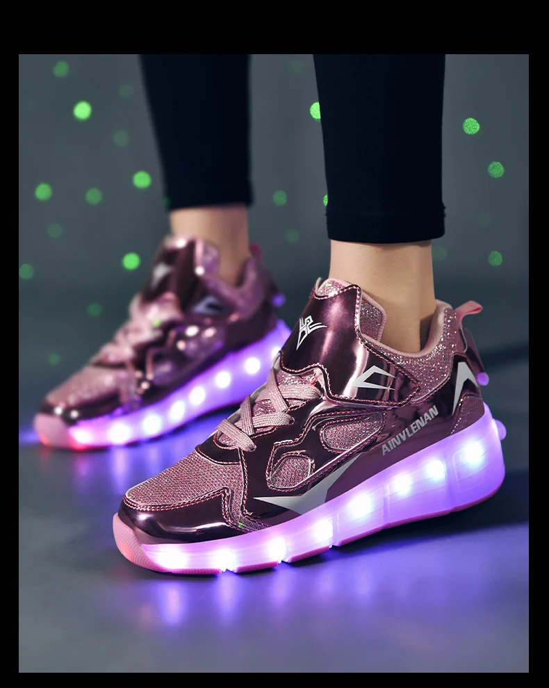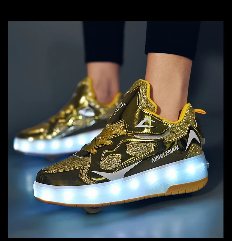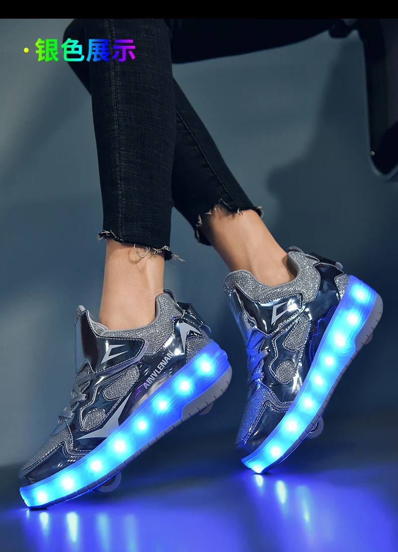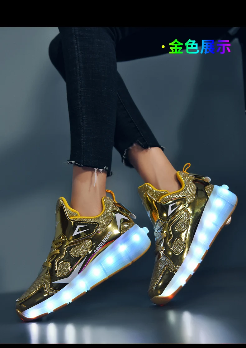 New LED Lights Kids Roller Skate Shoes Running Casual With 2 Wheels Detachable Boys Girls Parkour Deformation Skating Shoes Gift
