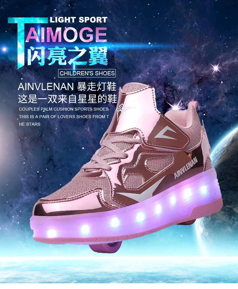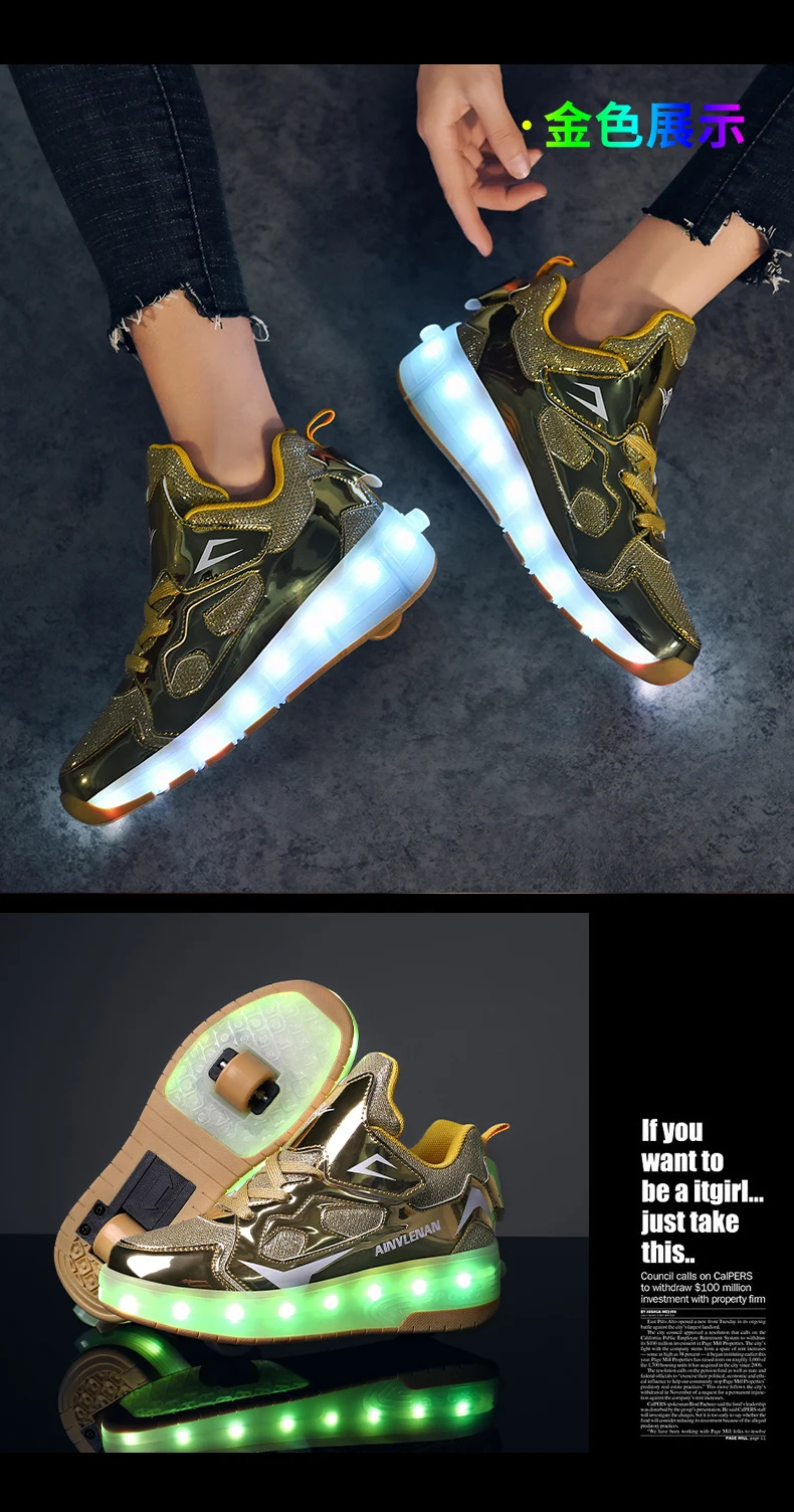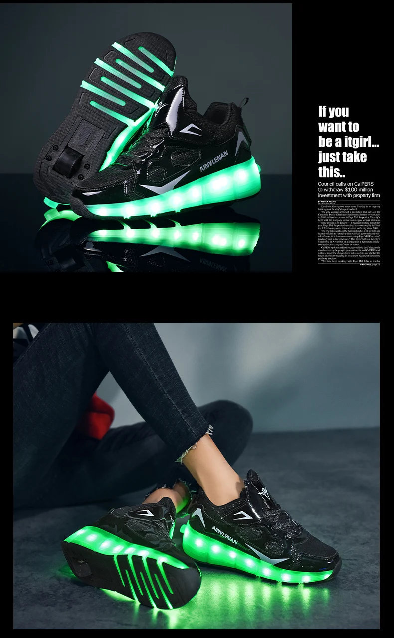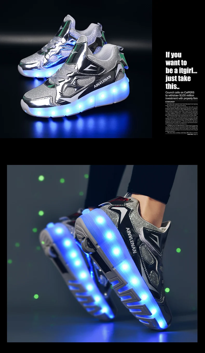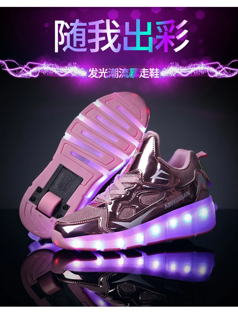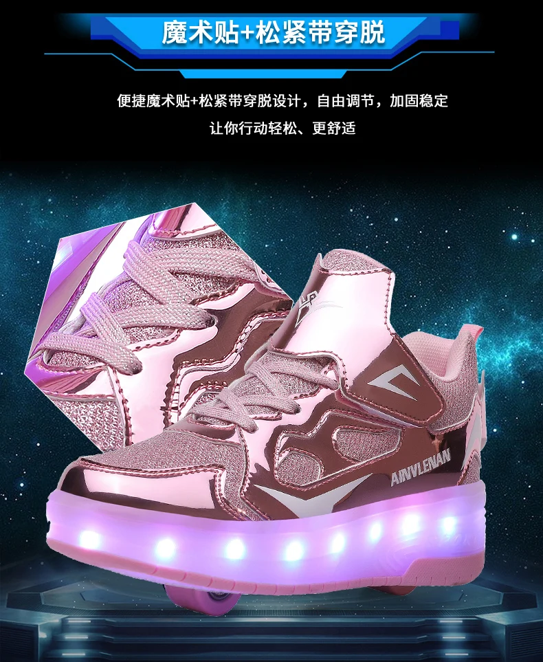 New LED Lights Kids Roller Skate Shoes Running Casual With 2 Wheels Detachable Boys Girls Parkour Deformation Skating Shoes Gift