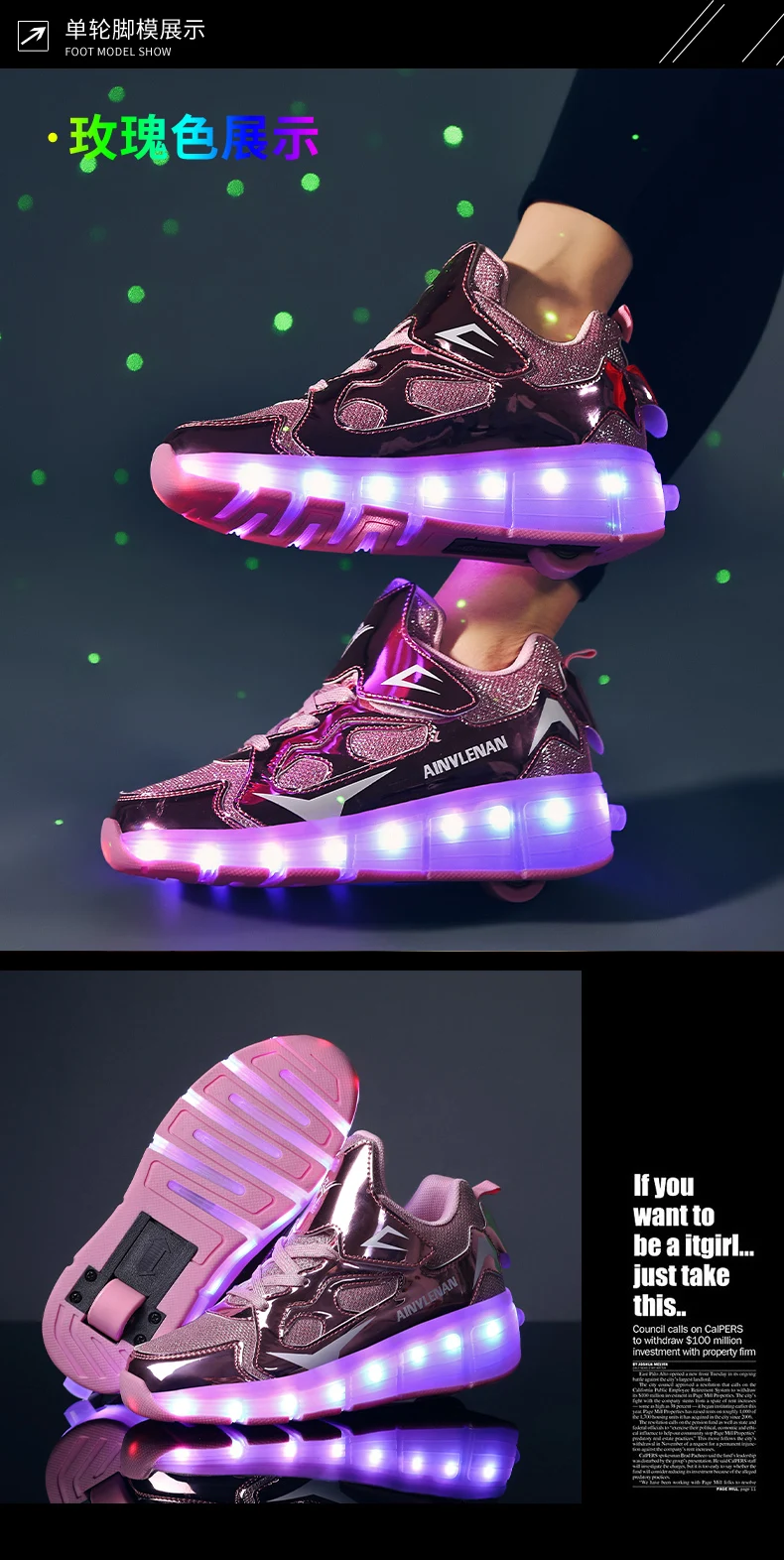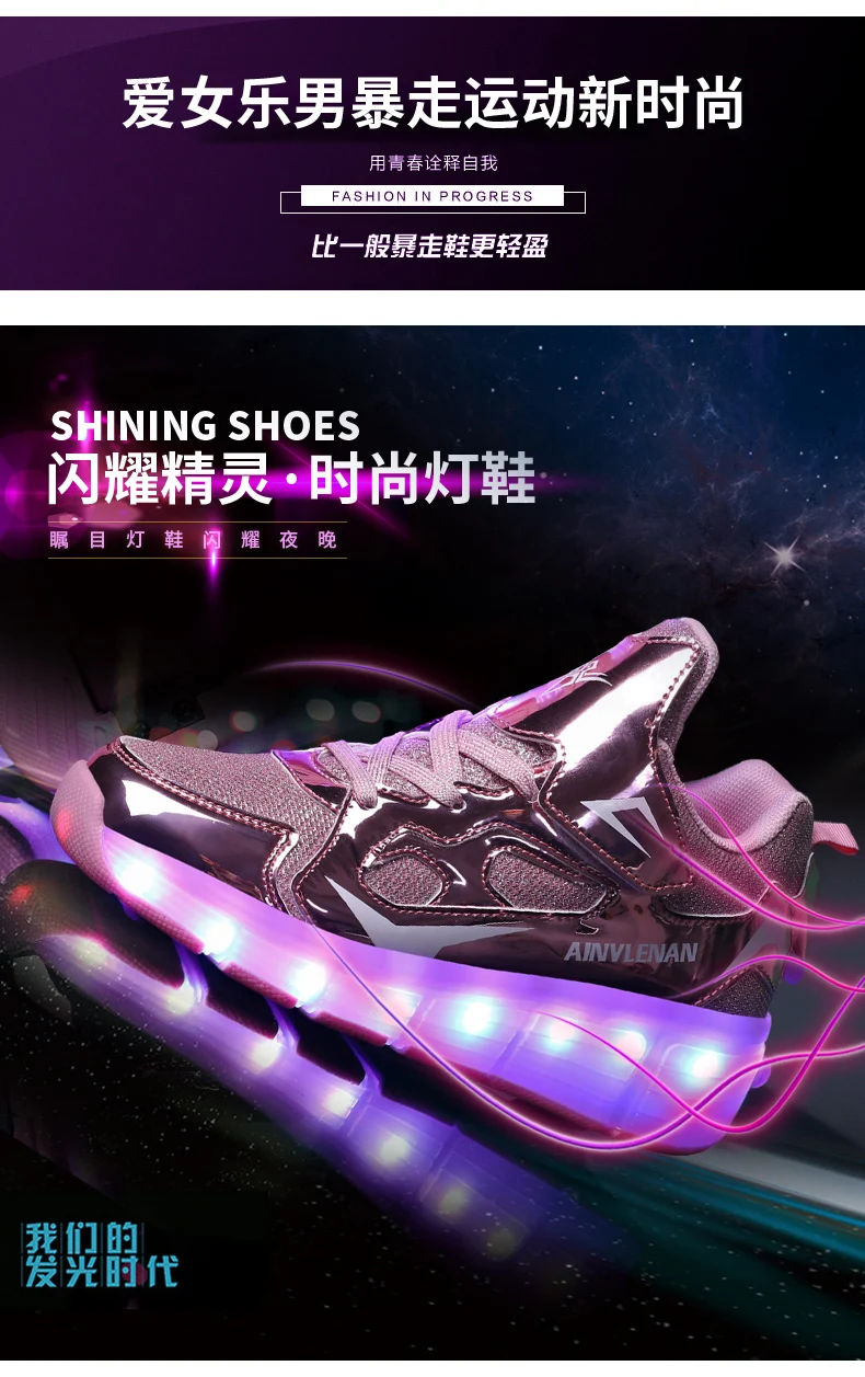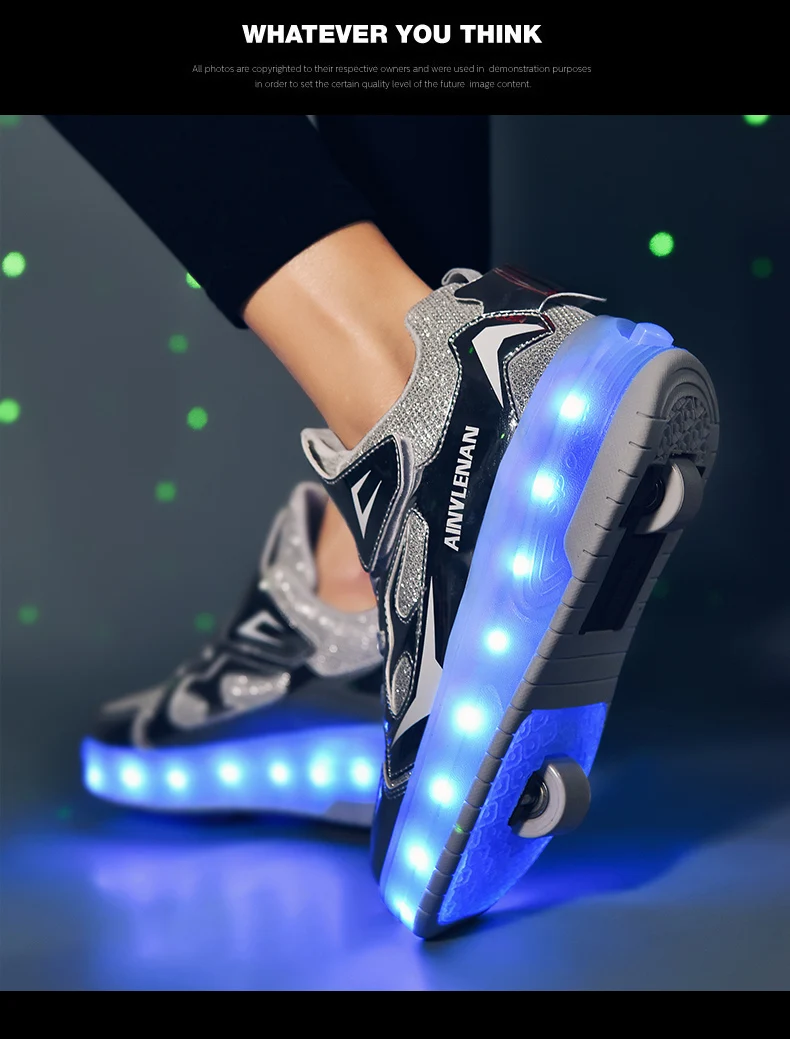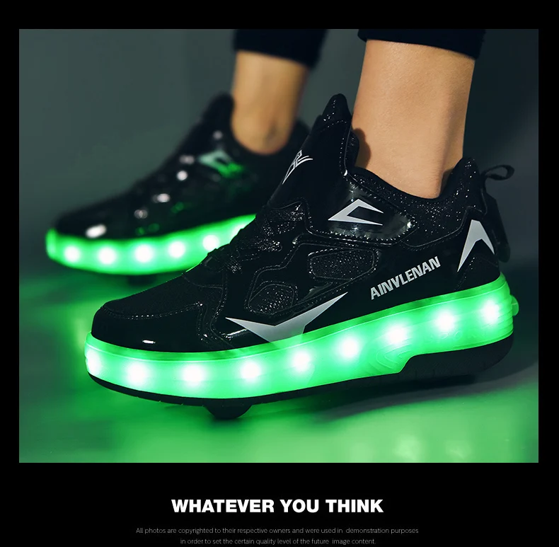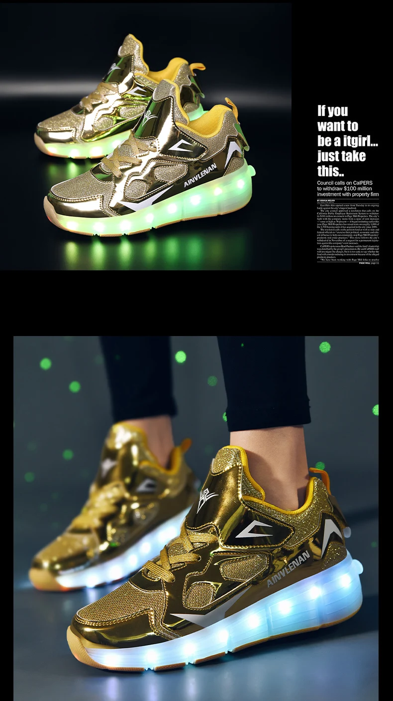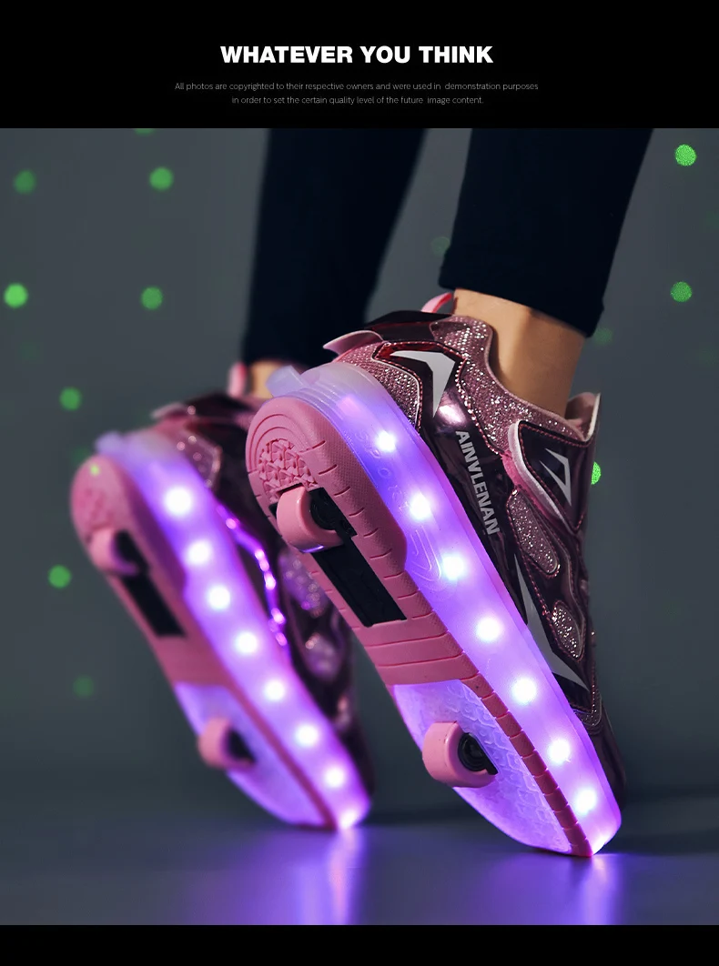 New LED Lights Kids Roller Skate Shoes Running Casual With 2 Wheels Detachable Boys Girls Parkour Deformation Skating Shoes Gift