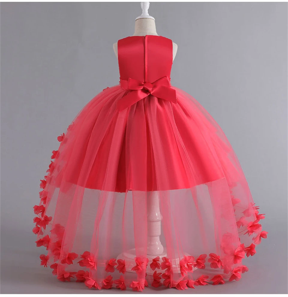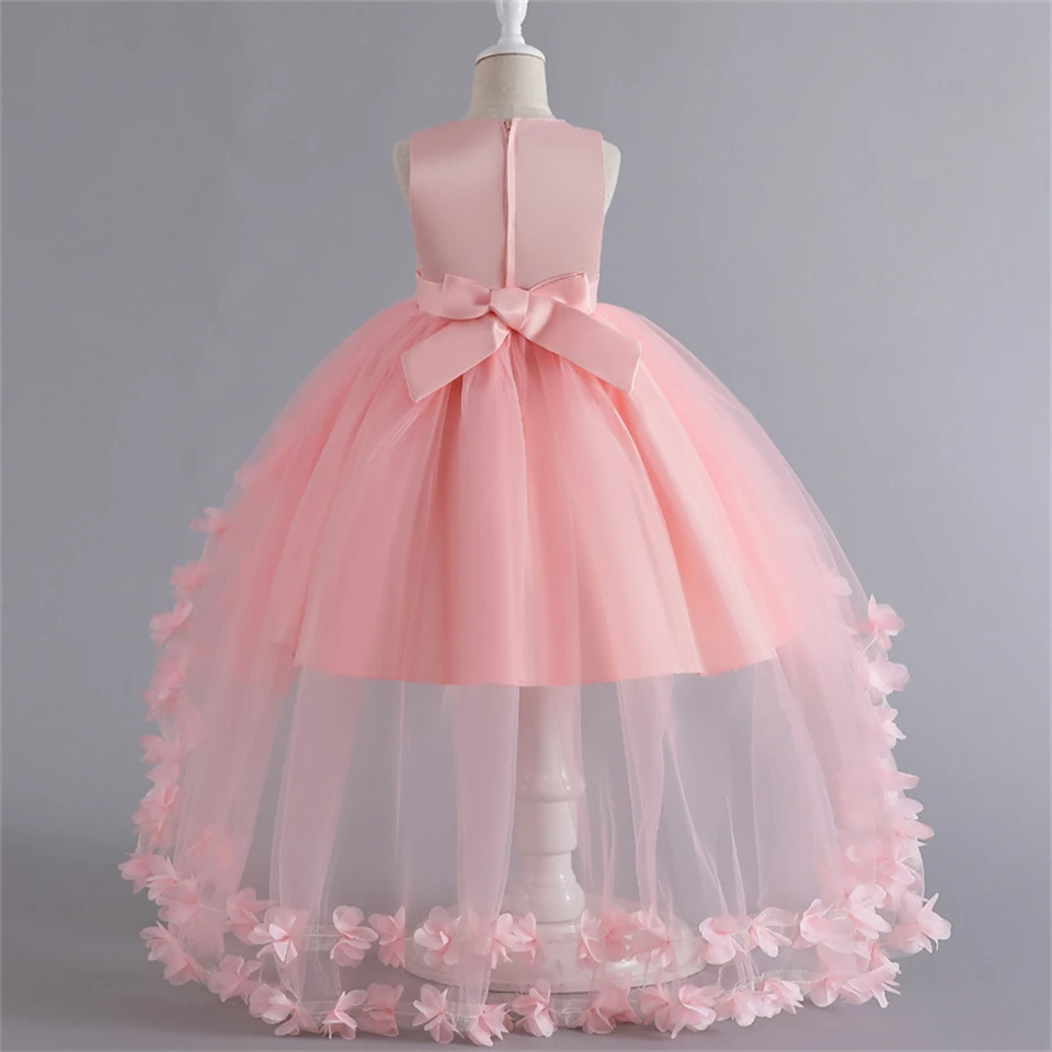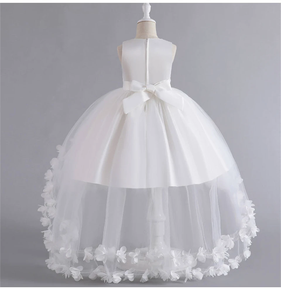 Pageant Girl Floor Length Flower Formal Cocktail Dress Kids Tiered Tulle Graduation Ceremony Bridesmaid Wedding Party Dresses