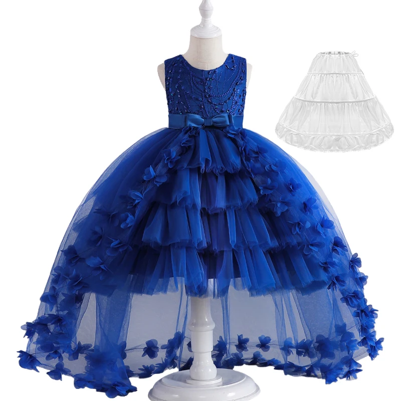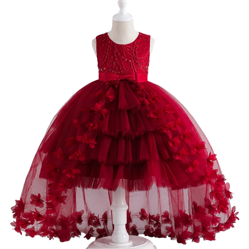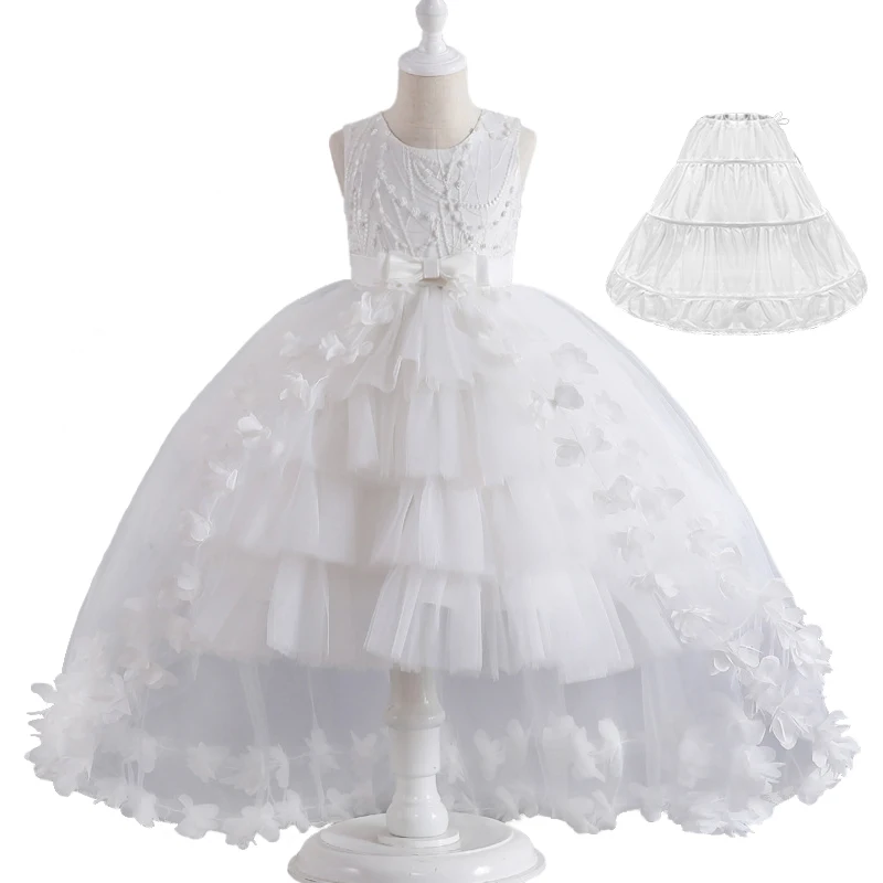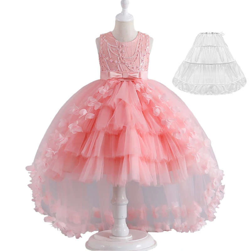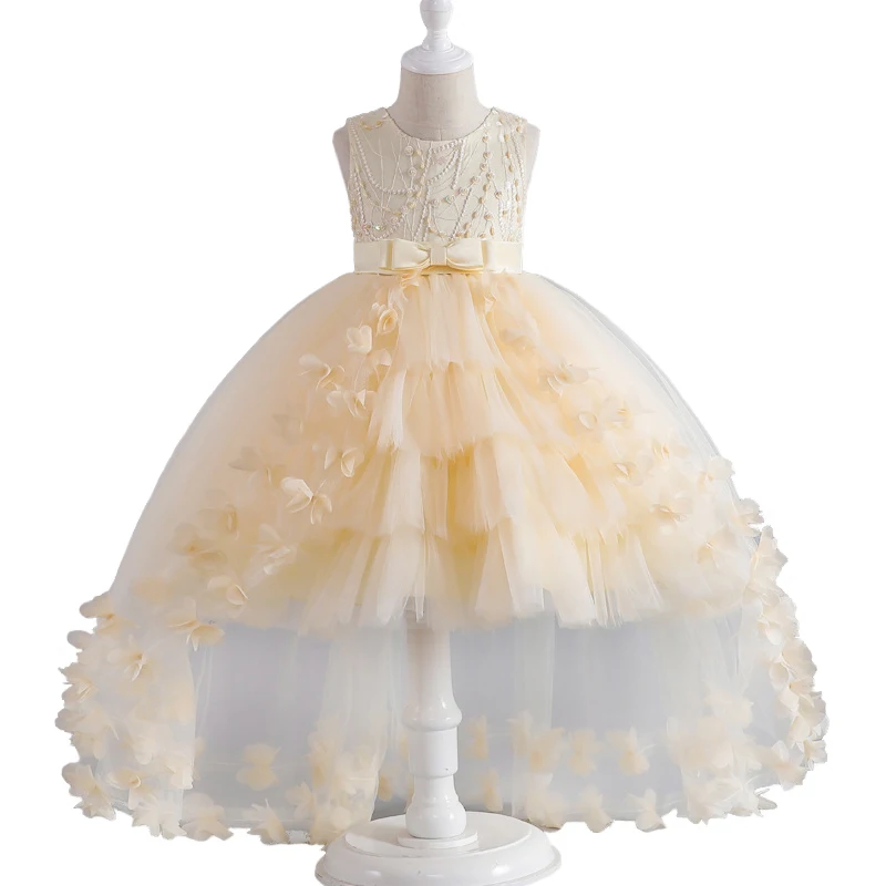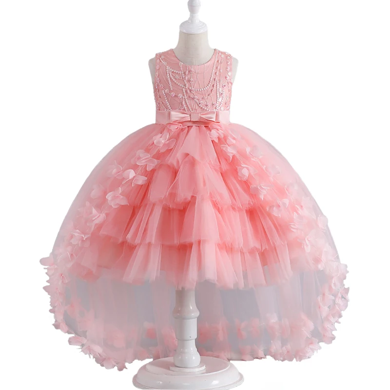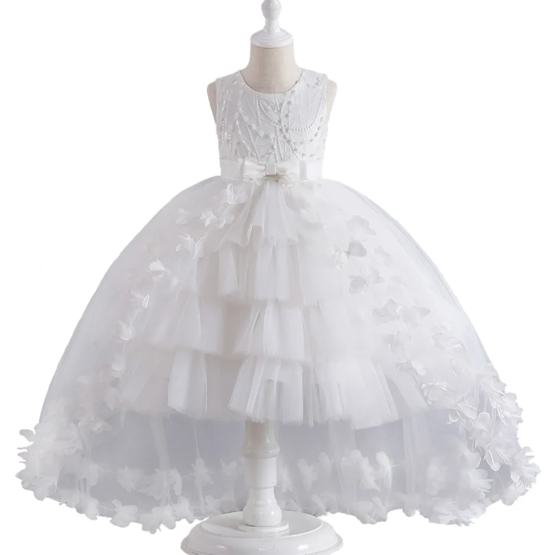 Luxury Young Girl Pageant Girl Floor Length Flower Formal Cocktail Dress Kids Tiered Tulle Graduation Ceremony Bridesmaid Wedding Party Dresses