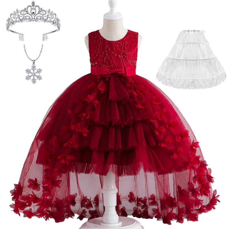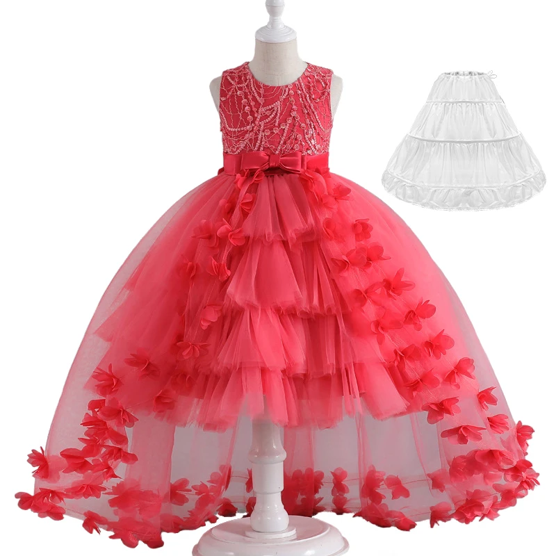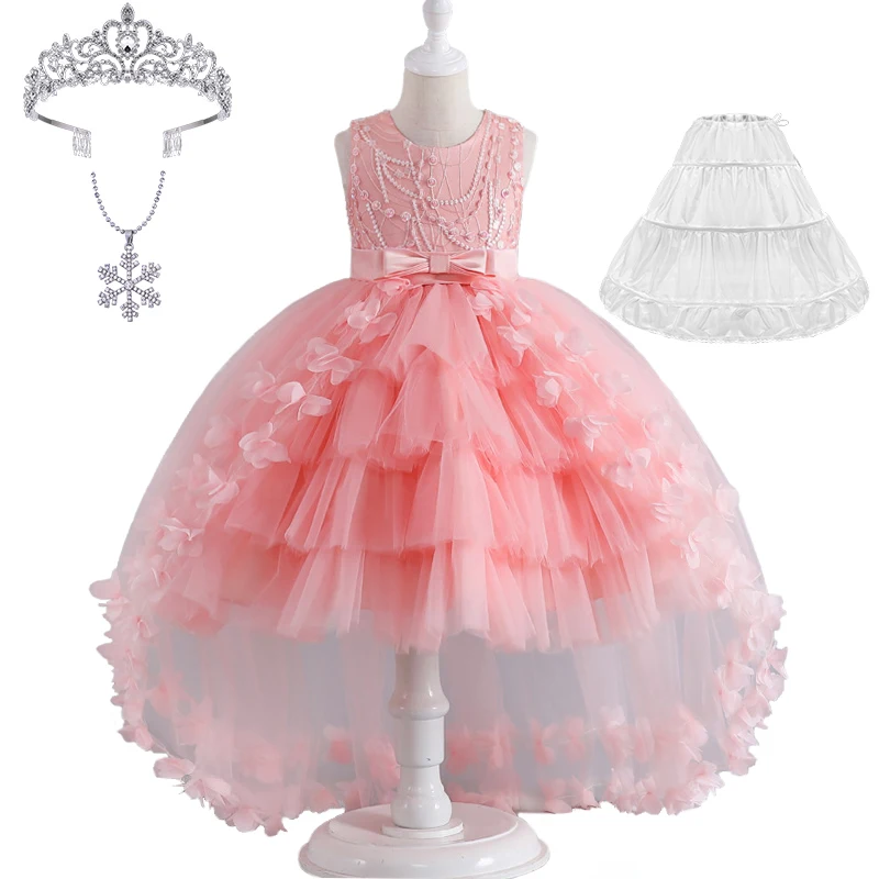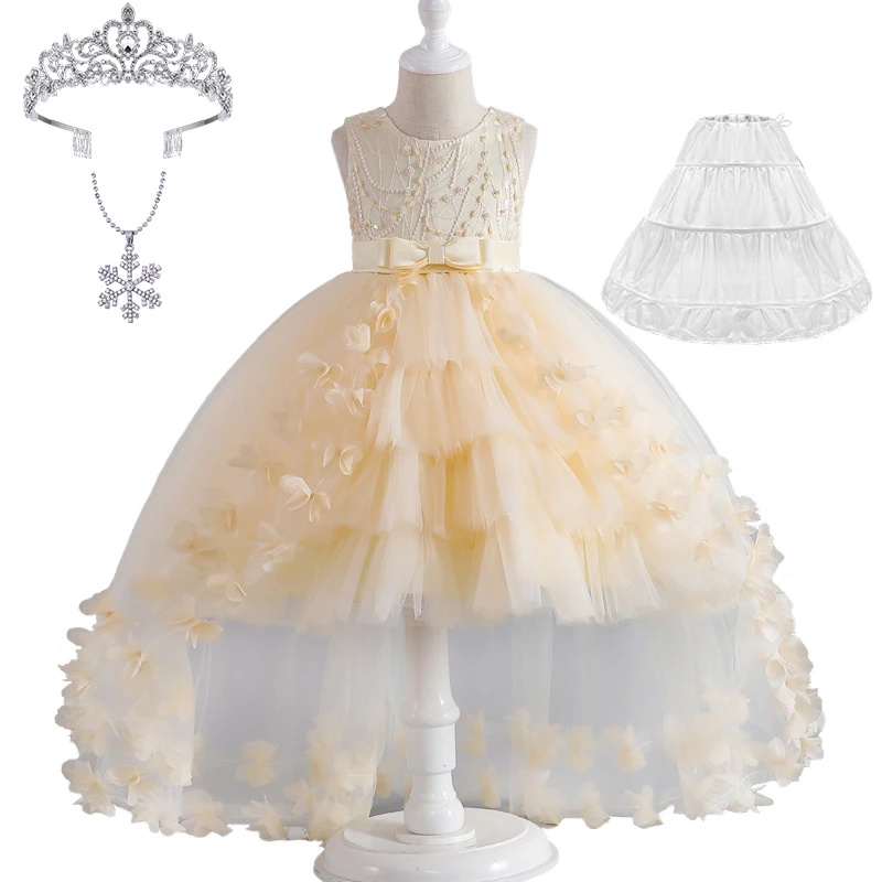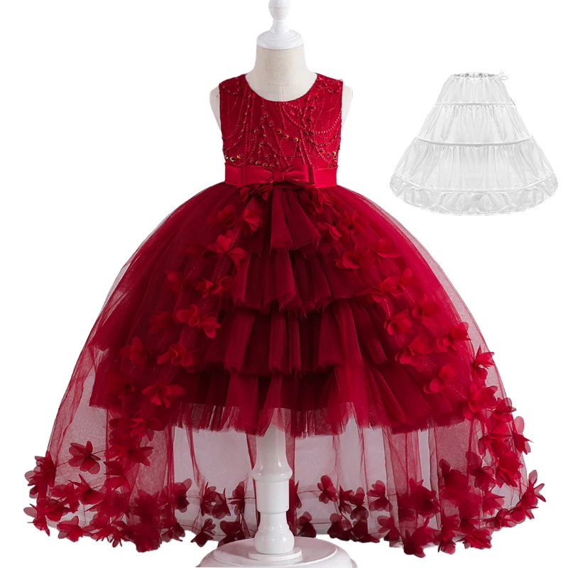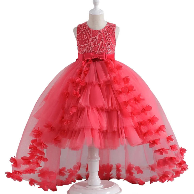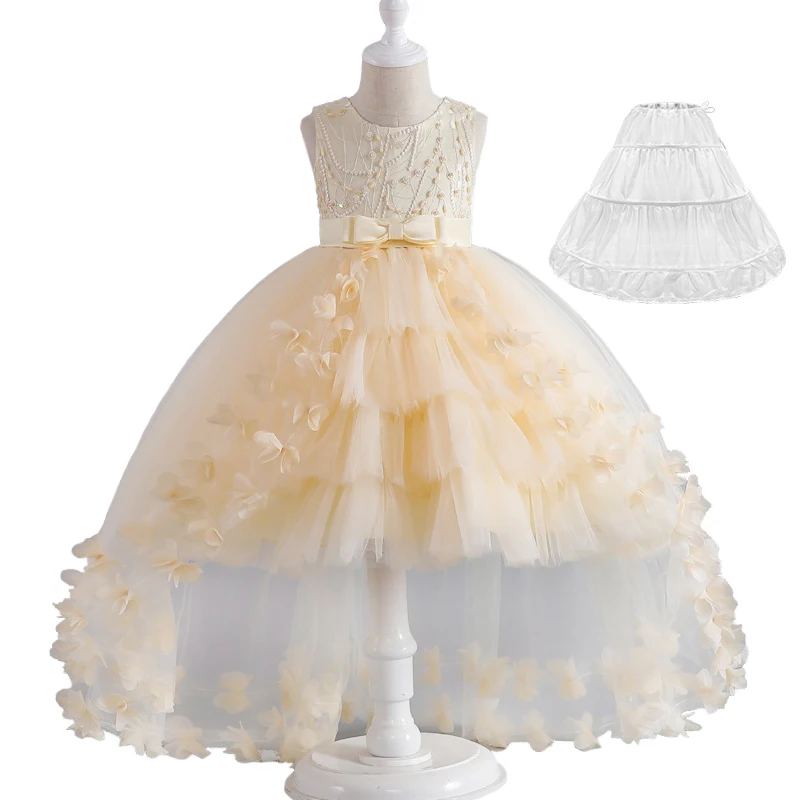 Luxury Young Girl Pageant Girl Floor Length Flower Formal Cocktail Dress Kids Tiered Tulle Graduation Ceremony Bridesmaid Wedding Party Dresses