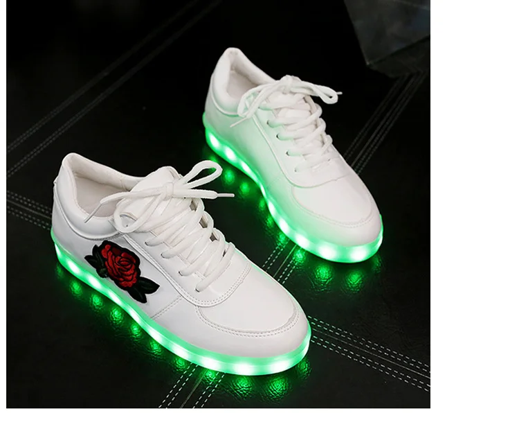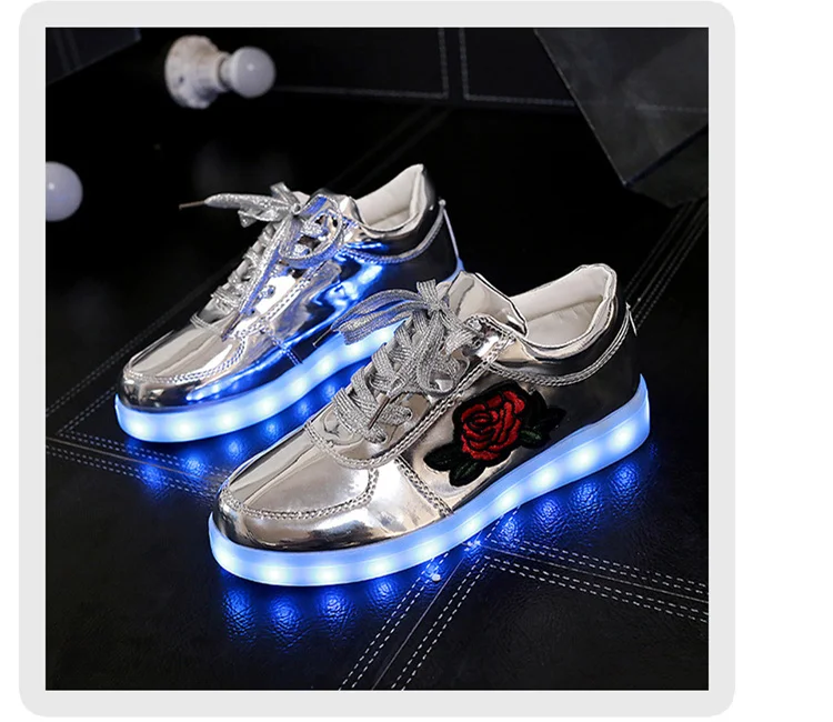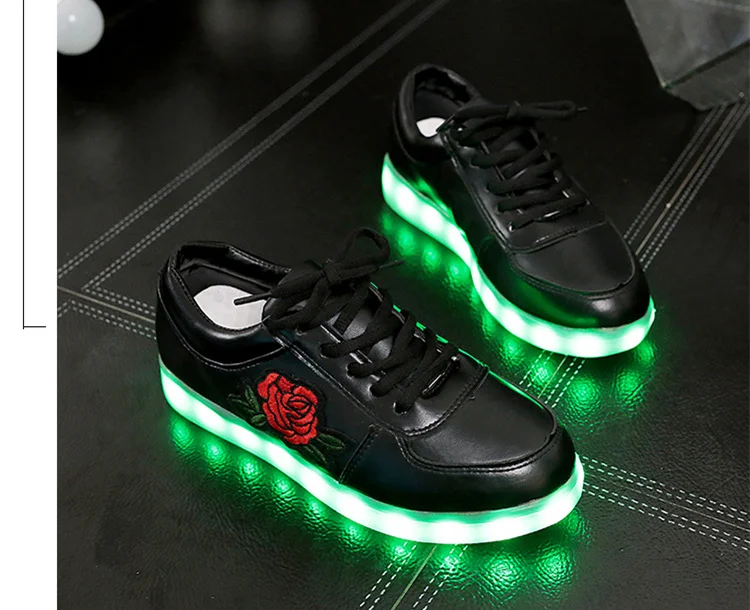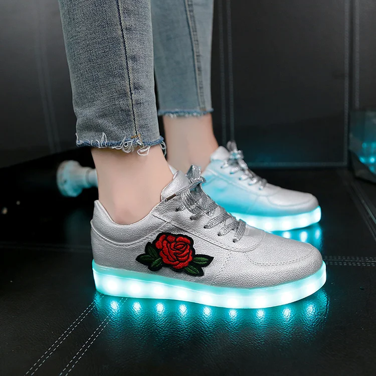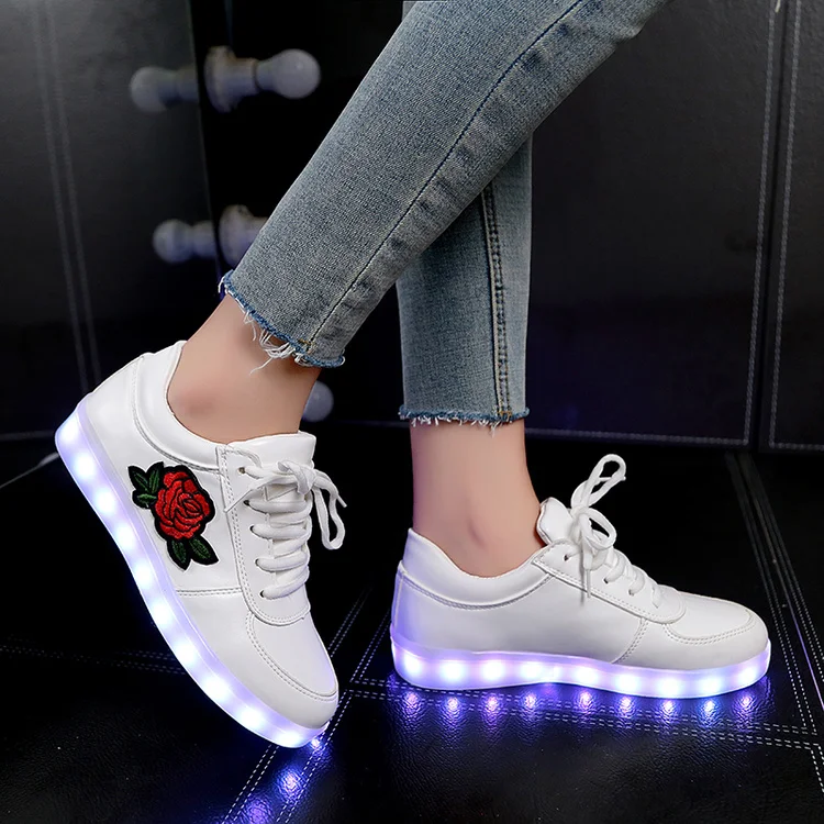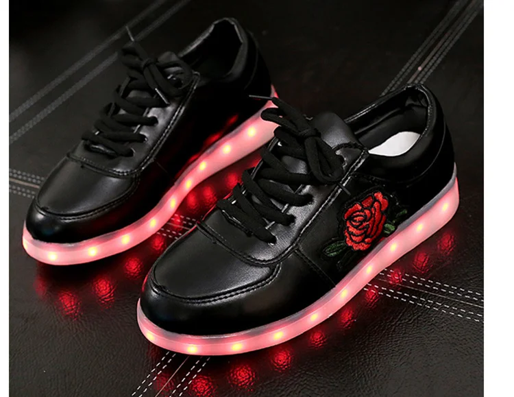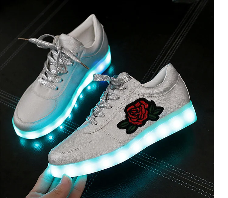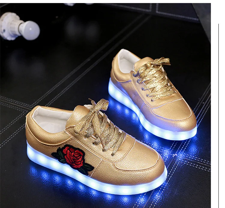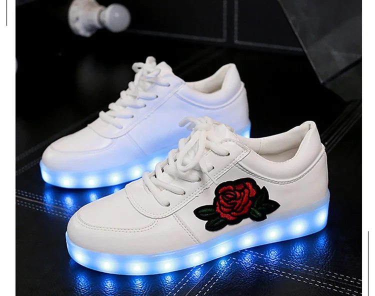 RayZing EUR30-44 Basket LED Shoes Casual Lovers Femme Kids Trainers Luminous Sneakers China style Rose Flower led sneakers