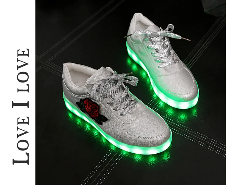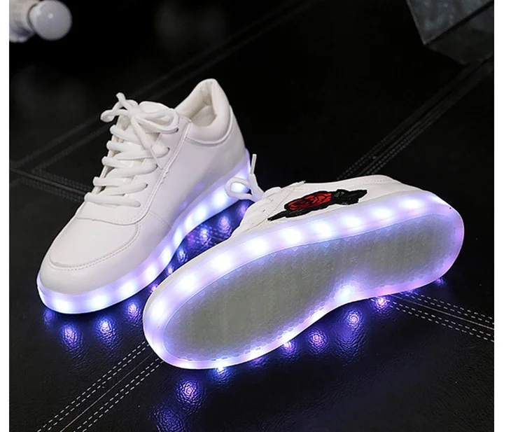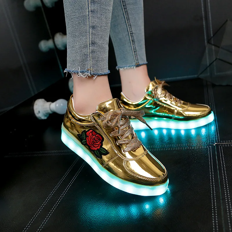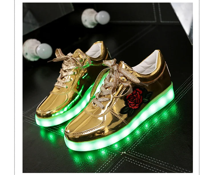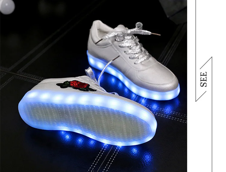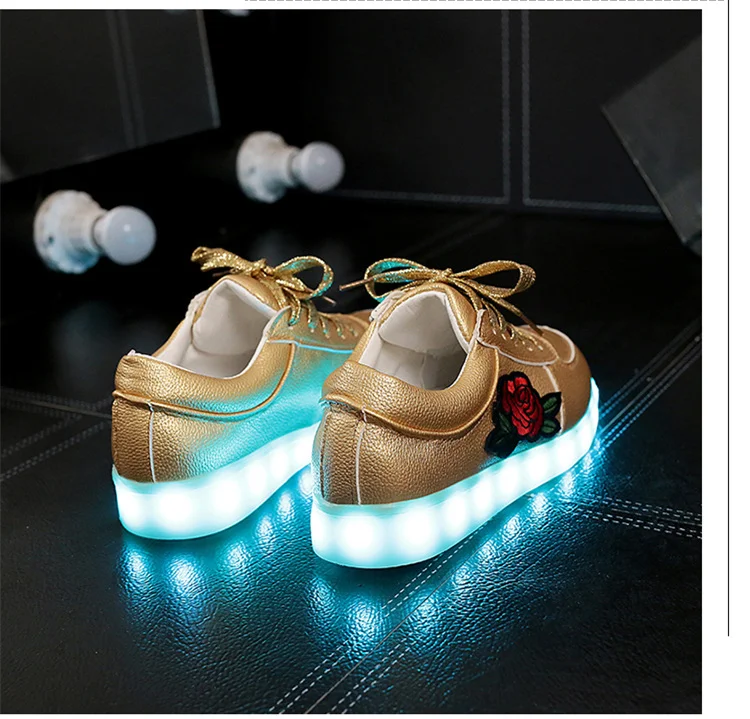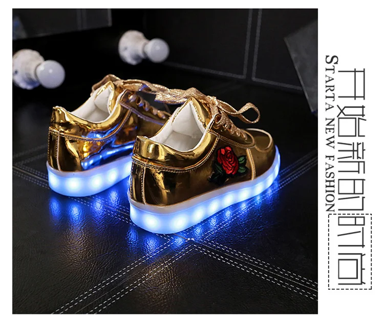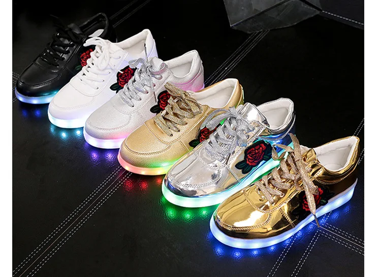 RayZing EUR30-44 Basket LED Shoes Casual Lovers Femme Kids Trainers Luminous Sneakers China style Rose Flower led sneakers