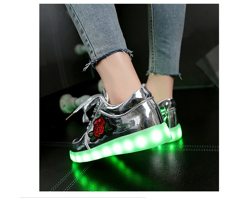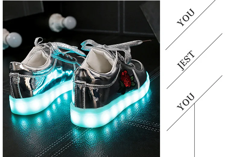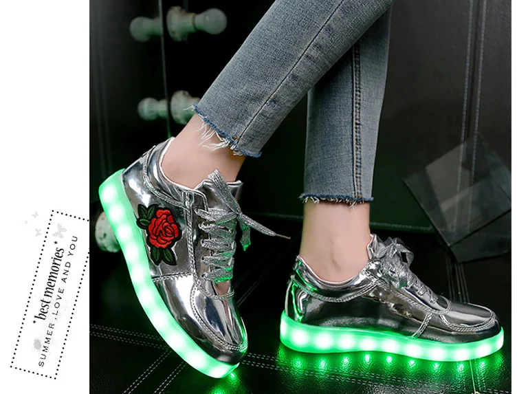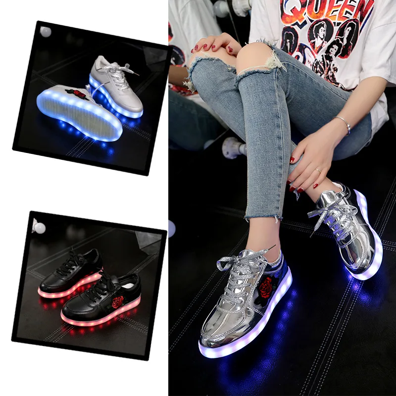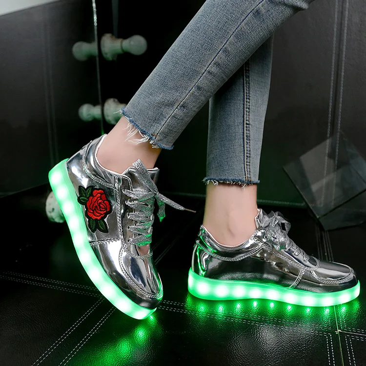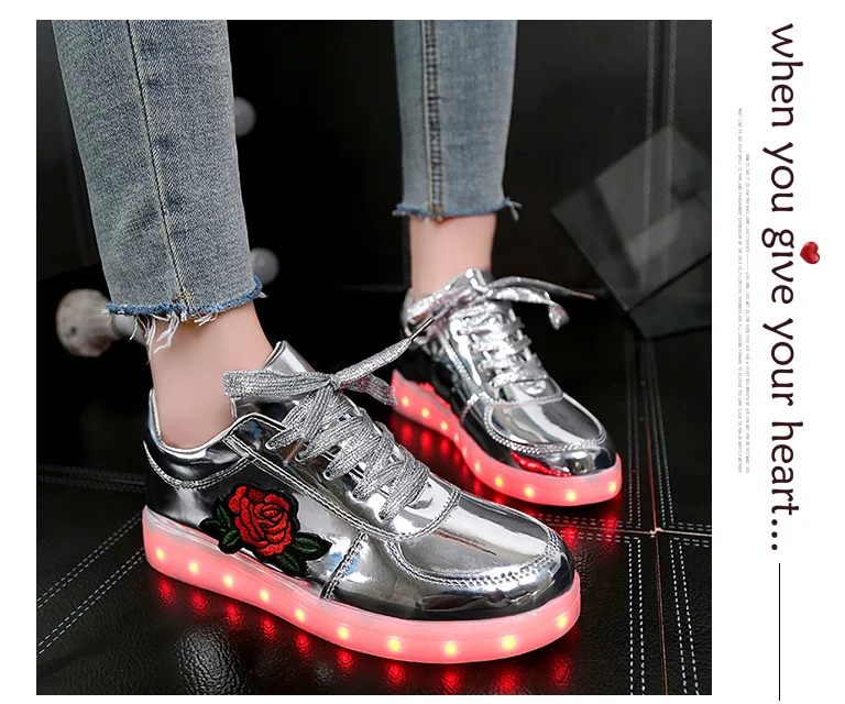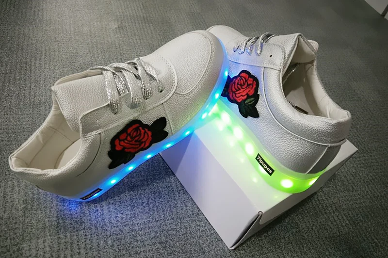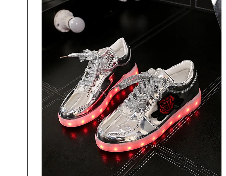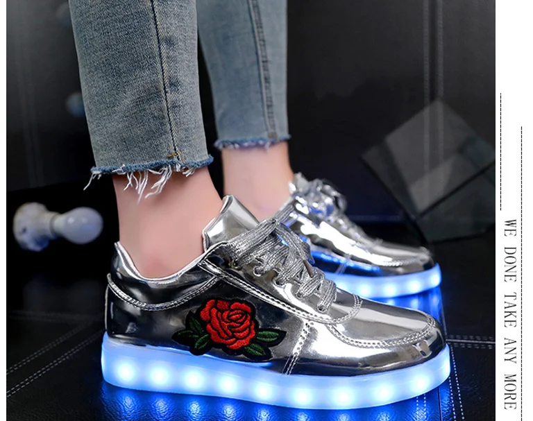 RayZing EUR30-44 Basket LED Shoes Casual Lovers Femme Kids Trainers Luminous Sneakers China style Rose Flower led sneakers