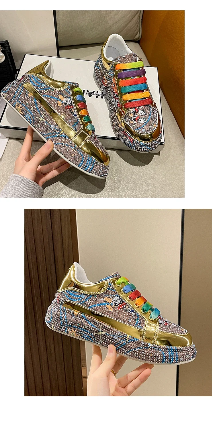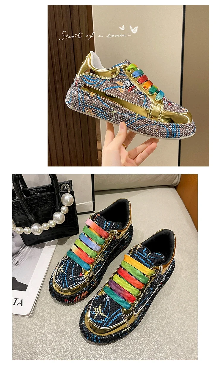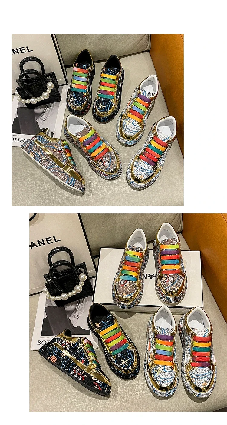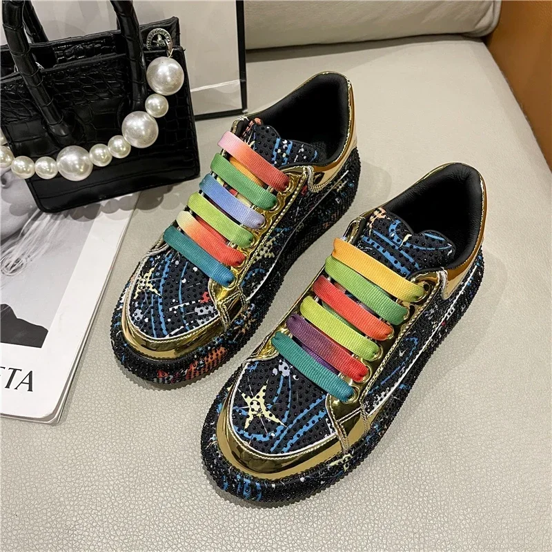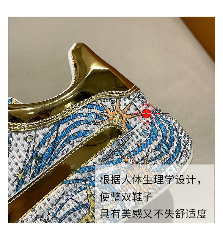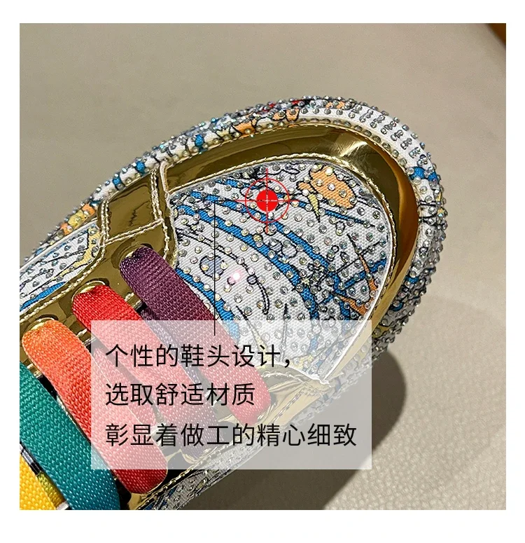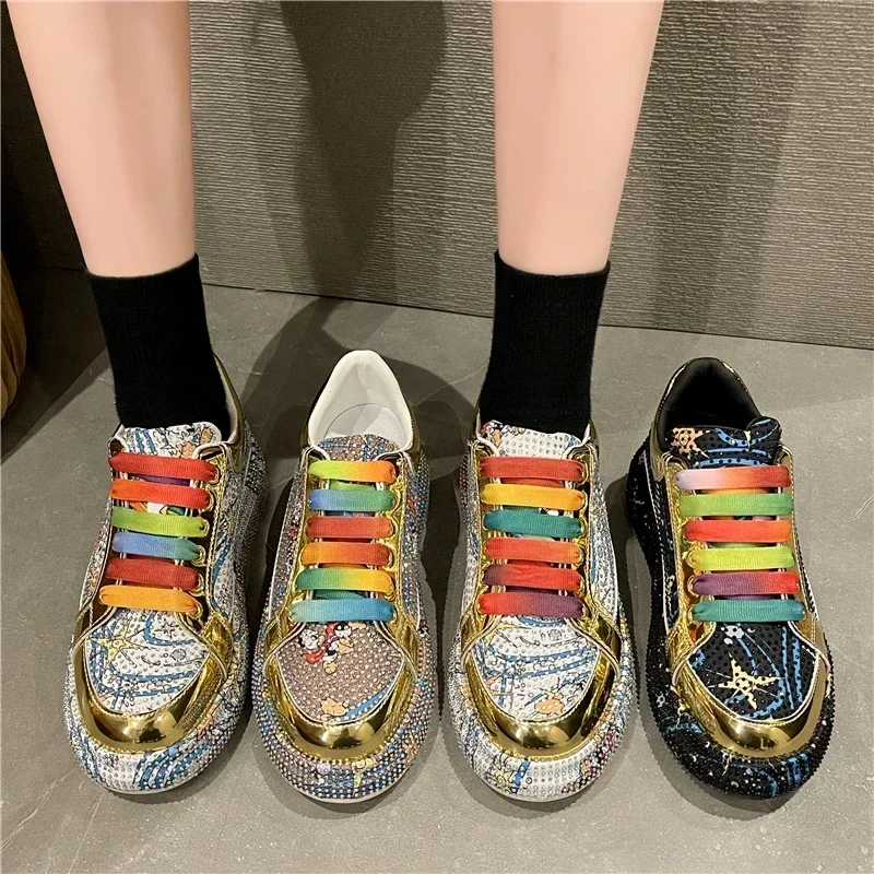 Rhinestone Grafiti Casual Shoes Women New Spring Fashion Thick Soled Anti Slip Versatile Sports Shoes Designer Flat Shoes