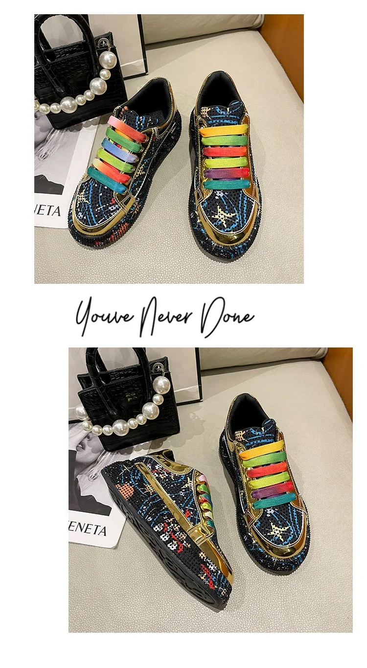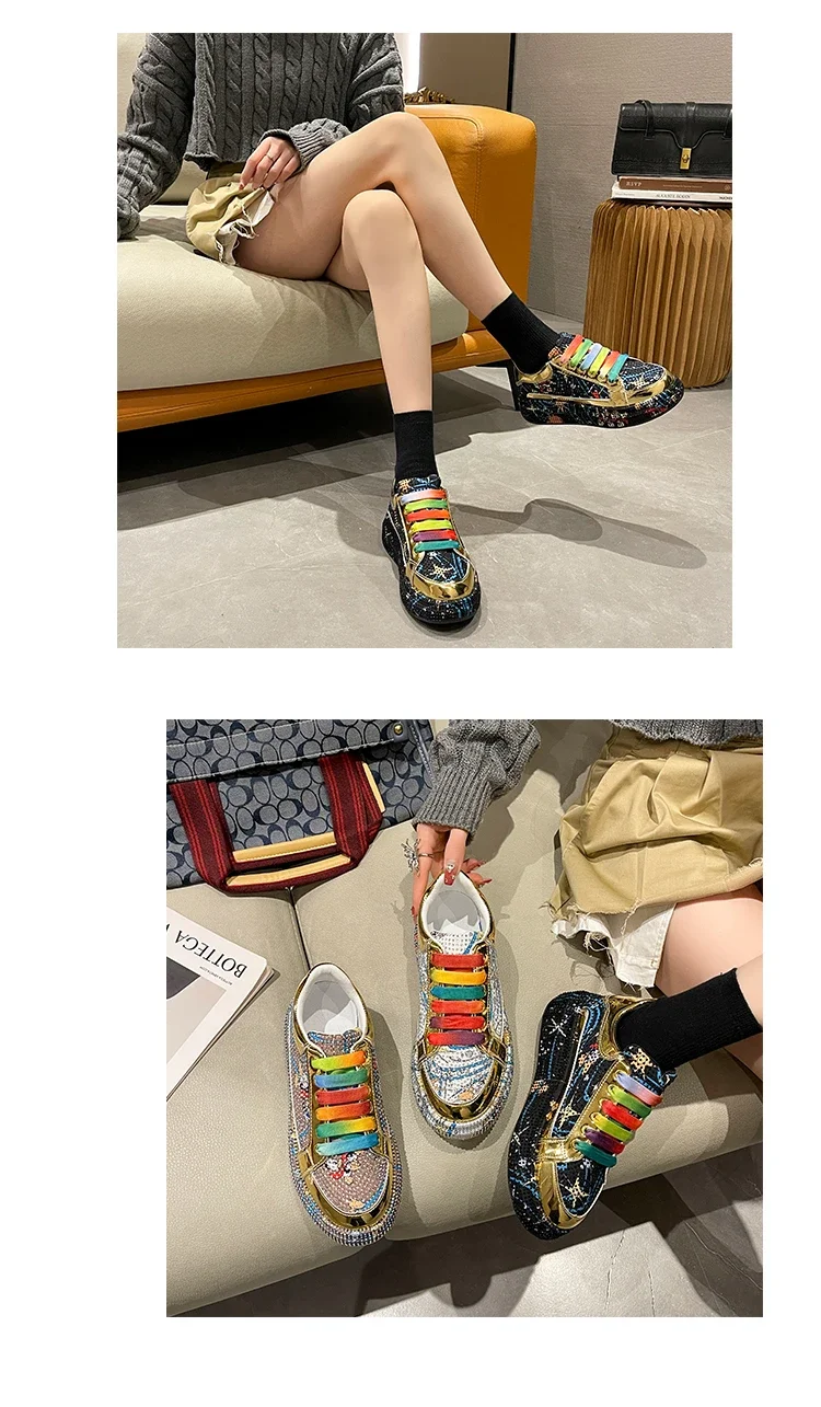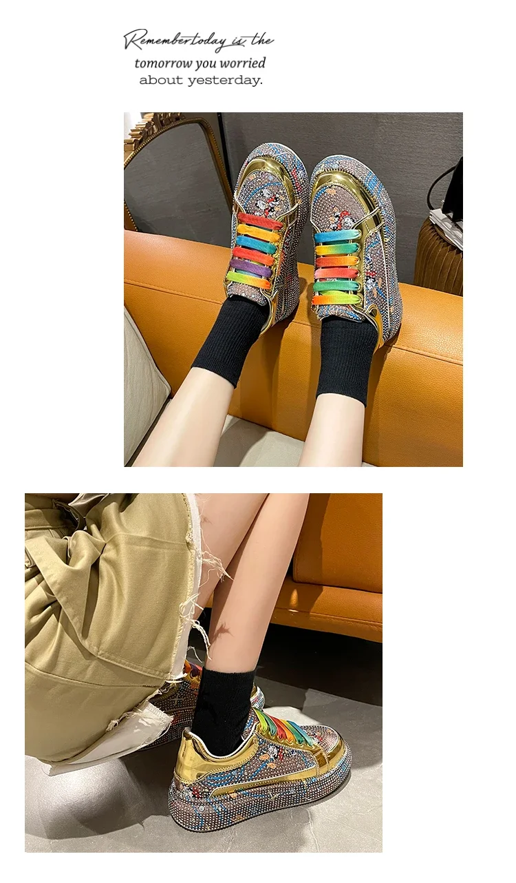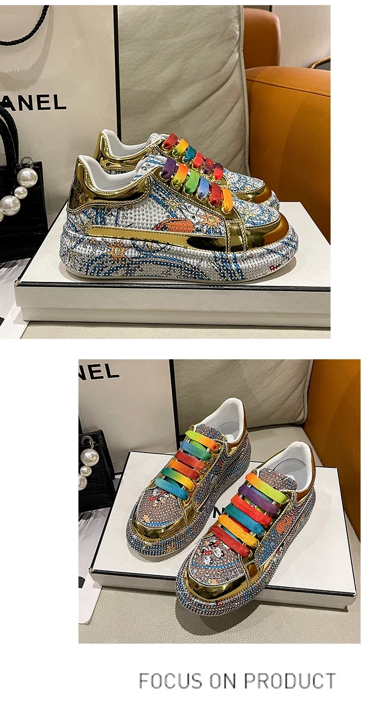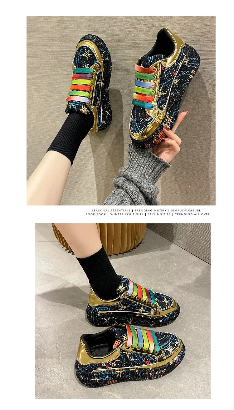 Rhinestone Grafiti Casual Shoes Women New Spring Fashion Thick Soled Anti Slip Versatile Sports Shoes Designer Flat Shoes
